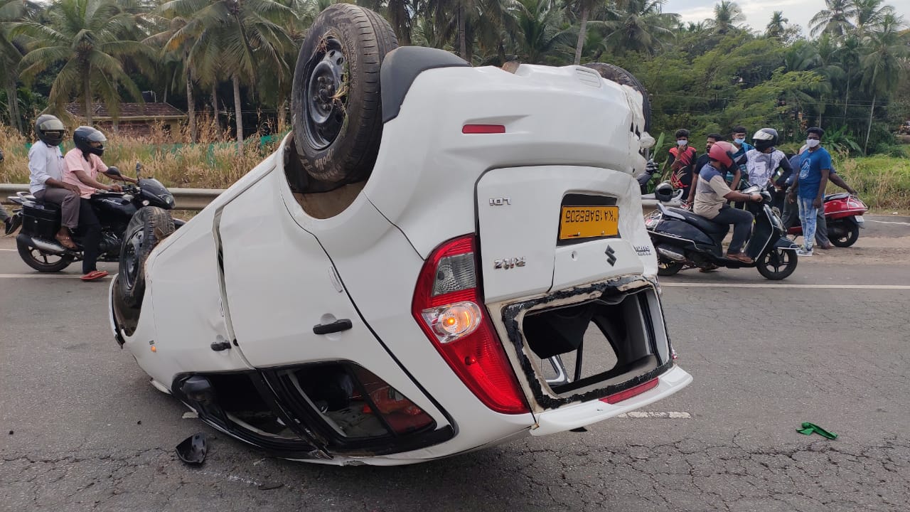 ಉಡುಪಿ, ಜ.6: ಎರಡು ಕಾರುಗಳು ಢಿಕ್ಕಿ ಹೊಡೆದ ಪರಿಣಾಮ ಒಂದು ಕಾರು ಮಗುಚಿ ಬಿದ್ದು ಅದರಲ್ಲಿದ್ದ ಇಬ್ಬರು ಗಾಯಗೊಂಡ ಘಟನೆ ಇಂದು ಅಪರಾಹ್ನ ಕಟಪಾಡಿ ಬಳಿ ರಾಷ್ಟ್ರೀಯ ಹೆದ್ದಾರಿಯಲ್ಲಿ ನಡೆದಿದೆ.