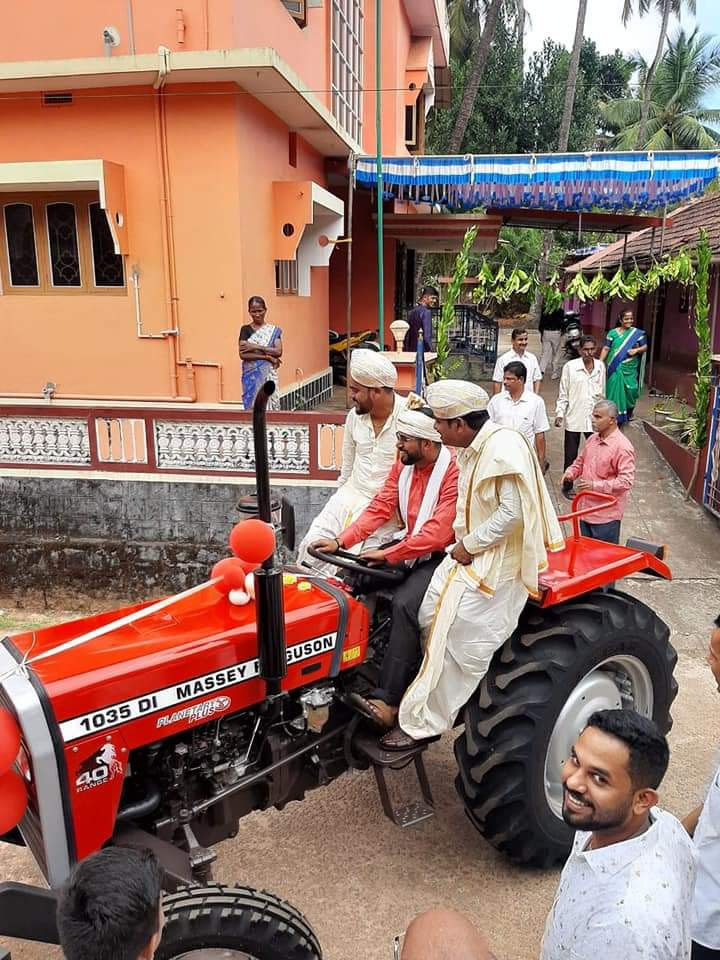 ಕಳೆದ ಶುಕ್ರವಾರ ಬಾರಕೂರಿನ ಶಿವಗಿರಿ ಕ್ಷೇತ್ರದ ಗುರುದೇವ ಭವನದಲ್ಲಿ ನಡೆದ ಎರಡು ಜೋಡಿಯ ಮದುವೆ ಇಂಥ ಒಂದು ಪರಿಕಲ್ಪನೆಗೆ ಸಾಕ್ಷಿ ಯಾಯಿತು. ಬಾರಕೂರಿನ ಕಾಳಿಕಾಂಬಾ ದೇವಸ್ಥಾನ ಸಮೀಪದ ಕೃಷಿಕ ಕುಟುಂಬದ ಇಬ್ಬರು ಯುವಕರ ಮದುವೆ ದಿಬ್ಬಣಕ್ಕೆ ಕೃಷಿಗೆ ಬಳಸುವ ಹಚ್ಚ ಹೊಸ ಟ್ರಾಕ್ಟರ್ ಬಳಸಿದ್ದು, ಮದುಮಕ್ಕಳ ಟ್ರಾಕ್ಟರ್ ಮೆರವಣಿಗೆಯನ್ನು ಅಚ್ಚರಿಯಿಂದ ವೀಕ್ಷಿಸಿದ ಊರಿನ ಜನರ ಮೆಚ್ಚುಗೆಗೆ ಪಾತ್ರವಾಯಿತು.