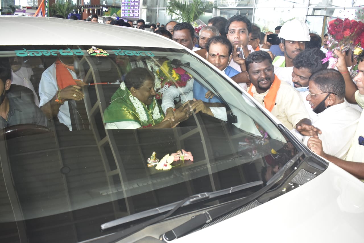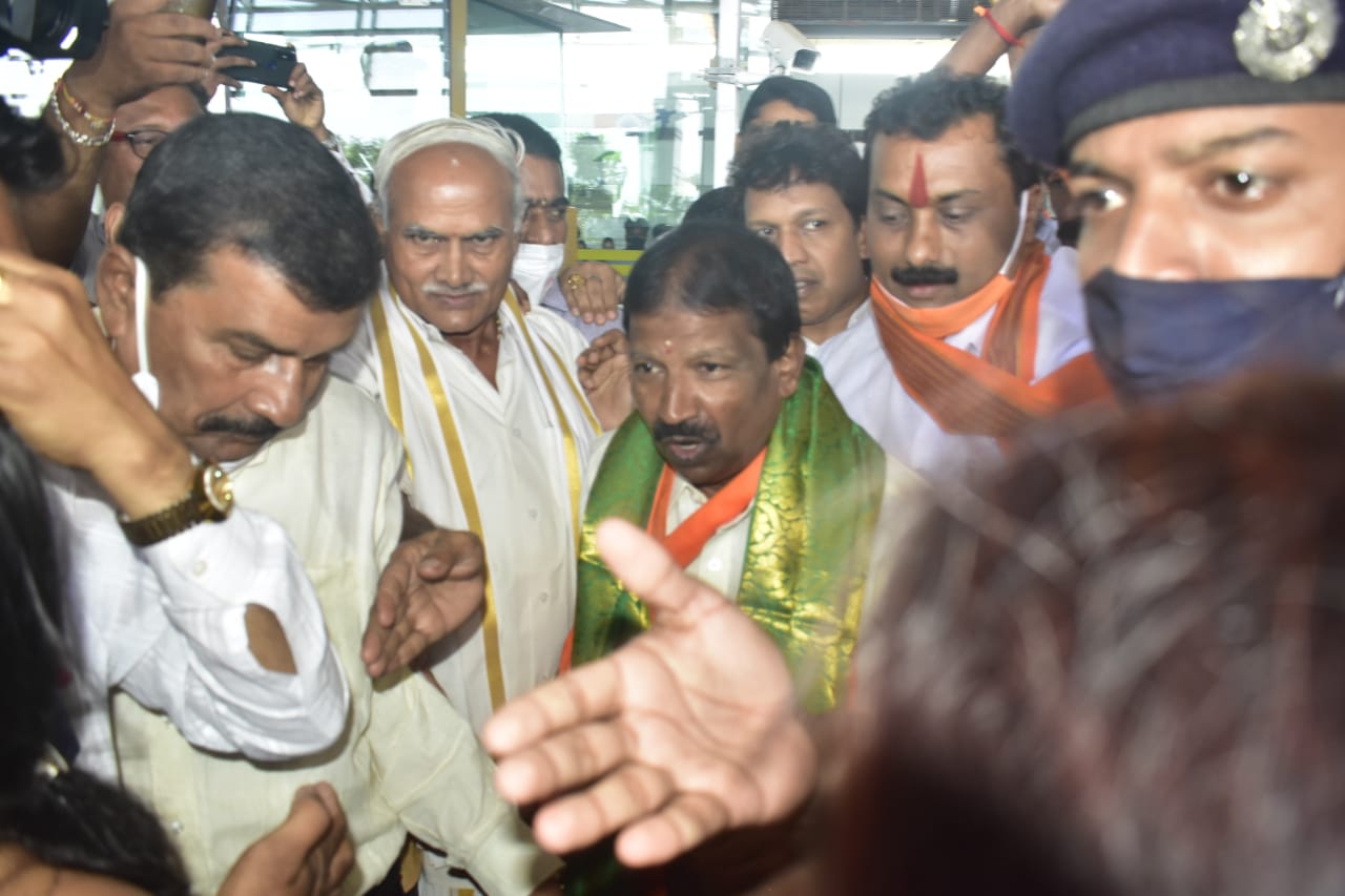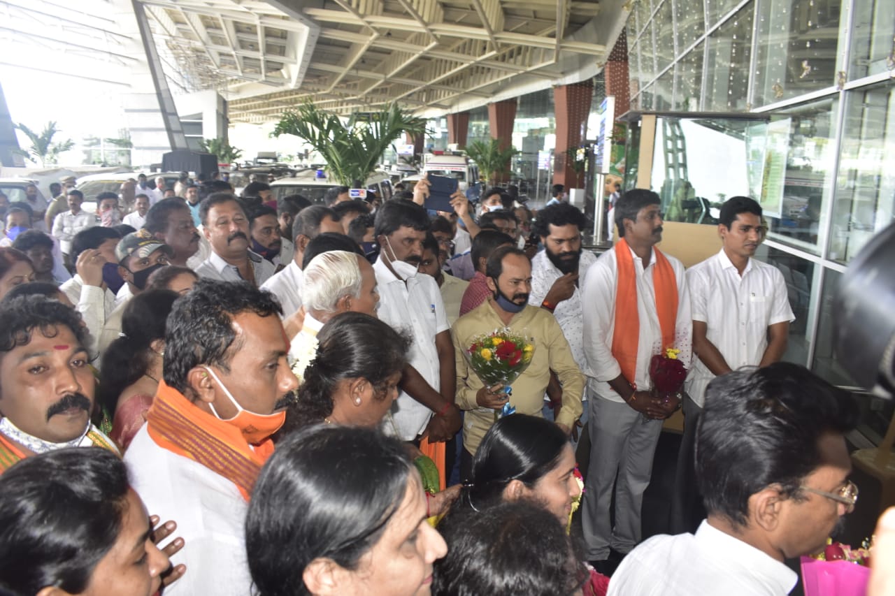 ನೂತನ ಸಚಿವ ಅಂಗಾರಗೆ ಮಂಗಳೂರು ವಿಮಾನ ನಿಲ್ದಾಣದಲ್ಲಿ ಭವ್ಯ ಸ್ವಾಗತ