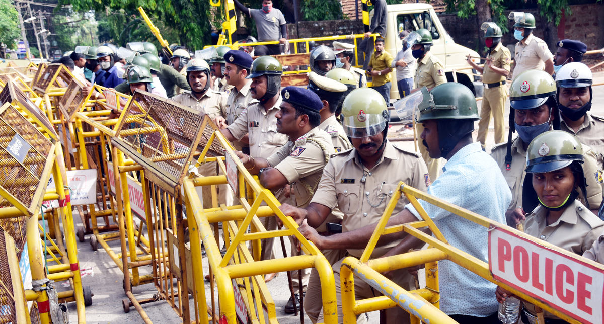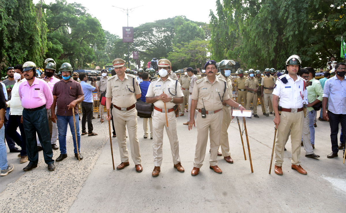 ಡಿಸಿಪಿಗಳಾದ ಹರಿರಾಮ್ ಶಂಕರ್, ವಿನಯ್ ಗಾಂವ್ಕರ್ ನೇತೃತ್ವದಲ್ಲಿ ಪೊಲೀಸರು ರಸ್ತೆಗೆ ಅಡ್ಡಲಾಗಿ ನಿಂತಿದ್ದರು. ಪ್ರತಿಭಟನಾಕಾರರು ಸಮೀಪಿಸುತ್ತಿದ್ದಂತೆ ಮಂಗಳೂರು ಉತ್ತರ ವಿಭಾಗದ ಎಸಿಪಿ ಕೆ.ಯು. ಬೆಳ್ಳಿಯಪ್ಪ, ಕೇಂದ್ರ ವಿಭಾಗದ ಎಸಿಪಿ ಎಂ.ಜಗದೀಶ್ ಪ್ರತಿಭಟನಾಕಾರರ ಮನವೊಲಿಸಿ, ಅದೇ ಜಾಗದಲ್ಲಿ ಕುಳಿತು ಪ್ರತಿಭಟನೆ ನಡೆಸಲು ಮನವಿ ಮಾಡಿದರು. ಇದಕ್ಕೆ ಸಕಾರಾತ್ಮಕವಾಗಿ ಸ್ಪಂದಿಸಿದ ಪ್ರತಿಭಟನಾಕಾರರು ರಸ್ತೆಯಲ್ಲೇ ಕುಳಿತು ಶಾಂತಿಯುತವಾಗಿ ಪ್ರತಿಭಟನೆ ನಡೆಸಿದರು.