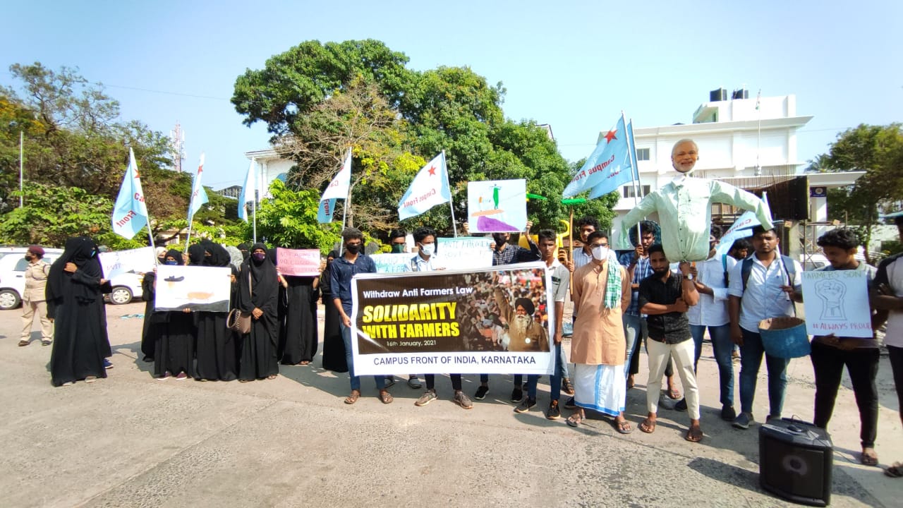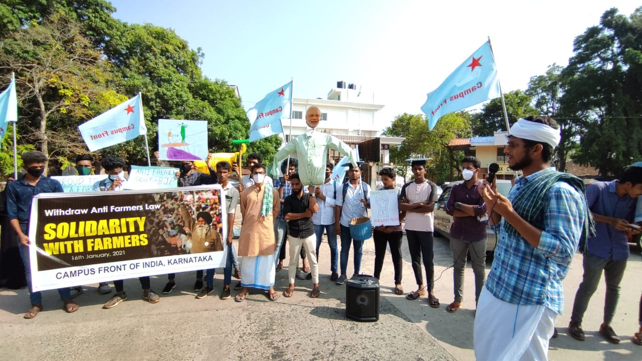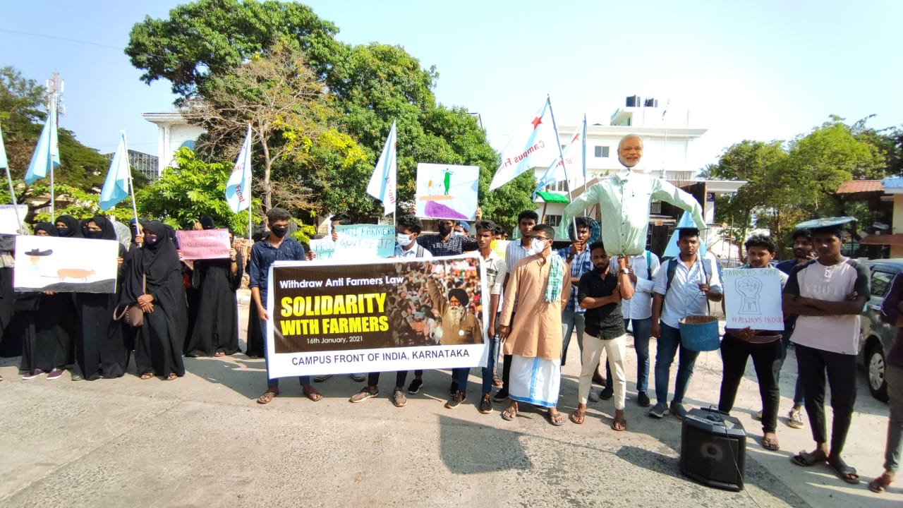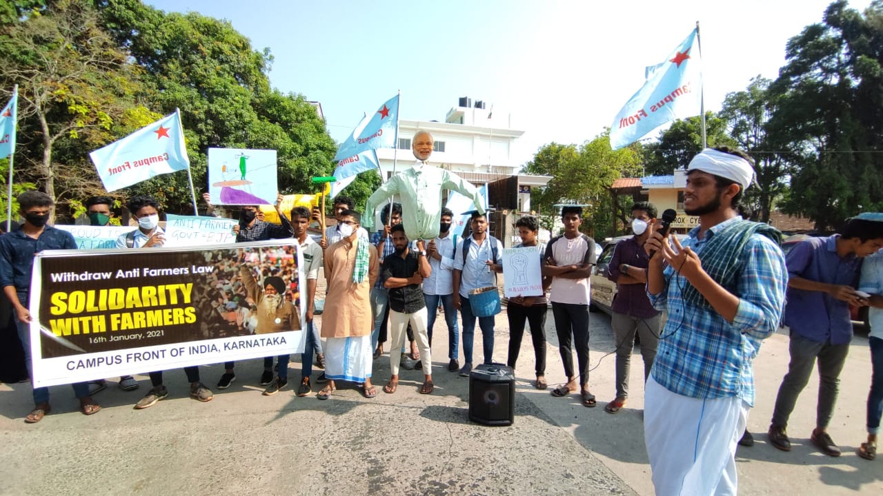 ಈ ಸಂದರ್ಭ ಕ್ಯಾಂಪಸ್ ಫ್ರಂಟ್ ಮಂಗಳೂರು ಜಿಲ್ಲಾಧ್ಯಕ್ಷ ಹಸನ್ ಸಿರಾಜ್ ಮಾತನಾಡಿ, ಕೇಂದ್ರದಲ್ಲಿ ಬಿಜೆಪಿ ಸರಕಾರವು ಅಧಿಕಾರಕ್ಕೆ ಬಂದ ನಂತರ ದೇಶದಲ್ಲಿ ವಿದ್ಯಾರ್ಥಿಗಳು, ದಲಿತರು, ಶಿಕ್ಷಕರು ಹೀಗೆ ವಿವಿಧ ವರ್ಗದ ಜನರ ಜೀವನ ಅಸ್ತವ್ಯಸ್ತವಾಗಿದೆ. ಈಗ ರೈತರ ಸರದಿ. ಸರಕಾರವು ಕಾರ್ಪೊರೇಟ್ ಶಕ್ತಿಗಳಾದ ಅಂಬಾನಿ - ಅದಾನಿಗಳ ಎಂಜಲು ಕಾಸಿನ ಹಣಕ್ಕಾಗಿ ರೈತರಿಗೆ ಮೋಸ ಮಾಡುತ್ತಿದೆ. ಕೇಂದ್ರ ಕೃಷಿ ಸಚಿವ ನರೇಂದ್ರ ಸಿಂಗ್ ತೋಮರ್ ಅನರ್ಹ ಸಚಿವರು ಹಾಗೂ ಕೇಂದ್ರ ಸರಕಾರವು ಶೀಘ್ರವೇ ರೈತರ ಸಮಸ್ಯೆಗಳಿಗೆ ಪರಿಹಾರ ನೀಡಬೇಕೆಂದು ಆಗ್ರಹಿಸಿದರು.