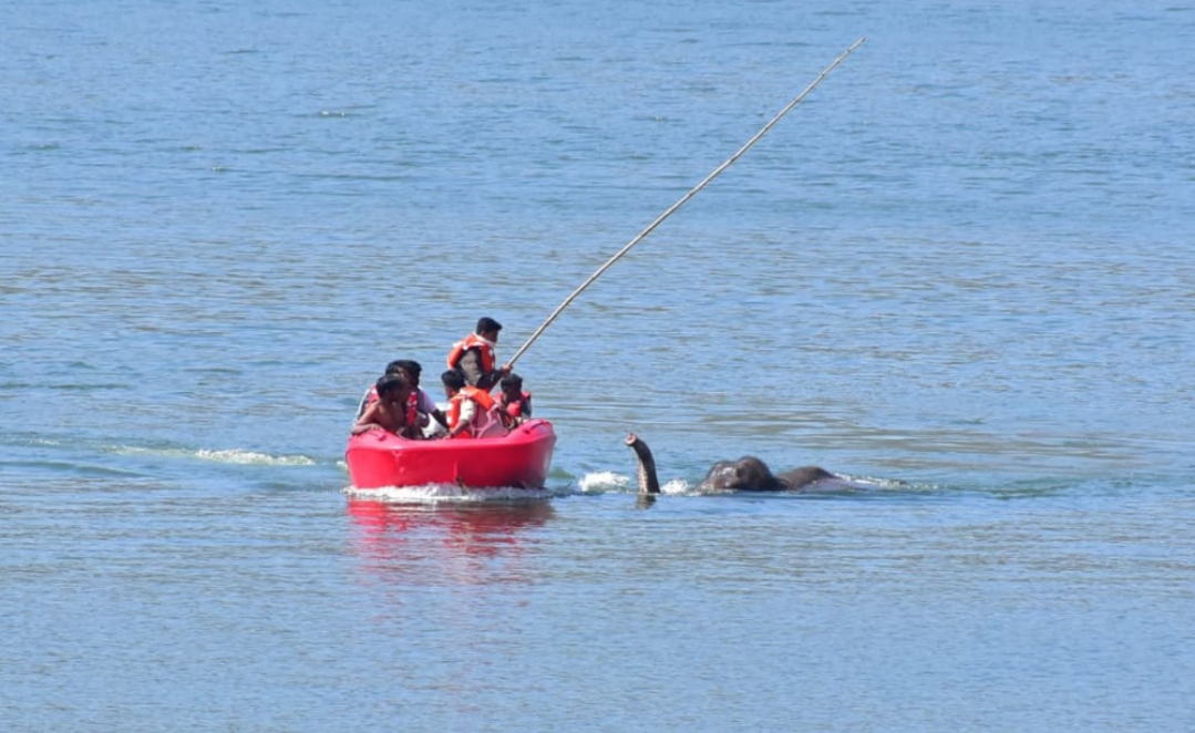 ನುಗು ಜಲಾಶಯದಲ್ಲಿ ಮೀನಿಗಾಗಿ ಬಲೆಹಾಕಿದ ಮೀನುಗಾರರು ಅರಣ್ಯಾಧಿಕಾರಿಗೆ ಮಾಹಿತಿ ನೀಡಿದ್ದು, ತಕ್ಷಣ ಕಾರ್ಯ ಪ್ರವೃತ್ತಾರಾದ ಎ.ಸಿ.ಎಫ್.ರವಿಕುಮಾರ್ ಸರಗೂರುನಿಂದ ಅಗ್ನಿಶಾಮಕ ಸಿಬ್ಬಂದಿಗಳು ಹಾಗೂ ಅರಣ್ಯ ಇಲಾಖೆಯ ಸಿಬ್ಬಂದಿಗಳು ಜೊತೆಗಾಗಿ ಆನೆಯನ್ನು ನೀರಿನಿಂದ ದಡಕ್ಕೆ ಕರೆತರಲು ಹರಸಾಹಸಪಟ್ಟರು. ಬೋಟ್ ಮೂಲಕ ಬಲೆ ಬಿಡಿಸಲು ಯತ್ನಿಸಿದರು. ಅಗ್ನಿಶಾಮಕ ಸಿಬ್ಬಂದಿಗಳು ಆನೆಯನ್ನು ಬಲೆಯಿಂದ ರಕ್ಷಣೆ ಮಾಡಿ ಕಾಡಿಗೆ ಓಡಿಸಿದ್ದಾರೆ.