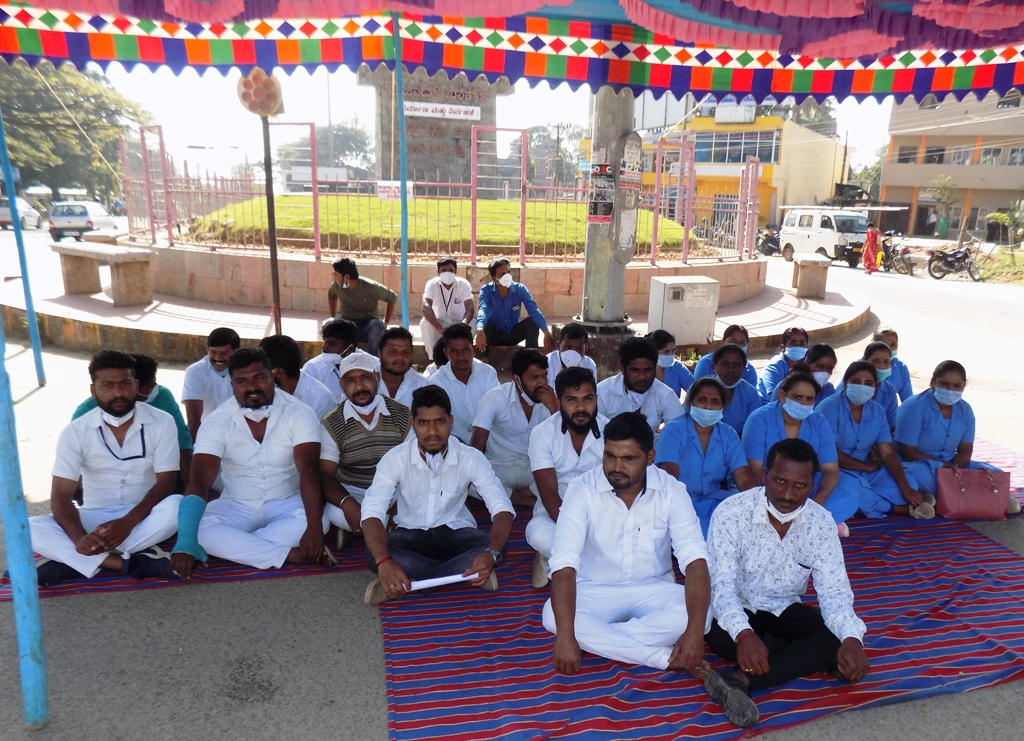 ಧರಣಿ ಉದ್ದೇಶಿಸಿ ಮಾತನಾಡಿದ ನೌಕರರು, ಕೋವಿಡ್-19ನಂತಹ ಸಂದಿಗ್ಧ ಪರಿಸ್ಥಿತಿಯಲ್ಲಿ ಜಿಲ್ಲಾಸ್ಪತ್ರೆಯಲ್ಲಿ ಕೆಲಸ ಮಾಡಲು ಇತರ ಸಿಬ್ಬಂದಿ ಜೀವಭಯದಿಂದ ಹಿಂದೇಟು ಹಾಕುತ್ತಿದ್ದರು. ಆದರೆ ಜಿಲ್ಲಾಸ್ಪತ್ರೆಯಲ್ಲಿ ಹೊರಗುತ್ತಿಗೆಯಡಿಯಲ್ಲಿ ಕೆಲಸ ಮಾಡುವ ಡಿ ದರ್ಜೆ ನೌಕರರು ಪ್ರಾಣಭೀತಿ ಇಲ್ಲದೇ ಕೆಲಸ ಮಾಡುತ್ತಾ ಬಂದಿದ್ದಾರೆ. ಸರಕಾರ ನಮ್ಮನ್ನು ಕೊರೋನ ವಾರಿಯರ್ಸ್ ಎಂದು ಕರೆಯುತ್ತಾ, ಸನ್ಮಾನ ಮಾಡುತ್ತಾ ಕೇವಲ ಗೌರವ ನೀಡುತ್ತಿದೆಯೇ ಹೊರತು ನೌಕರರು ನೆಮ್ಮದಿಯಿಂದ ಜೀವನ ನಡೆಸಲು ಅಗತ್ಯವಾಗಿರುವ ವೇತನವನ್ನು ಬಿಡುಗಡೆ ಮಾಡುತ್ತಿಲ್ಲ. ಕಳೆದ ನಾಲ್ಕು ತಿಂಗಳುಗಳಿಂದ ಸರಕಾರ ನೌಕರರ ವೇತನ ಬಿಡುಗಡೆ ಮಾಡಿರುವುದರಿಂದ ಡಿ ದರ್ಜೆ ನೌಕರರು ಜೀವನ ನಡೆಸಲು ಸಾಧ್ಯವಾಗುತ್ತಿಲ್ಲ. ಸಾಲಸೂಲ ಮಾಡಿಕೊಂಡು ಜೀವನ ನಿರ್ವಹಣೆ ಮಾಡುವಂತಾಗಿದೆ ಎಂದು ಅಳಲು ಹೇಳಿಕೊಂಡರು.