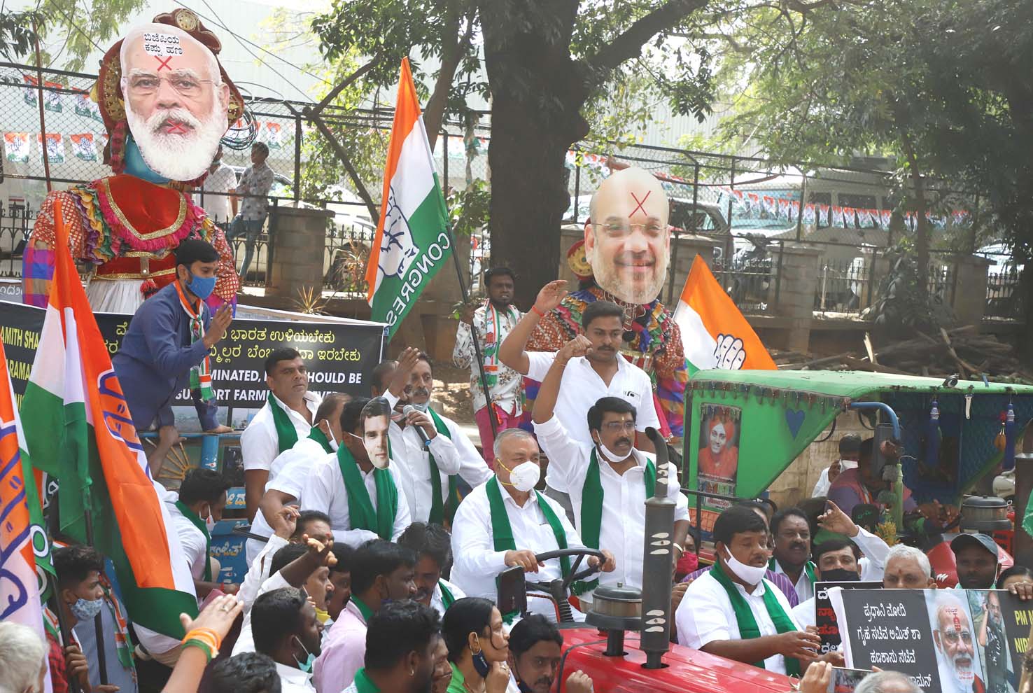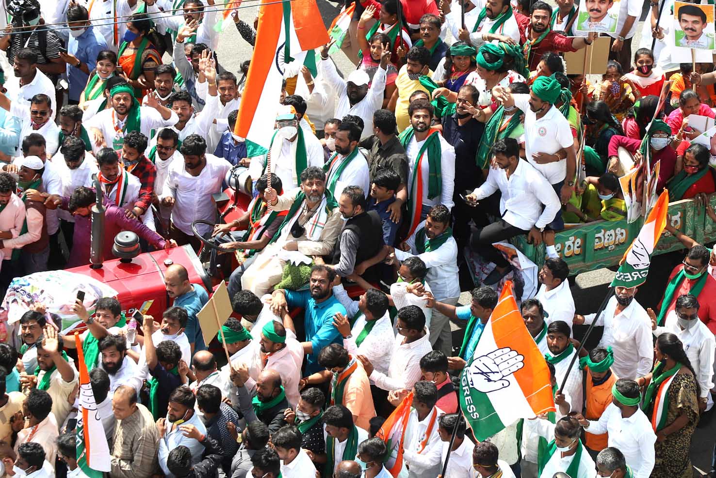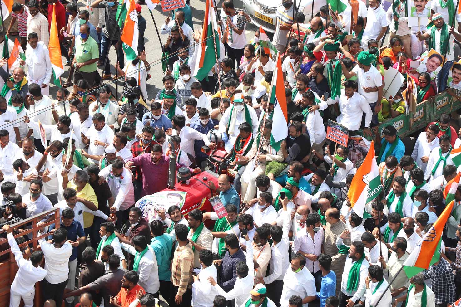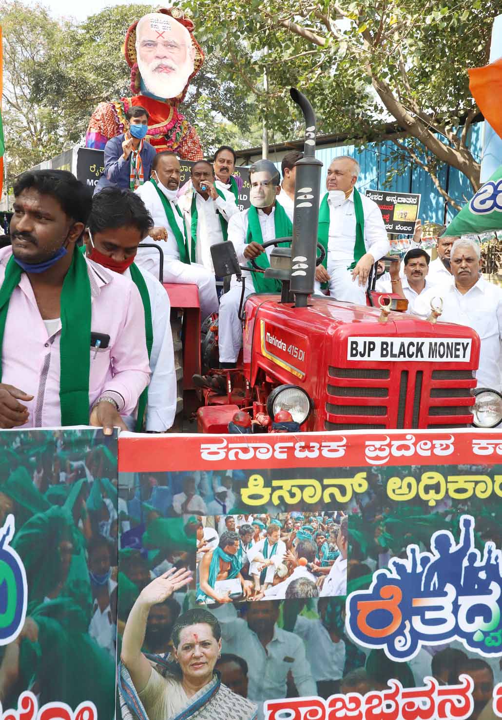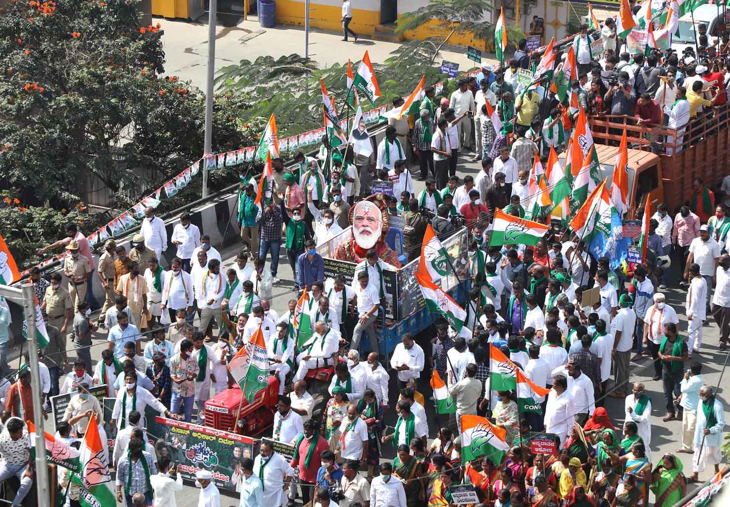 ದಿಲ್ಲಿಯಲ್ಲಿ 58 ದಿನಗಳಿಂದ ರೈತರು ಅಹೋರಾತ್ರಿ ಪ್ರತಿಭಟನೆ ನಡೆಸುತ್ತಿದ್ದು, ಕೇಂದ್ರ ಸರಕಾರ ರೈತರ ಹೋರಾಟಕ್ಕೆ ಸ್ಪಂದಿಸುತ್ತಿಲ್ಲ ಎಂದು ಆರೋಪಿಸಿ, ರೈತರ ಹೋರಾಟ ಬೆಂಬಲಿಸಿ ರಾಜ್ಯಾದ್ಯಂತ ಕಾಂಗ್ರೆಸ್ ಪಕ್ಷದ ನೇತೃತ್ವದಲ್ಲಿ ಪ್ರತಿಭಟನಾ ರ್ಯಾಲಿ, ಧರಣಿ ಸತ್ಯಾಗ್ರಹ ಹಮ್ಮಿಕೊಂಡಿದೆ. ಕೋವಿಡ್ ಹಿನ್ನೆಲೆಯಲ್ಲಿ ತಟಸ್ಥವಾಗಿದ್ದ ಪ್ರತಿಪಕ್ಷ ಕಾಂಗ್ರೆಸ್, ‘ರಾಜಭವನ ಚಲೋ' ಮೂಲಕ ಮೈಕೊಡವಿ ಎದ್ದು ನಿಂತಿದ್ದು, ಸುಮಾರು 25 ಸಾವಿರಕ್ಕೂ ಅಧಿಕ ಜನ ಪಾಲ್ಗೊಂಡಿದ್ದು ಇದಕ್ಕೆ ಸಾಕ್ಷಿಯಾಗಿತ್ತು.