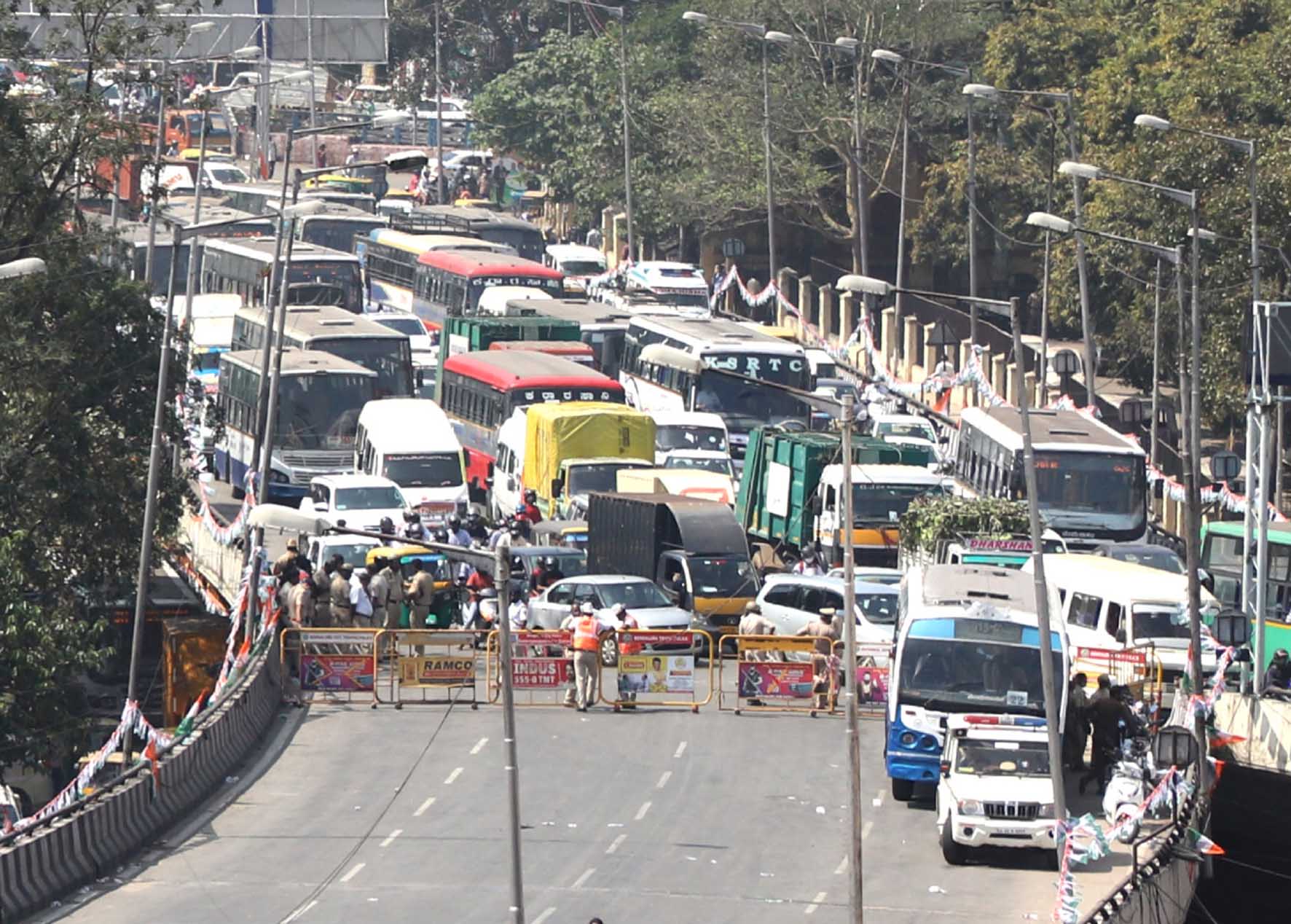 ಸಂಚಾರ ದಟ್ಟಣೆ: ಕಾಂಗ್ರೆಸ್ ಪಕ್ಷದ ನೇತೃತ್ವದಲ್ಲಿ ಹಮ್ಮಿಕೊಂಡಿದ್ದ ಪ್ರತಿಭಟನೆಯಿಂದಾಗಿ ಬೆಂಗಳೂರಿನ ಮೆಜೆಸ್ಟಿಕ್, ಶೇಷಾದ್ರಿ ರಸ್ತೆ, ರೇಸ್ಕೋರ್ಸ್ ರಸ್ತೆ, ನೃಪತುಂಗ ರಸ್ತೆ, ಮೈಸೂರು ರಸ್ತೆ, ವಿಧಾನಸೌಧದ ಸುತ್ತಮುತ್ತಲ ರಸ್ತೆಗಳು ಸೇರಿದಂತೆ ನಗರದಲ್ಲಿ ಗಂಟೆಗಟ್ಟಲೆ ಸಂಚಾರ ದಟ್ಟಣೆ ಉಂಟಾಗಿ, ಸಾರ್ವಜನಿಕರು, ವಾಹನ ಸವಾರರು ಪರದಾಡುವಂತಾಯಿತು. ಬೆಂಗಳೂರು-ಮೈಸೂರು ರಸ್ತೆಯಲ್ಲಿನ ಸ್ಯಾಟಲೈಟ್ ಬಸ್ ನಿಲ್ದಾಣದ ಎದುರು ವಾಹನಗಳು ಸಾಲುಗಟ್ಟಿ ನಿಂತಿದ್ದ ದೃಶ್ಯ ಕಂಡು ಬಂತು.