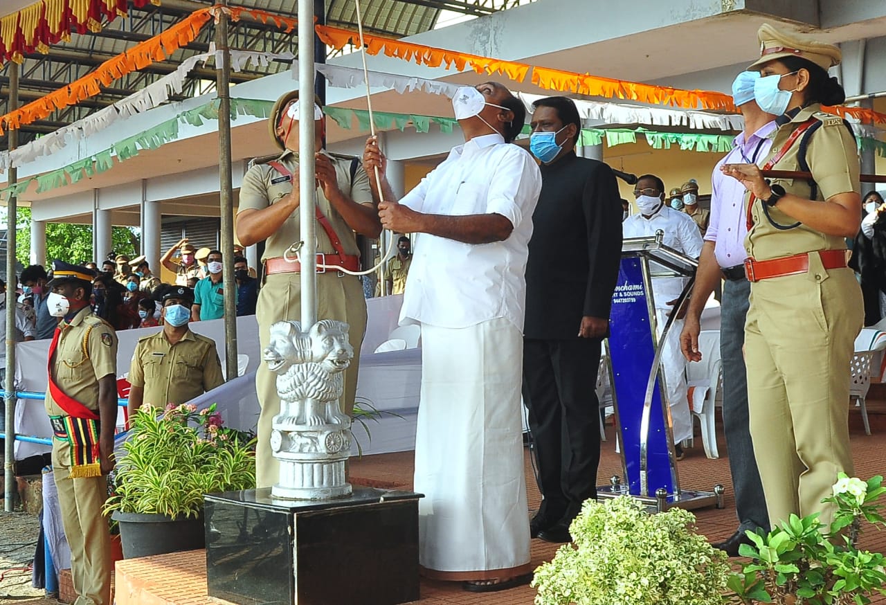 ಕಾಸರಗೋಡು : ನಗರಸಭಾ ಕ್ರೀಡಾಂಗಣದಲ್ಲಿ ನಡೆದ ಗಣರಾಜ್ಯೋತ್ಸವದ ಜಿಲ್ಲಾ ಮಟ್ಟದ ಕಾರ್ಯಕ್ರಮದಲ್ಲಿ ರಾಜ್ಯ ಕಂದಾಯ ಸಚಿವ ಇ. ಚಂದ್ರಶೇಖರನ್ ಧ್ವಜಾರೋಹಣ ನೆರವೇರಿಸಿದರು.