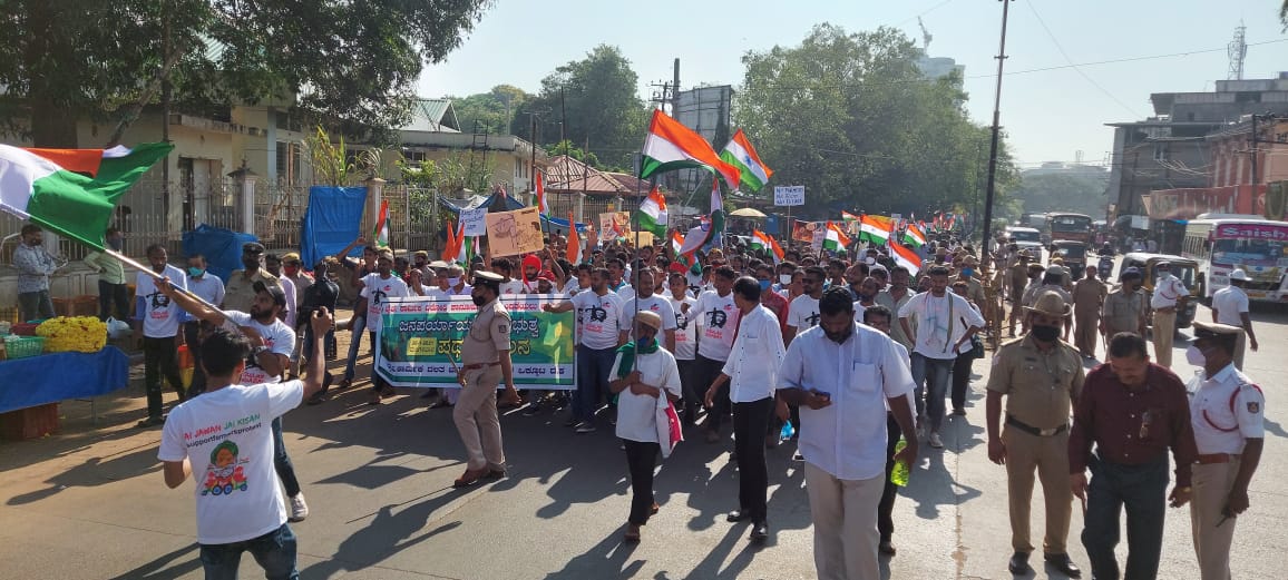 ಮಂಗಳೂರಿನಲ್ಲೂ ಮೊಳಗಿದ ರೈತ ಪರ ಘೋಷಣೆ: ಟ್ರ್ಯಾಕ್ಟರ್ ಜತೆ ಪ್ರಜಾಪ್ರಭುತ್ವ ಪಥಸಂಚಲನ