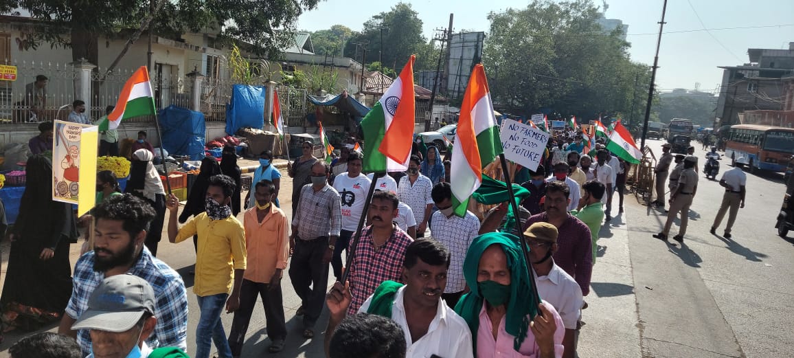 ರೈತರು, ದಲಿತರು, ಕಾರ್ಮಿಕರು, ಮಹಿಳೆಯರು ಸೇರಿದಂತೆ ದುಡಿಯುವ ವರ್ಗದಿಂದ ನಗರದ ಹೃದಯ ಭಾಗದಲ್ಲಿ ಟ್ರ್ಯಾಕ್ಟರ್ ಜತೆ ಪ್ರಜಾಪ್ರಭುತ್ವ ಪಥ ಸಂಚಲನ ನಡೆಸುವ ಮೂಲಕ ದೇಶದ ರೈತರ ಜತೆ ನಾವಿದ್ದೇವೆ ಎಂಬ ಸಂದೇಶವನ್ನು ವಿವಿಧ ಸಂಘಟನೆಗಳ ನೇತೃತ್ವದಲ್ಲಿ ನೀಡಲಾಯಿತು.