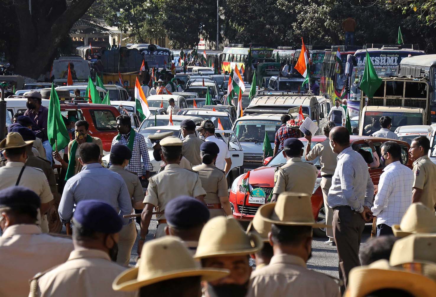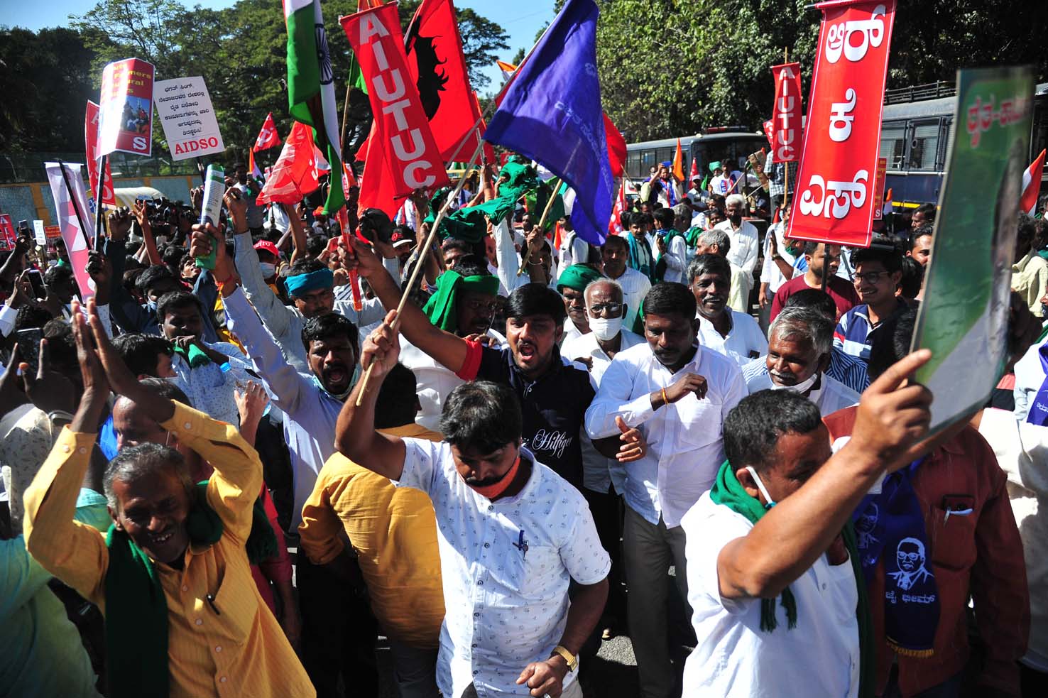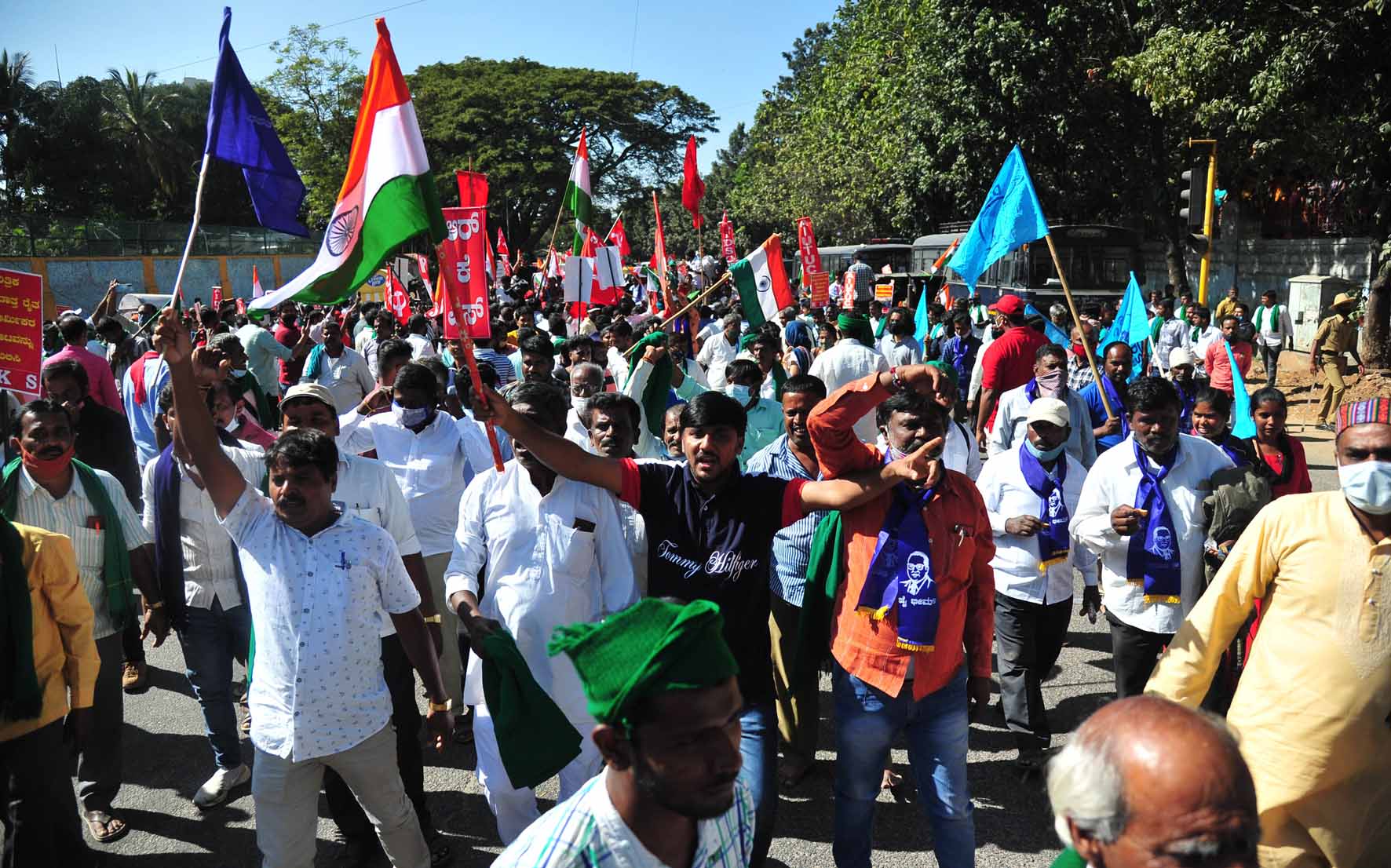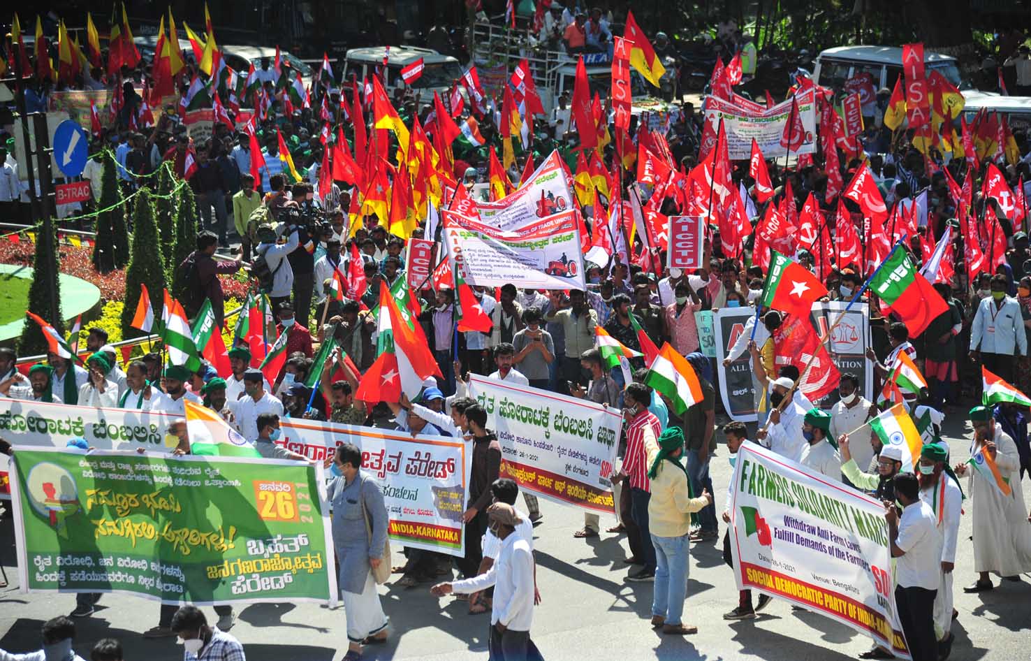ಎಪಿಎಂಸಿ ತಿದ್ದುಪಡಿ ಕಾಯ್ದೆ, ಕನಿಷ್ಠ ಬೆಂಬಲ ಬೆಲೆ ತಿದ್ದುಪಡಿ ಕಾಯ್ದೆ ವಿರೋಧಿಸಿ ರಾಷ್ಟ್ರರಾಜಧಾನಿ ಹೊಸದಿಲ್ಲಿಯಲ್ಲಿ ಹೋರಾಟನಿತರ ರೈತರು ಗಣರಾಜ್ಯೋತ್ಸವ ದಿನವೇ ಕರೆ ಕೊಟ್ಟ ಟ್ರ್ಯಾಕ್ಟರ್ ಮೆರವಣಿಗೆ ಬೆಂಬಲಿಸಿ, ಬೆಂಗಳೂರು, ಕಲಬುರ್ಗಿ, ಮಂಡ್ಯ, ತುಮಕೂರು, ಕೋಲಾರ, ಚಿಕ್ಕಬಳ್ಳಾಪುರ, ಹಾಸನ, ರಾಮನಗರ, ಚಿಕ್ಕಬಳ್ಳಾಪುರ ಸೇರಿದಂತೆ ರಾಜ್ಯದ ವಿವಿಧೆಡೆ ನೂರಾರು ರೈತ ಪರ ಸಂಘಟನೆಗಳ ನೇತೃತ್ವದಲ್ಲಿ ಪ್ರತಿಭಟನೆ ನಡೆಸಲಾಯಿತು.