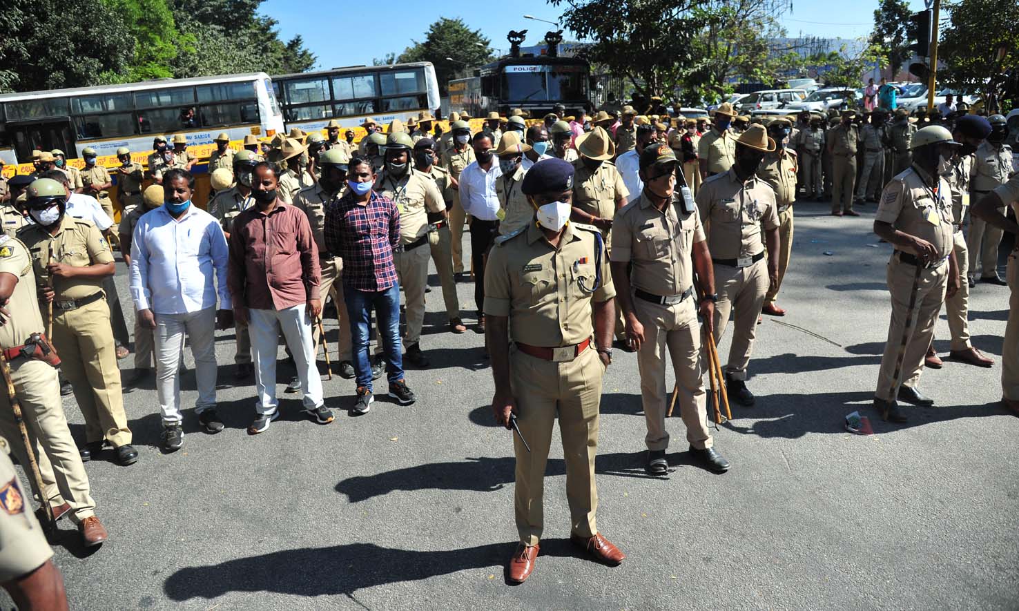 ರೈತರ ಟ್ರ್ಯಾಕ್ಟರ್ ಪರೇಡ್ ಹಿನ್ನೆಲೆ ಮುಖ್ಯಮಂತ್ರಿಗಳ ನಿವಾಸ ಕೃಷ್ಣಾ, ವಿಧಾನಸೌಧ, ಶಾಸಕರ ಭವನ, ರಾಜಭವನ ರಸ್ತೆ ಸೇರಿದಂತೆ ಹಲವು ಪ್ರದೇಶಗಳಲ್ಲಿ ಬಿಗಿ ಪೊಲೀಸ್ ಬಂದೋಬಸ್ತ್ ಕೈಗೊಳ್ಳಲಾಗಿತ್ತು.
