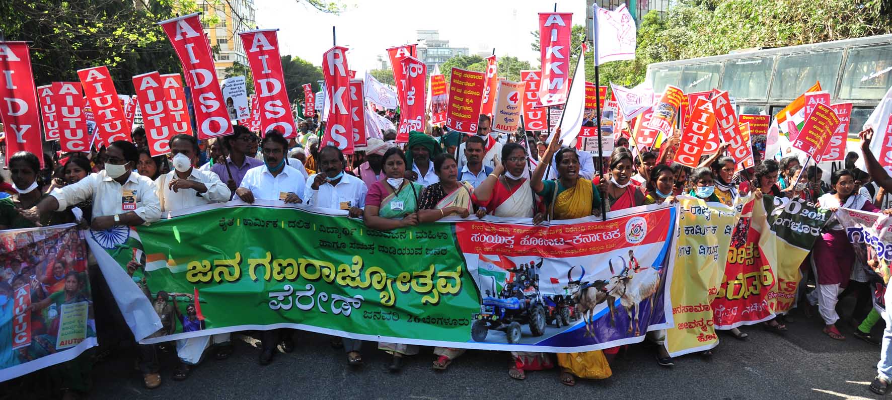 ಮುಖ್ಯವಾಗಿ ಟ್ರ್ಯಾಕ್ಟರ್ ಪರೇಡ್ನ ಕೇಂದ್ರ ಬಿಂದುವಾಗಿದ್ದ ಬೆಂಗಳೂರಿಗೆ ಇಲ್ಲಿನ ತುಮಕೂರು ರಸ್ತೆ, ನೈಸ್ ರೋಡ್ ಜಂಕ್ಷನ್, ದೇವನಹಳ್ಳಿ ನಂದಿಕ್ರಾಸ್, ಹೊಸಕೋಟೆ ಟೋಲ್ ಜಂಕ್ಷನ್, ಸುಮನಹಳ್ಳಿ ಗೇಟ್, ಬೆಂಗಳೂರು ನಗರ ರೈಲ್ವೆ ನಿಲ್ದಾಣ ಸೇರಿದಂತೆ 6 ಕಡೆಗಳಿಂದ ಸಂಯುಕ್ತ ಕಿಸಾನ್ ಮೋರ್ಚಾ ವೇದಿಕೆ, ರಾಜ್ಯ ರೈತ ಸಂಘ ಹಾಗೂ ಹಸಿರು ಸೇನೆ, ರಾಜ್ಯ ಕಬ್ಬು ಬೆಳೆಗಾರರ ಸಂಘ, ದಲಿತ ಸಂಘರ್ಷ ಸಮಿತಿ, ಕರ್ನಾಟಕ ಪ್ರಾಂತ ರೈತ ಸಂಘ, ಆಲ್ ಇಂಡಿಯಾ ಡೆಮೊಕ್ರಟಿಕ್ ವುಮೆನ್ಸ್ ಅಸೋಸಿಯೇಷನ್, ಎಐಟಿಯುಸಿ, ಕರ್ನಾಟಕ ಜನಶಕ್ತಿ, ಆಲ್ ಇಂಡಿಯೂ ಡೆಮೊಕ್ರಟಿಕ್ ಸ್ಟೂಡೆಂಟ್ ಅಸೋಸಿಯೇಷನ್, ಐಕ್ಯ ಹೋರಾಟ ಸಮಿತಿ ಸೇರಿ ವಿವಿಧ ಸಂಘಟನೆಗಳ ನೇತೃತ್ವದಲ್ಲಿ ಸಮಾವೇಶಗೊಂಡ ರೈತರು, ಅಲ್ಲಿಂದ ಫ್ರೀಡಂಪಾರ್ಕ್ ಮೈದಾನದವರೆಗೆ ಪರೇಡ್ ನಡೆಸಿ ಕೇಂದ್ರದ ಕೃಷಿ ಕಾಯ್ದೆಗಳು, ರಾಜ್ಯ ಸರಕಾರದ ಭೂ ಸುಧಾರಣೆ ತಿದ್ದುಪಡಿ ಕಾಯ್ದೆ, ಭೂಸ್ವಾಧೀನ ಕಾಯ್ದೆ, ಎಪಿಎಂಸಿ ತಿದ್ದುಪಡಿ ಕಾಯ್ದೆ, ಜಾನುವಾರು ಹತ್ಯೆ ನಿಷೇಧ ಕಾಯ್ದೆ ವಾಪಸ್ ಪಡೆಯಬೇಕೆಂದು ಆಗ್ರಹಿಸಿದರು.