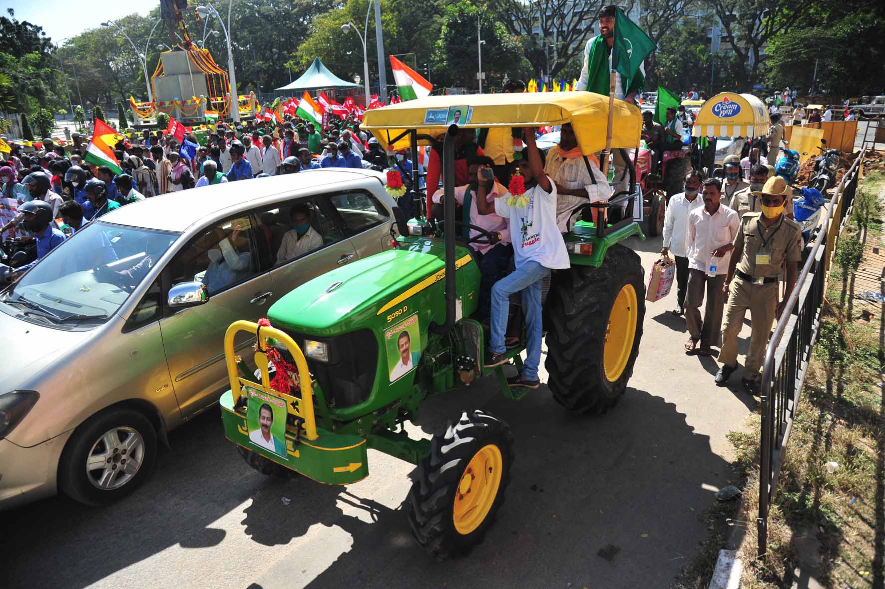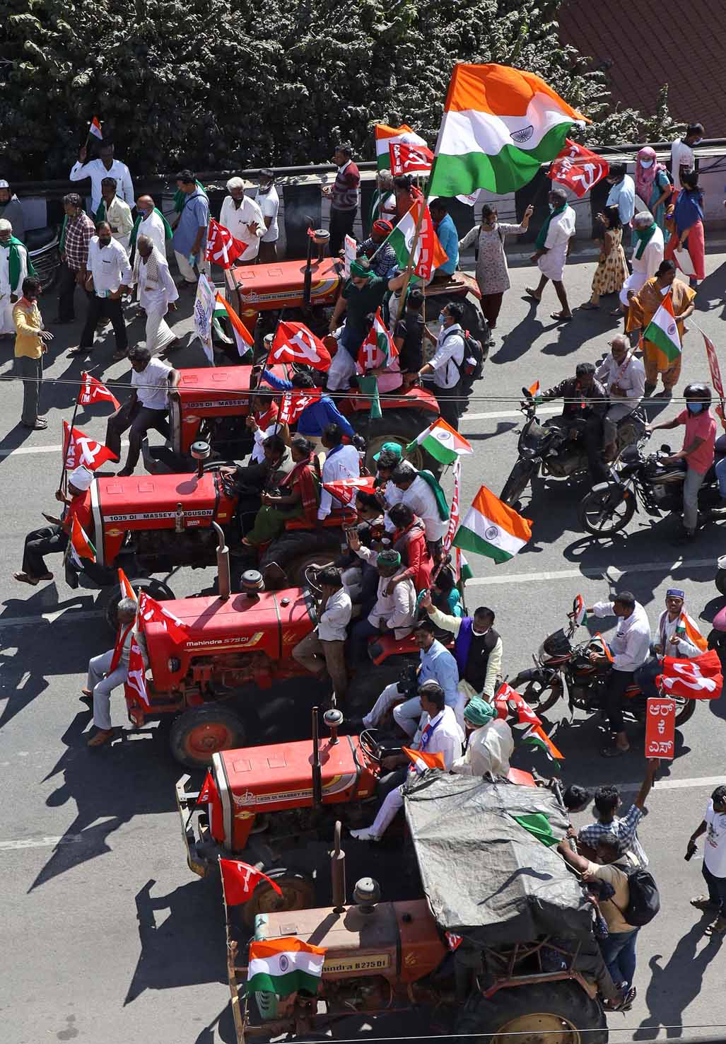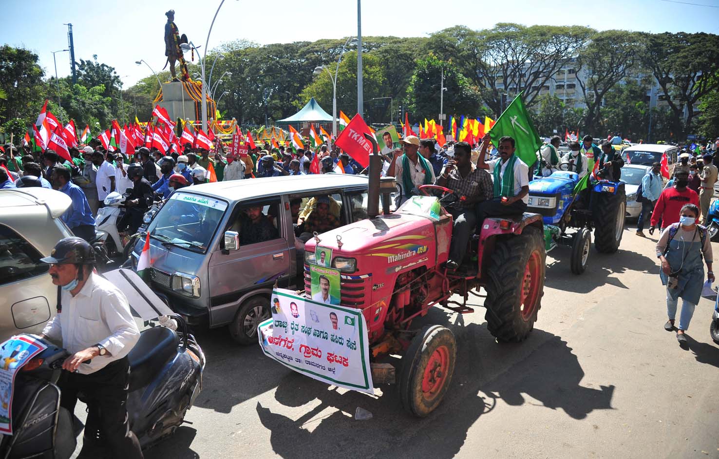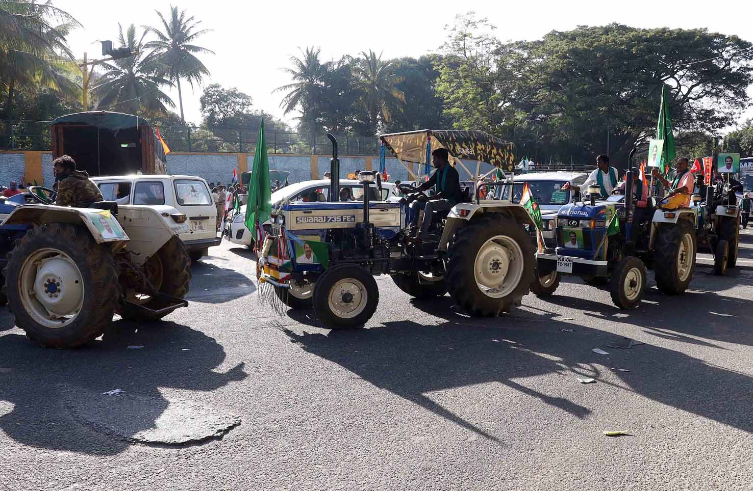 ಕೃಷಿ ಕಾಯ್ದೆಗಳ ವಿರುದ್ಧ ಬೀದಿಗಿಳಿದ ರೈತರು: ಬೆಂಗಳೂರು ಸೇರಿ ರಾಜ್ಯದ ಹಲವೆಡೆ 'ಟ್ರ್ಯಾಕ್ಟರ್ ಪರೇಡ್'