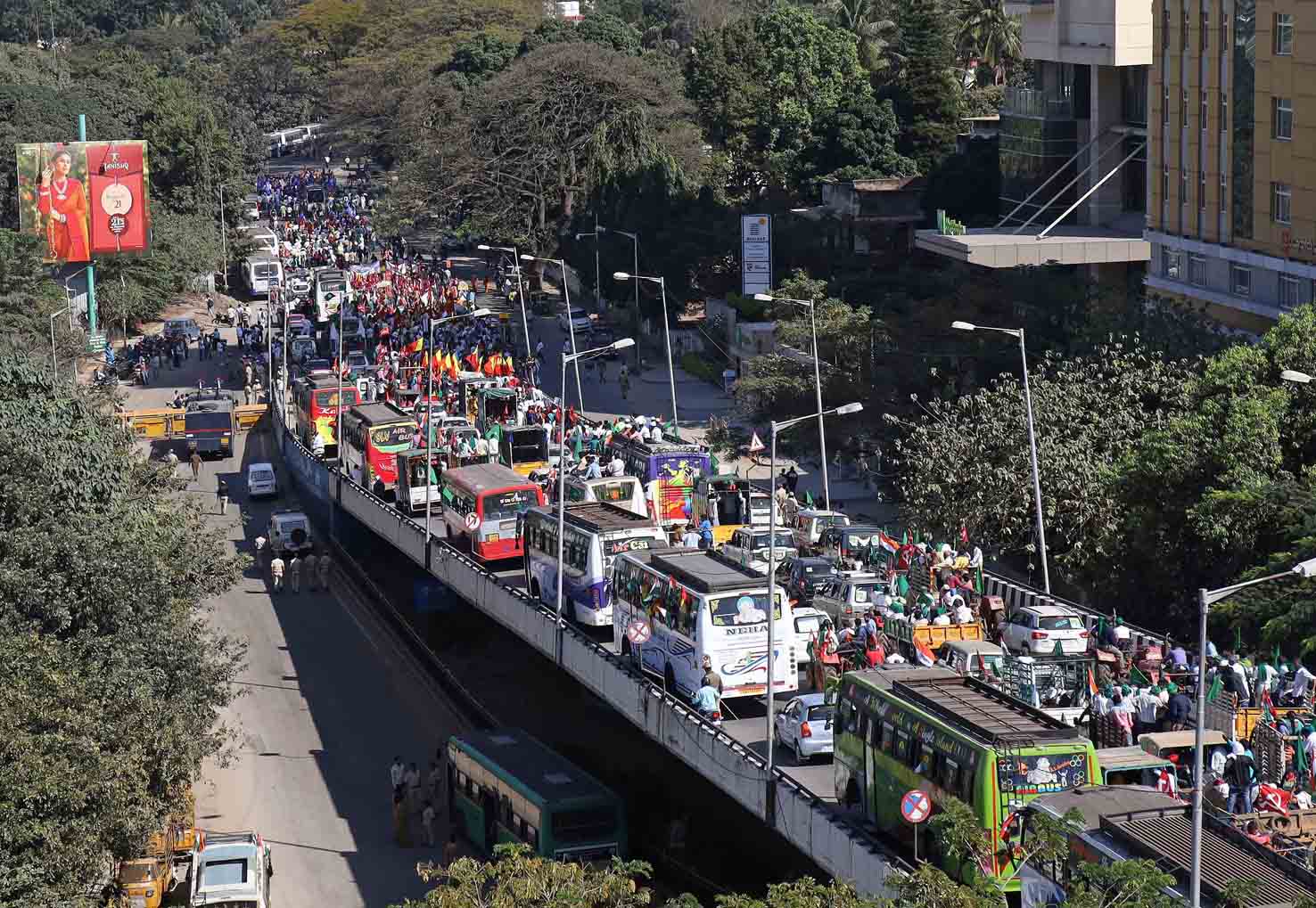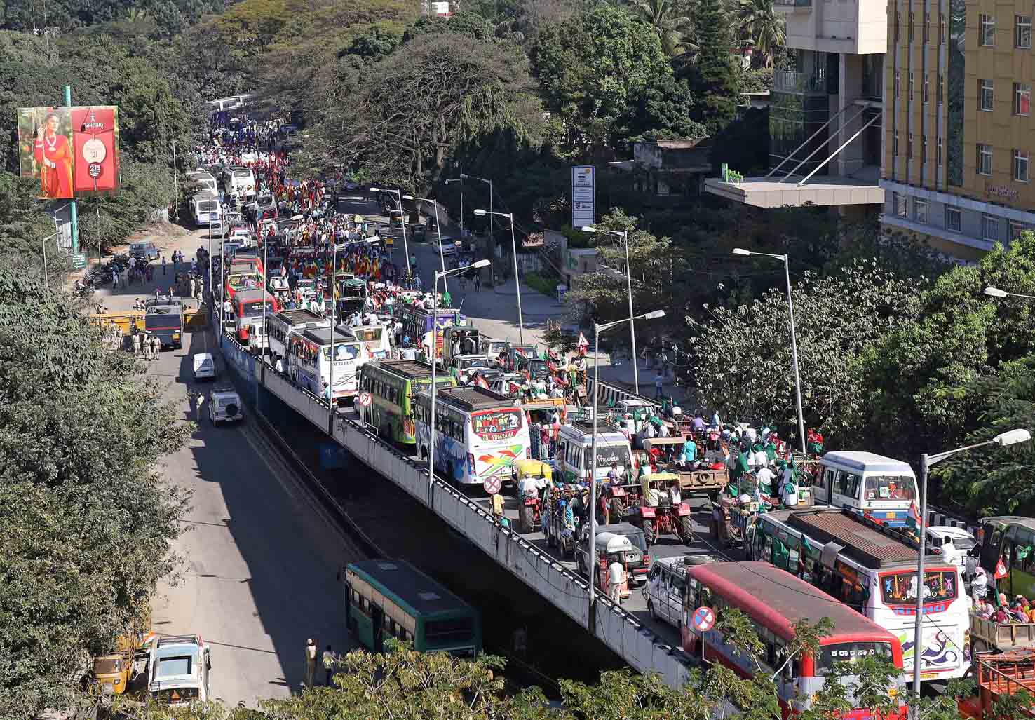 ಮಂಗಳವಾರ ಗಣರಾಜ್ಯೋತ್ಸವ ಹಿನ್ನೆಲೆ ಸರಕಾರಿ ರಜೆ ಇತ್ತು. ಹಾಗಾಗಿ, ಬೆಂಗಳೂರಿನಲ್ಲಿ ಸಂಚಾರ ದಟ್ಟಣೆಯ ಬಿಸಿ ಹೆಚ್ಚಾಗಿ ತಟ್ಟಲಿಲ್ಲ. ರೈತರು, ಪೊಲೀಸರು ಸೂಚಿಸಿದ ಮಾರ್ಗಗಳಲ್ಲೇ ಶಾಂತಿಯುತವಾಗಿ ಸಾಗಿಬಂದು ಗಮನ ಸೆಳೆದರು.