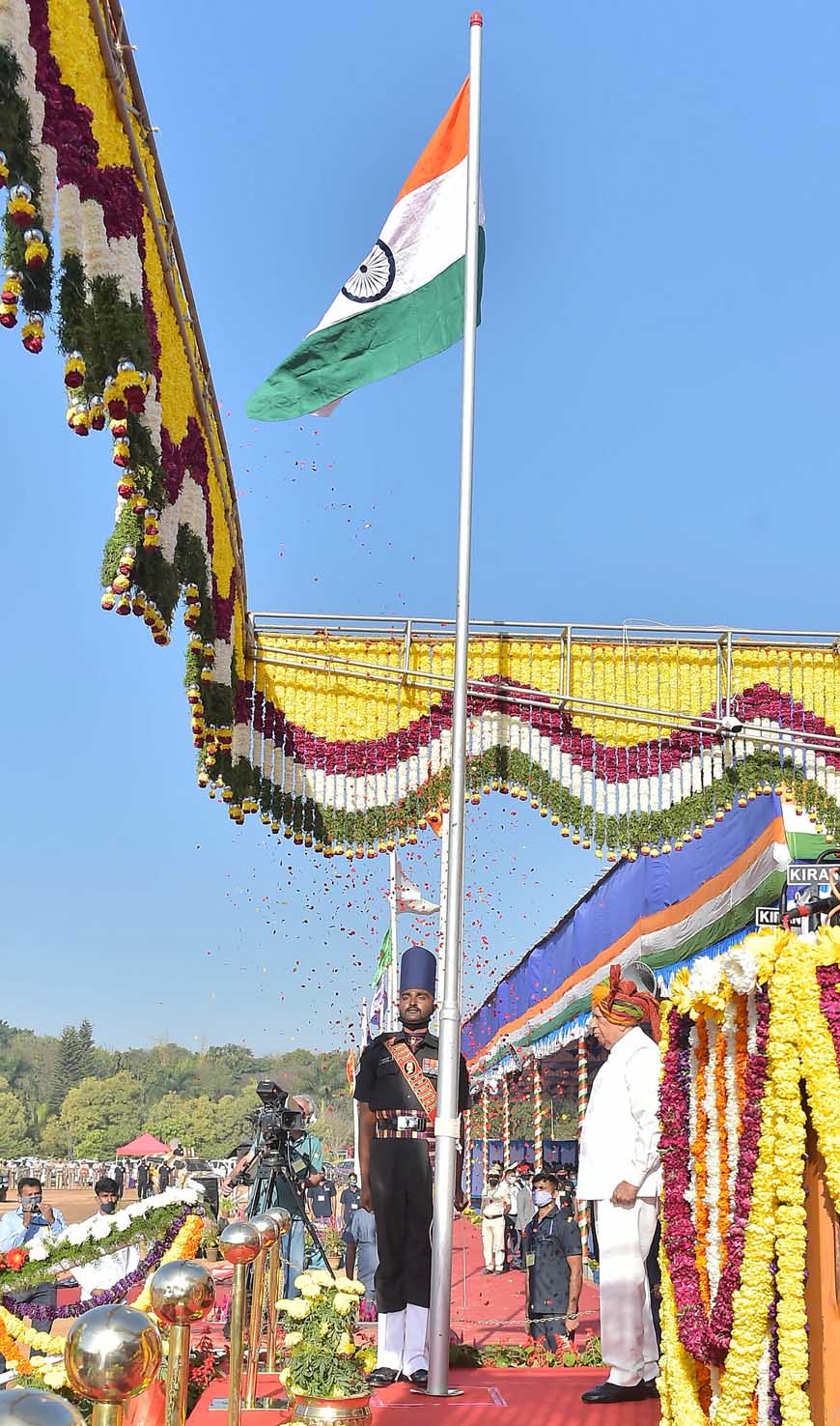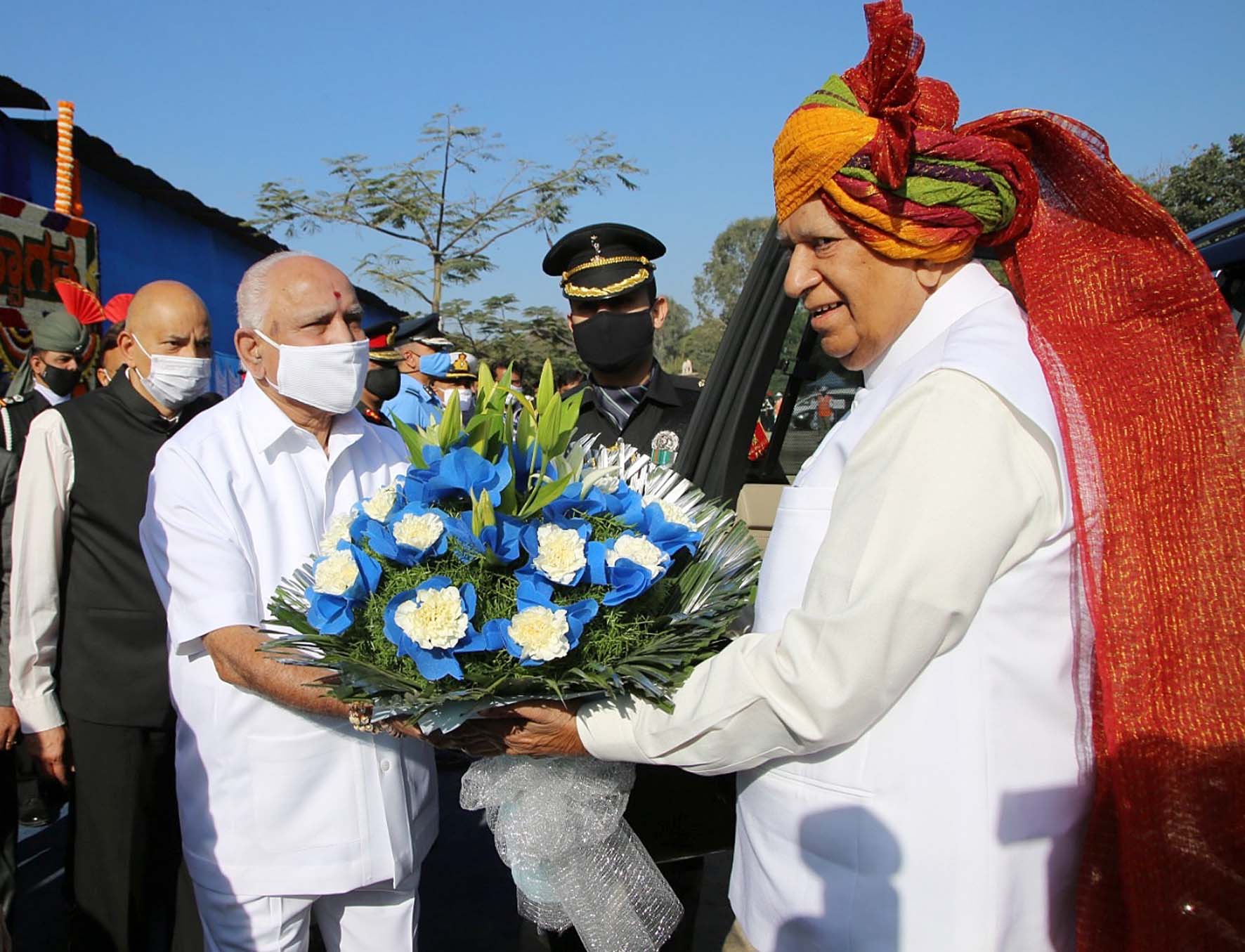 ಈ ವೇಳೆ ಮಾಣಿಕ್ ಷಾ ಪರೇಡ್ ಮೈದಾನಕ್ಕೆ ಬಂದ ರಾಜ್ಯಪಾಲರನ್ನು ಮುಖ್ಯಮಂತ್ರಿ ಬಿ.ಎಸ್. ಯಡಿಯೂರಪ್ಪ ಸ್ವಾಗತಿಸಿದರು.