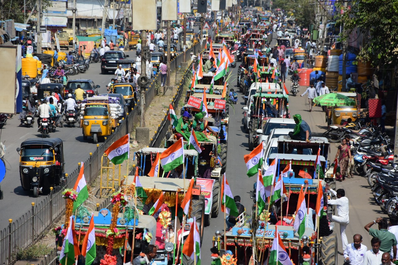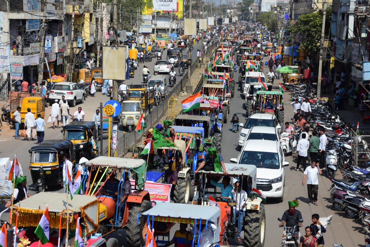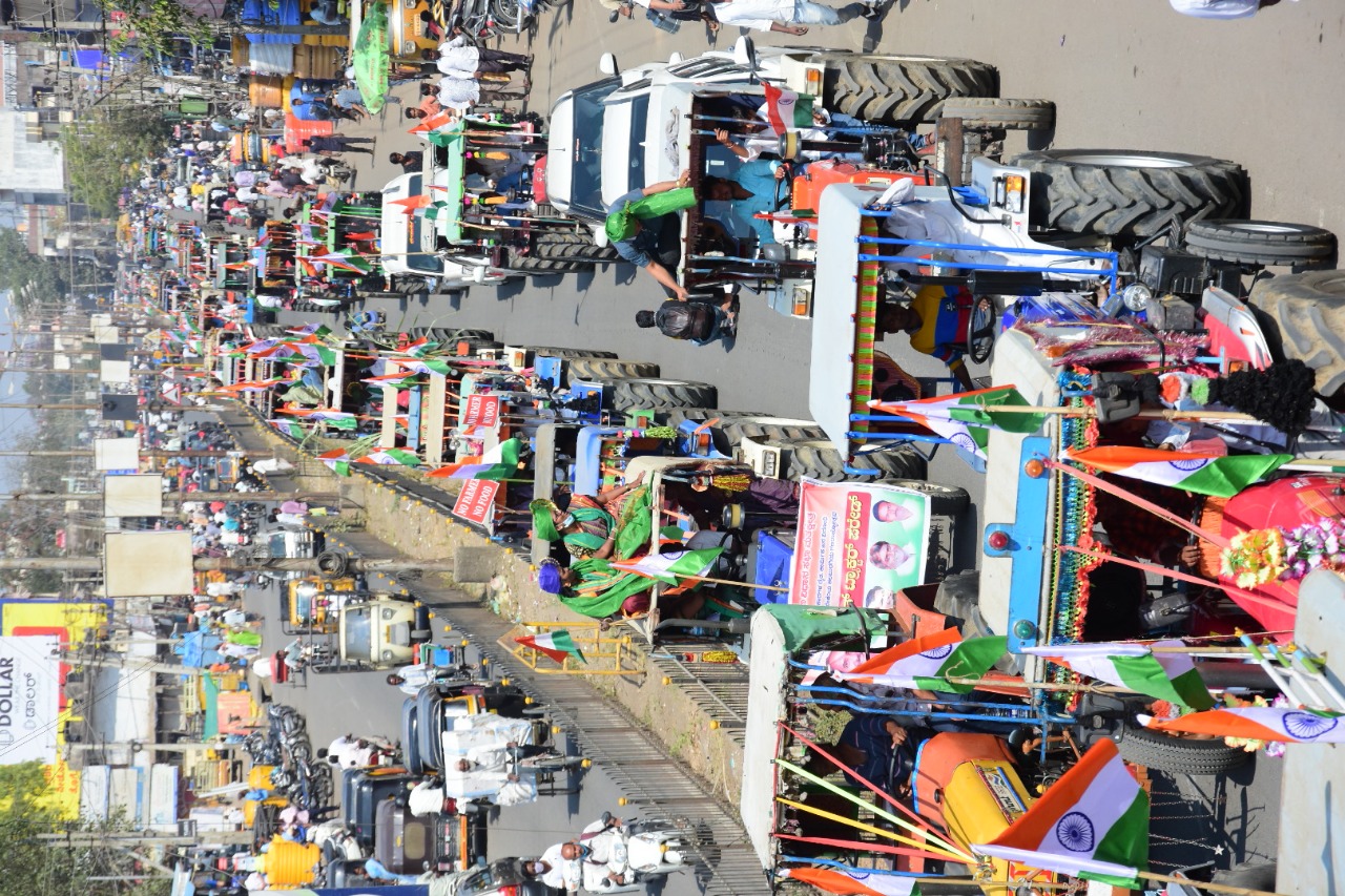ನಗರದ ನೆಹರು ಗಂಜ್, ಸುಪರ್ ಮಾರ್ಕೆಟ್, ಜಗತ್ ಮಾರ್ಗವಾಗಿ ಜಿಲ್ಲಾಧಿಕಾರಿ ಕಚೇರಿವರೆಗೆ ಸುಮಾರು 200ಕ್ಕೂ ಹೆಚ್ಚು ಟ್ರ್ಯಾಕ್ಟರ್ ಗಳು ಪರೇಡ್ ನಡೆಸಿದವು.