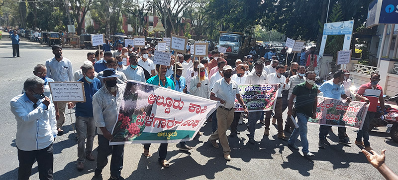 ಗುರುವಾರ ಬೆಳಗ್ಗೆ ನಗರದ ಗಾಂಧಿ ಪಾರ್ಕ್ ಆವರಣದಲ್ಲಿ ಸಮಾವೇಶಗೊಂಡು ಆಲ್ದೂರು ಕಾಫಿ ಬೆಳೆಗಾರರ ಸಂಘದ ಪದಾಧಿಕಾರಿಗಳು ಹಾಗೂ ಸದಸ್ಯರು ಸಂಕಷ್ಟದಲ್ಲಿರುವ ಕಾಫಿ ಬೆಳೆಗಾರರ ನೆರವಿಗೆ ರಾಜ್ಯ, ಕೇಂದ್ರ ಸರಕಾರಗಳು ಮುಂದಾಗಬೇಕು. ಅಳಿವಿನಂಚಿನಲ್ಲಿರುವ ಕಾಫಿ ಉದ್ಯಮಕ್ಕೆ ಪುನಃಶ್ಚೇತನಕ್ಕೆ ಅಗತ್ಯಕ್ರಮಕೈಗೊಳ್ಳಬೇಕು. ಕಾಫಿ ಉದ್ಯಮವನ್ನು ಅಲವಂಬಿಸಿರುವ ಲಕ್ಷಾಂತರ ಕಾರ್ಮಿಕರ ಬದುಕಿಗೆ ಸರಕಾರಗಳು ಆಸರೆಯಾಗಬೇಕೆಂದು ಆಗ್ರಹಿಸಿದರು.