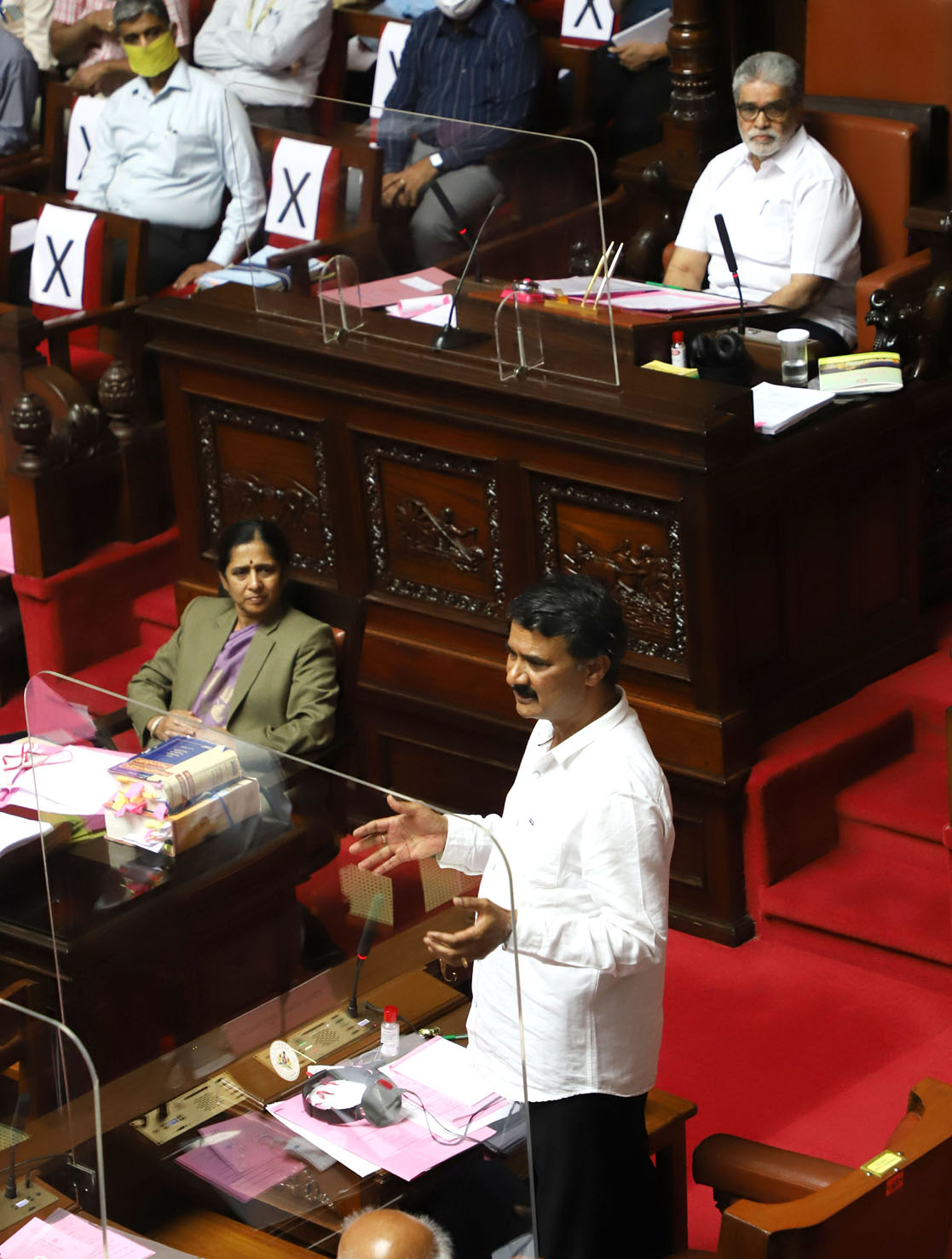 ಶುಕ್ರವಾರ ವಿಧಾನ ಪರಿಷತ್ನಲ್ಲಿ ಉಪಸಭಾಪತಿಯಾಗಿ ಆಯ್ಕೆಯಾದ ಬಳಿಕ ಆಡಳಿತ ಮತ್ತು ಪ್ರತಿಪಕ್ಷದ ಸದಸ್ಯರ ಅಭಿನಂದನೆ ಸ್ವೀಕರಿಸಿ ಬಳಿಕ ಮಾತನಾಡಿದ ಅವರು, ಆಡಳಿತ ಪಕ್ಷದ ಸದಸ್ಯರು ಯಾವುದೇ ವಿಷಯದ ಕುರಿತು ಸಮರ್ಥನೆ ಮಾಡಿಕೊಳ್ಳುವುದು ಪ್ರತಿಪಕ್ಷಗಳ ಸದಸ್ಯರು ವಿರೋಧ ಮಾಡುವುದು ಅನಿವಾರ್ಯ ಆಗಿರುತ್ತದೆ. ಆದರೆ, ರಾಜ್ಯದ ಜನರ ಸಮಸ್ಯೆಗಳಿಗೆ ಪೂರಕವಾಗಿ ಸ್ಪಂದಿಸುವ ನಿಟ್ಟಿನಲ್ಲಿ ಸದನ ನಡೆಯಬೇಕಾಗಿದೆ. ಆಗ ಮಾತ್ರ ಸಮಾಜ ಅಭಿನಂದಿಸುತ್ತದೆ. ಈ ನಿಟ್ಟಿನಲ್ಲಿ ಆತ್ಮಸಾಕ್ಷಿಗೆ ಅನುಗುಣವಾಗಿ ಕೆಲಸ ಮಾಡೋಣ ಎಂದು ತಿಳಿಸಿದರು.