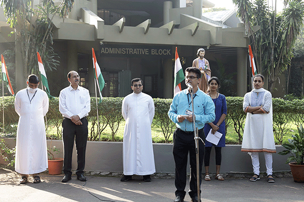 ಮುಖ್ಯ ಅತಿಥಿಯಾಗಿ ಭಾಗವಹಿಸಿದ್ದ ಭೌತಶಾಸ್ತ್ರ ವಿಭಾಗದ ಮುಖ್ಯಸ್ಥ ಡಾ.ವಿನ್ಸೆಂಟ್ ಕ್ರಾಸ್ತಾ ಧ್ವಜಾರೋಹಣಗೈದರು.