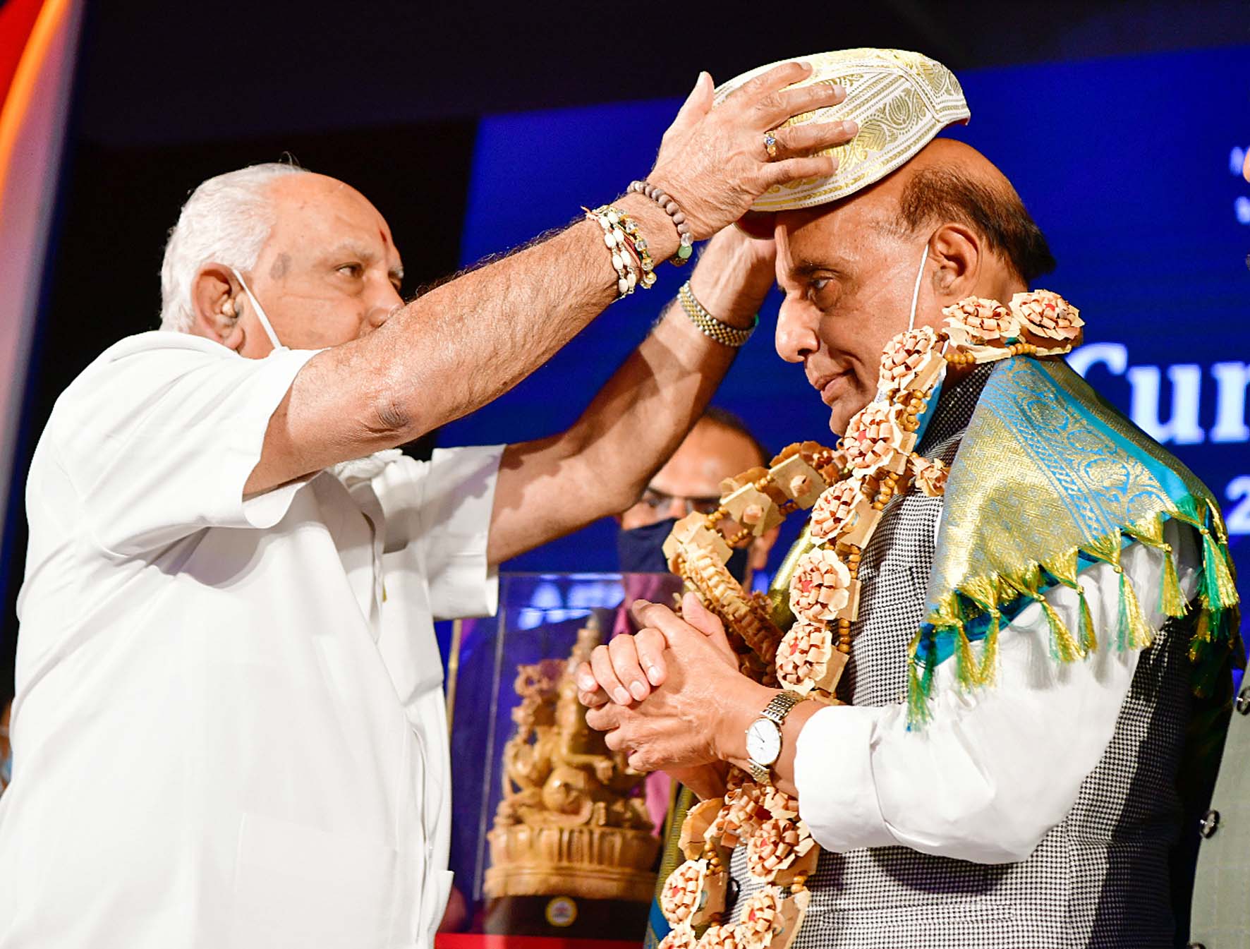 ಮಾಹಿತಿ ತಂತ್ರಜ್ಞಾನ ಕ್ಷೇತ್ರದಲ್ಲಿ ಕರ್ನಾಟಕ ಮುಂಚೂಣಿಯಲ್ಲಿದೆ. ಇಲ್ಲಿ ನಡೆದಿರುವ ಆವಿಷ್ಕಾರಗಳು, ಸಂಶೋಧನೆಗಳು ಹಲವು ಪ್ರಥಮಗಳಿಗೆ ಮುನ್ನಡಿ ಬರೆದಿದೆ. ಈ ಕೋವಿಡ್ ಸಾಂಕ್ರಮಿಕದ ಸಂದರ್ಭದಲ್ಲಿಯೂ ನಾವು ಎದೆಗುಂದದೆ ಆಯೋಜಿಸಿರುವ ಏರೋ ಇಂಡಿಯಾ ಕೇವಲ ಆರಂಭವಷ್ಟೇ. ಮುಂದಿನ ದಿನಗಳಲ್ಲಿ ಭಾರತವನ್ನು ವಿಶ್ವದಲ್ಲೆ ಮುಂಚೂಣಿಗೆ ತರುವ ನಿಟ್ಟಿನಲ್ಲಿ ಹಲವಾರು ದೊಡ್ಡಮಟ್ಟದ ಕಾರ್ಯಕ್ರಮಗಳು ಮುನ್ನಲೆಗೆ ಬರಲಿವೆ. ಮುಂದಿನ 3-4 ವರ್ಷಗಳಲ್ಲಿ ರಕ್ಷಣಾ ಉತ್ಪಾದನಾ ಕ್ಷೇತ್ರದಲ್ಲಿ 1.75 ಲಕ್ಷ ಕೋಟಿ ರೂ.ಗಳ ಗುರಿ ಸಾಧಿಸುತ್ತೇವೆಂಬ ಭರವಸೆ ನನಗಿದೆ ಎಂದು ರಾಜನಾಥ್ ಸಿಂಗ್ ಹೇಳಿದರು.