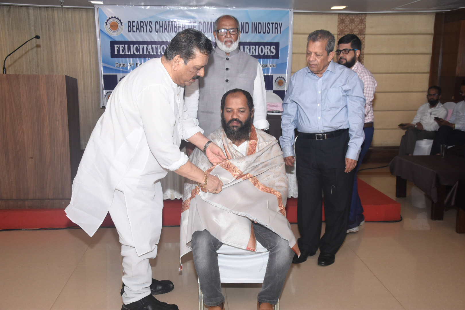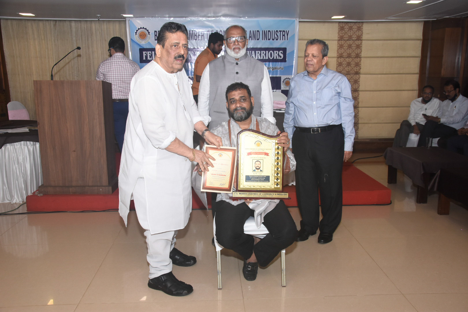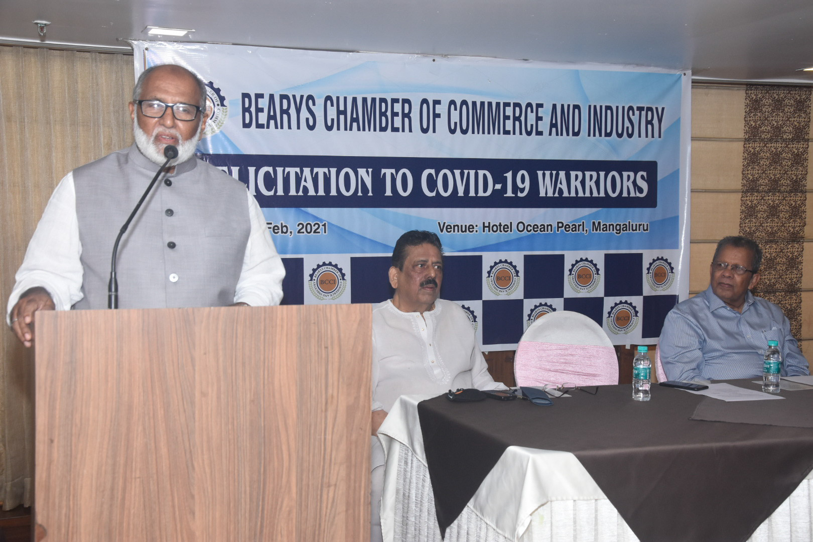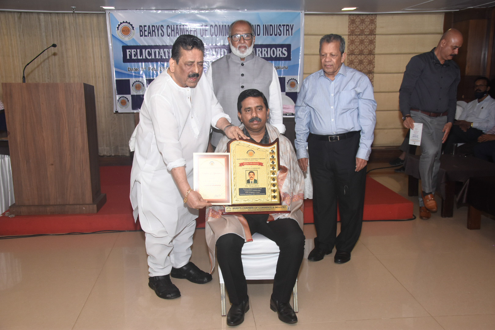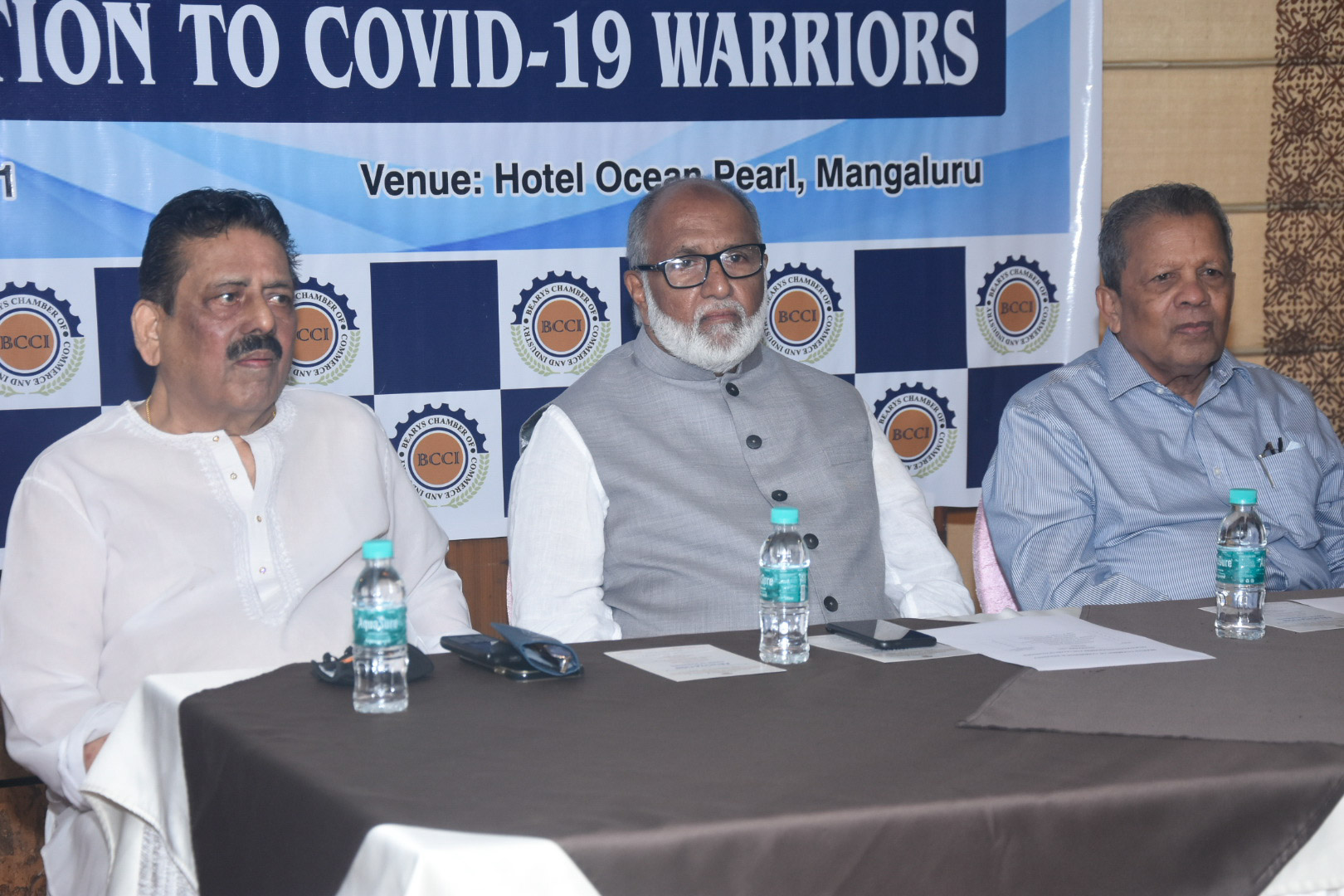 ಮಂಗಳೂರು : ಬ್ಯಾರೀಸ್ ಛೇಂಬರ್ ಆಫ್ ಕಾಮರ್ಸ್ ಆ್ಯಂಡ್ ಇಂಡಸ್ಟ್ರಿ (ಬಿಸಿಸಿಐ) ವತಿಯಿಂದ ಕೊರೋನ ಮತ್ತು ಲಾಕ್ಡೌನ್ ಸಂದರ್ಭ ಸೇವೆಗೈದ 11 ಮಂದಿ ಕೋವಿಡ್ ಸೇನಾನಿಗಳಿಗೆ ಸನ್ಮಾನಿಸುವ ಕಾರ್ಯಕ್ರಮವು ಬುಧವಾರ ನಗರದ ಖಾಸಗಿ ಹೊಟೇಲ್ನಲ್ಲಿ ಜರುಗಿತು.