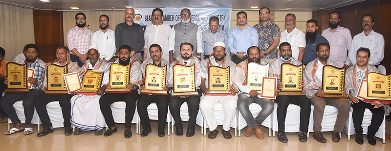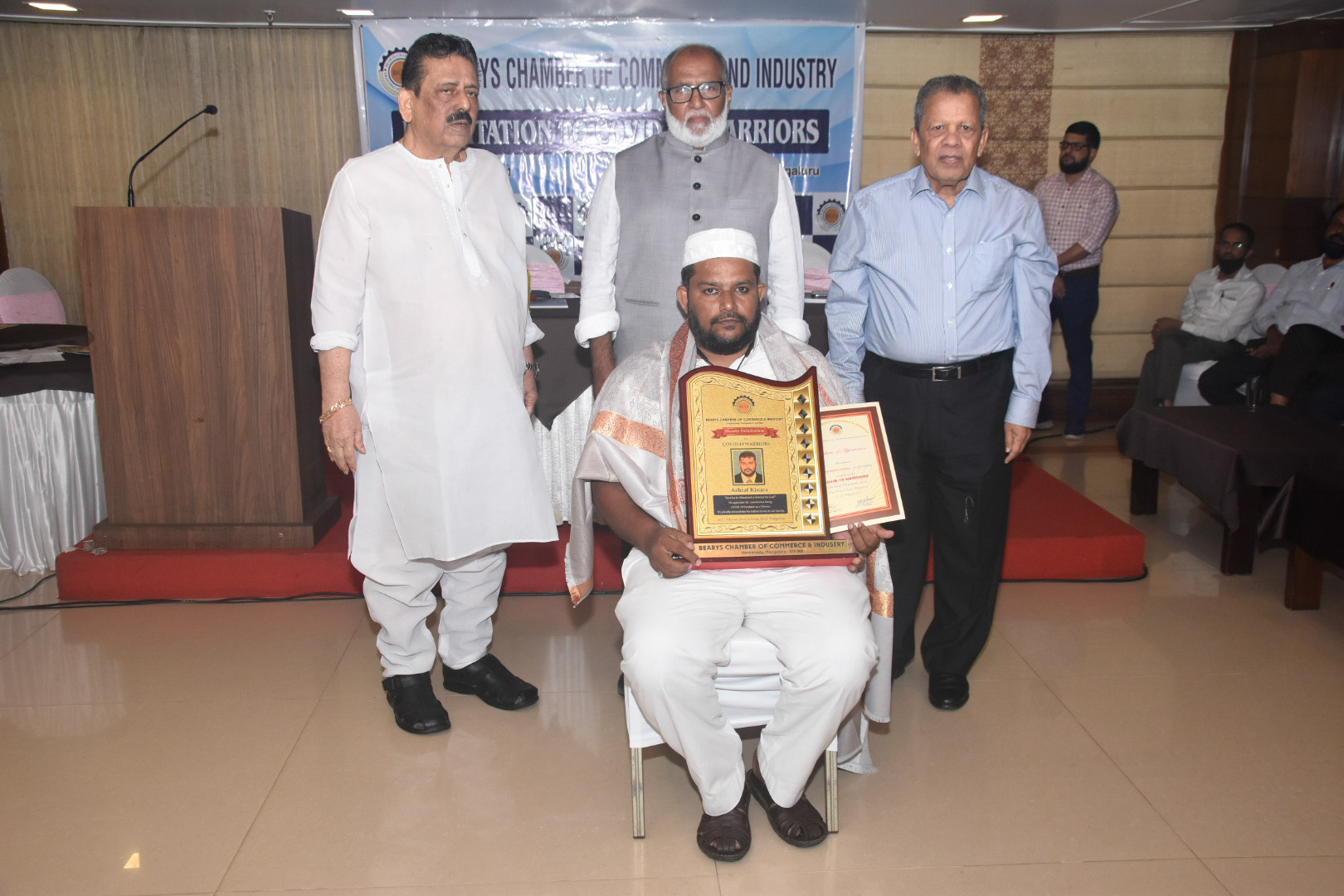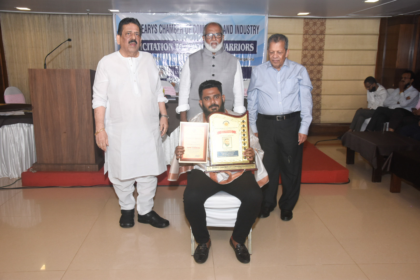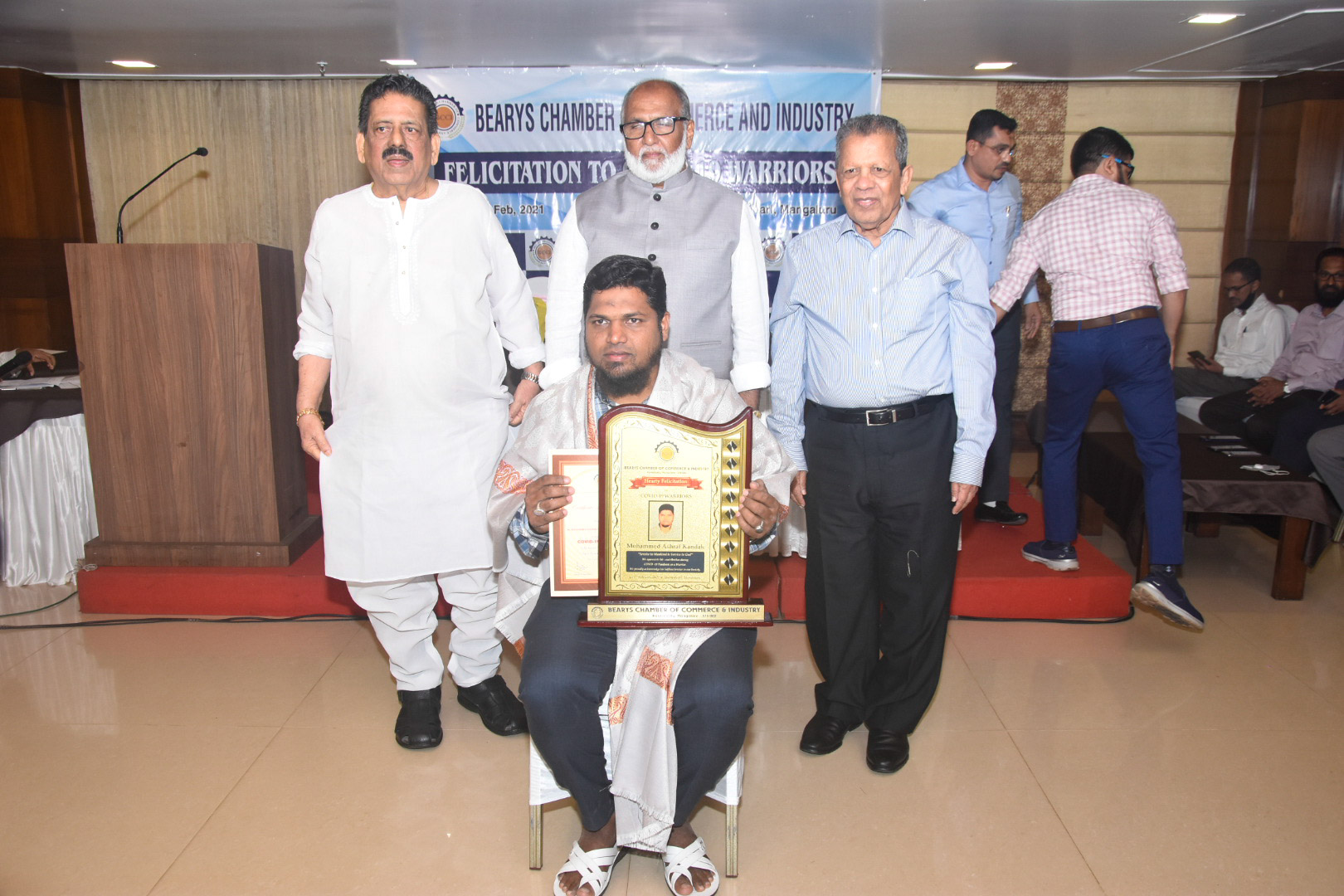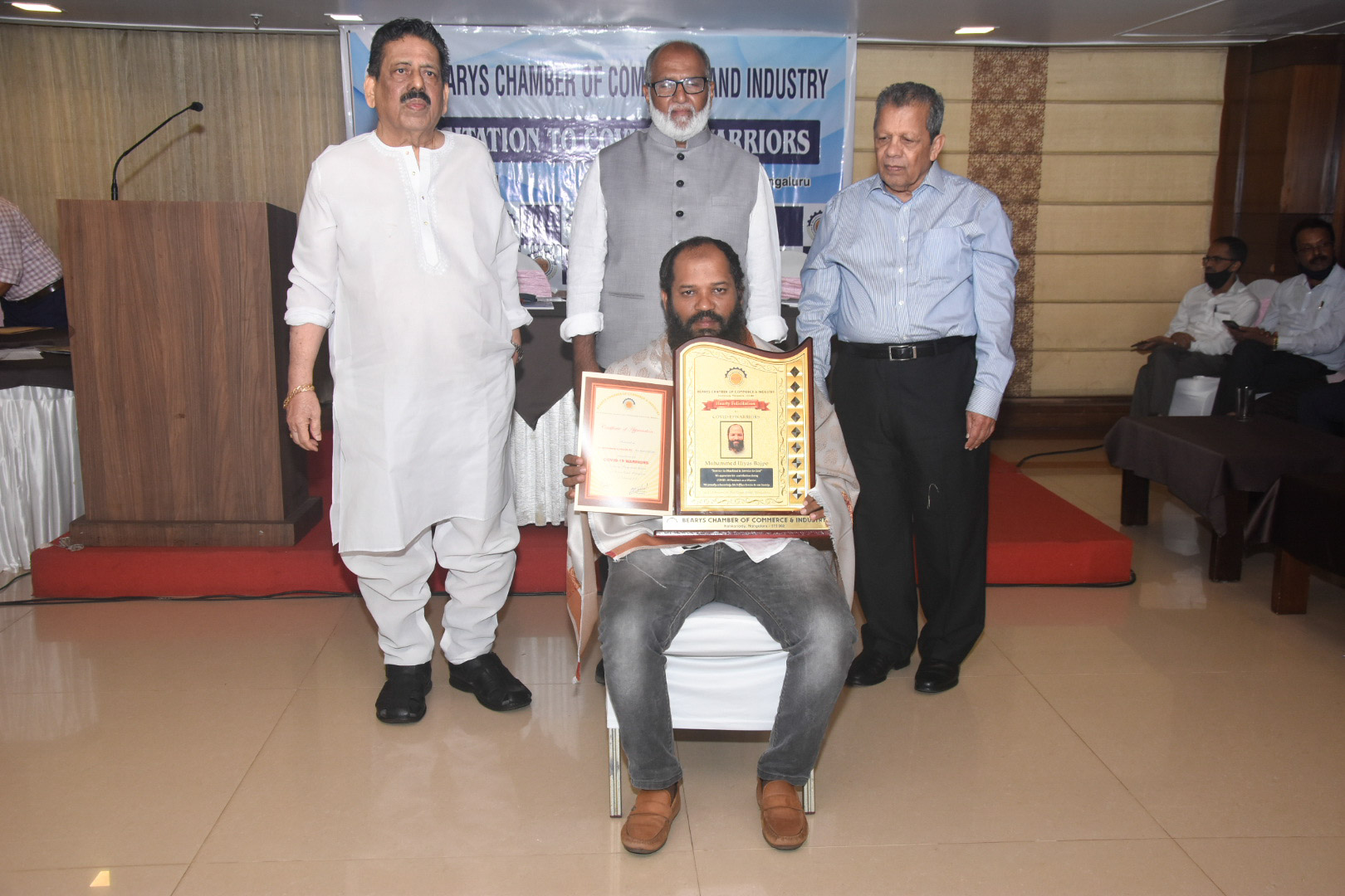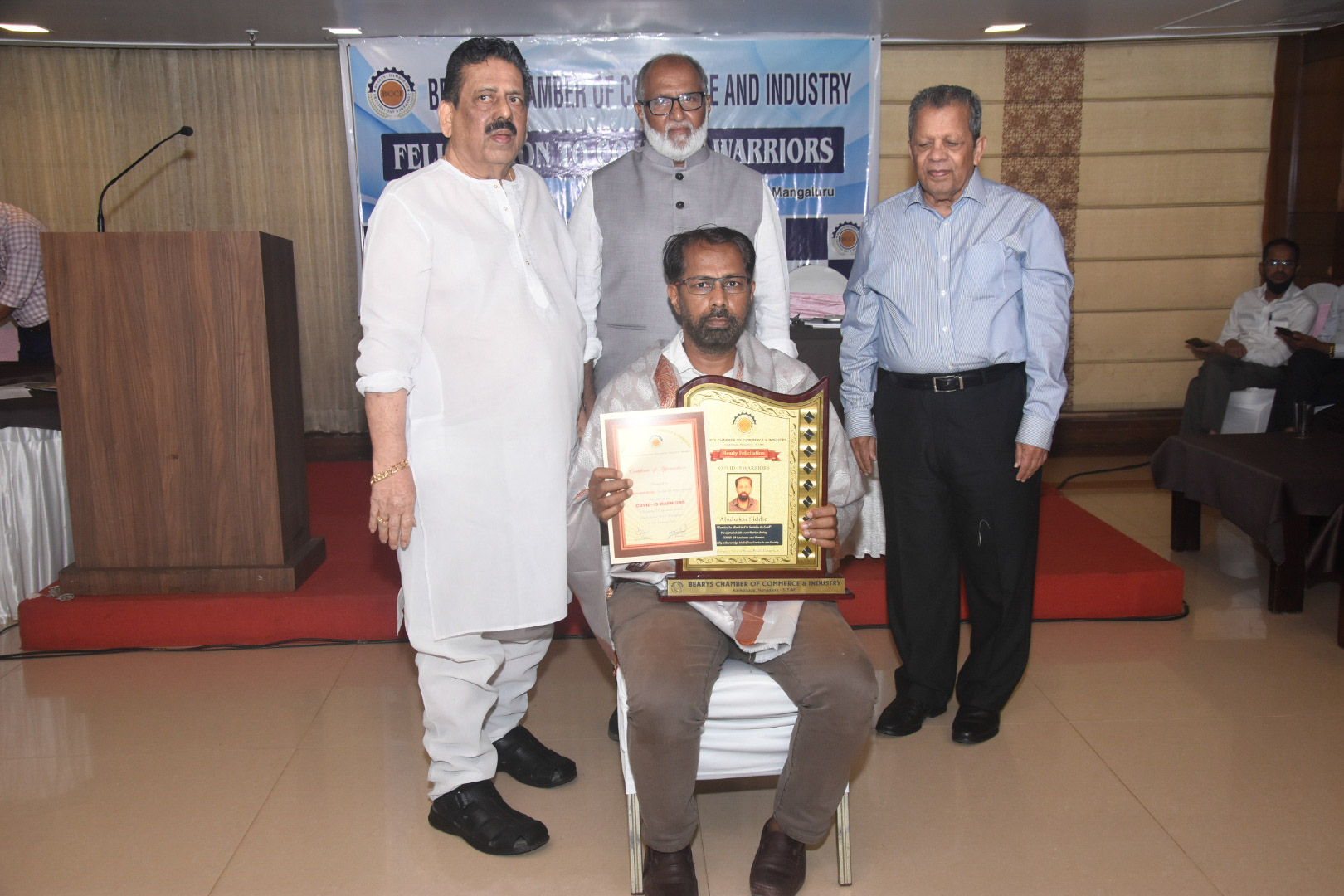 ಮಂಗಳೂರು : ಬ್ಯಾರೀಸ್ ಛೇಂಬರ್ ಆಫ್ ಕಾಮರ್ಸ್ ಆ್ಯಂಡ್ ಇಂಡಸ್ಟ್ರಿ (ಬಿಸಿಸಿಐ) ವತಿಯಿಂದ ಕೊರೋನ ಮತ್ತು ಲಾಕ್ಡೌನ್ ಸಂದರ್ಭ ಸೇವೆಗೈದ 11 ಮಂದಿ ಕೋವಿಡ್ ಸೇನಾನಿಗಳಿಗೆ ಸನ್ಮಾನಿಸುವ ಕಾರ್ಯಕ್ರಮವು ಬುಧವಾರ ನಗರದ ಖಾಸಗಿ ಹೊಟೇಲ್ನಲ್ಲಿ ಜರುಗಿತು.