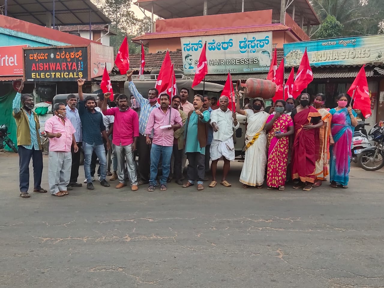 ಮಡಿಕೇರಿ, ಫೆ.7: ಡೀಸೆಲ್, ಪೆಟ್ರೋಲ್, ಅಡುಗೆ ಅನಿಲ ಸೇರಿದಂತೆ ಅಗತ್ಯ ವಸ್ತುಗಳ ಬೆಲೆ ಏರಿಕೆ ಖಂಡಿಸಿ ಸಿಪಿಐಎಂ ಪಕ್ಷ ನೆಲ್ಯಹುದಿಕೇರಿಯಲ್ಲಿ ವಿನೂತನ ರೀತಿಯಲ್ಲಿ ಪ್ರತಿಭಟನೆ ನಡೆಸಿತು.