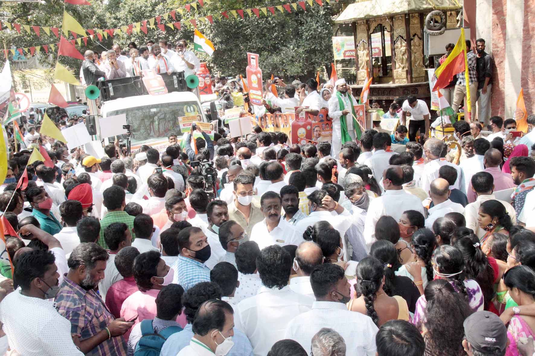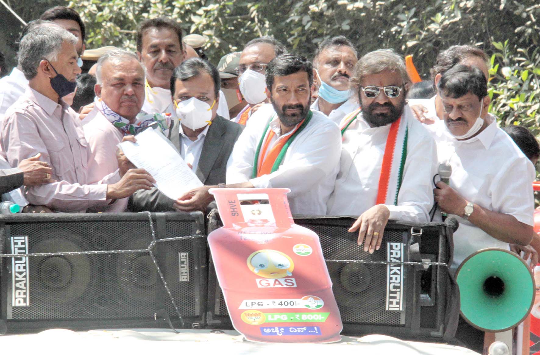ಕೆಪಿಸಿಸಿ ಕಾರ್ಯಾಧ್ಯಕ್ಷ ಸಲೀಂ ಅಹ್ಮದ್ ಮಾತನಾಡಿ, ಕೇಂದ್ರ ಸರಕಾರವು ಪೆಟ್ರೋಲ್, ಡೀಸೆಲ್ ಹಾಗೂ ಅಡುಗೆ ಅನಿಲ ಬೆಲೆ ಏರಿಕೆಯನ್ನು ಕಡಿಮೆ ಮಾಡದಿದ್ದರೆ ಜಿಲ್ಲಾ ಕೇಂದ್ರಗಳೂ ಸೇರಿದಂತೆ ರಾಜ್ಯದೆಲ್ಲೆಡೆ ತೀವ್ರ ಹೋರಾಟ ನಡೆಸಲಾಗುವುದು ಎಂದು ಎಚ್ಚರಿಸಿದರು.