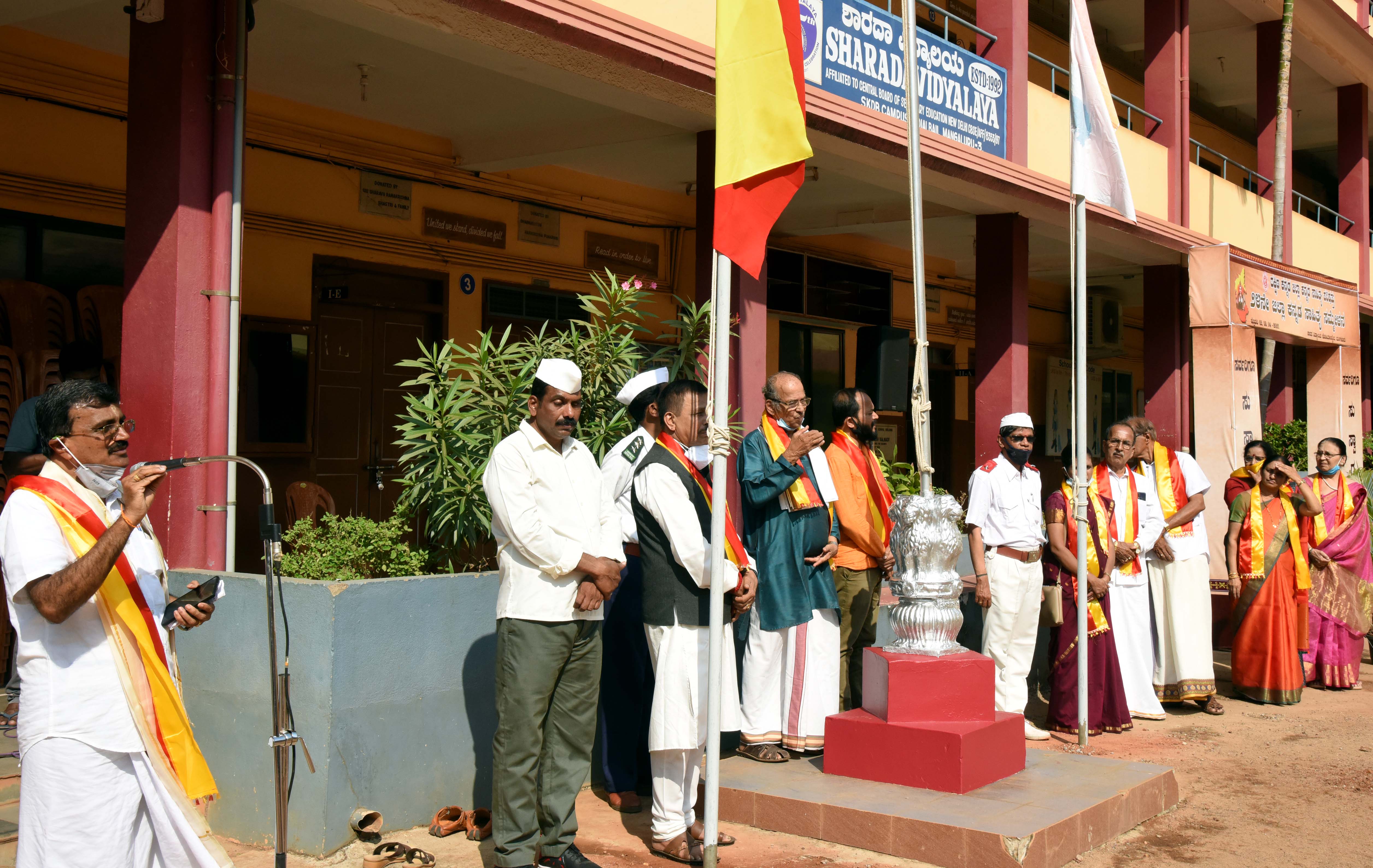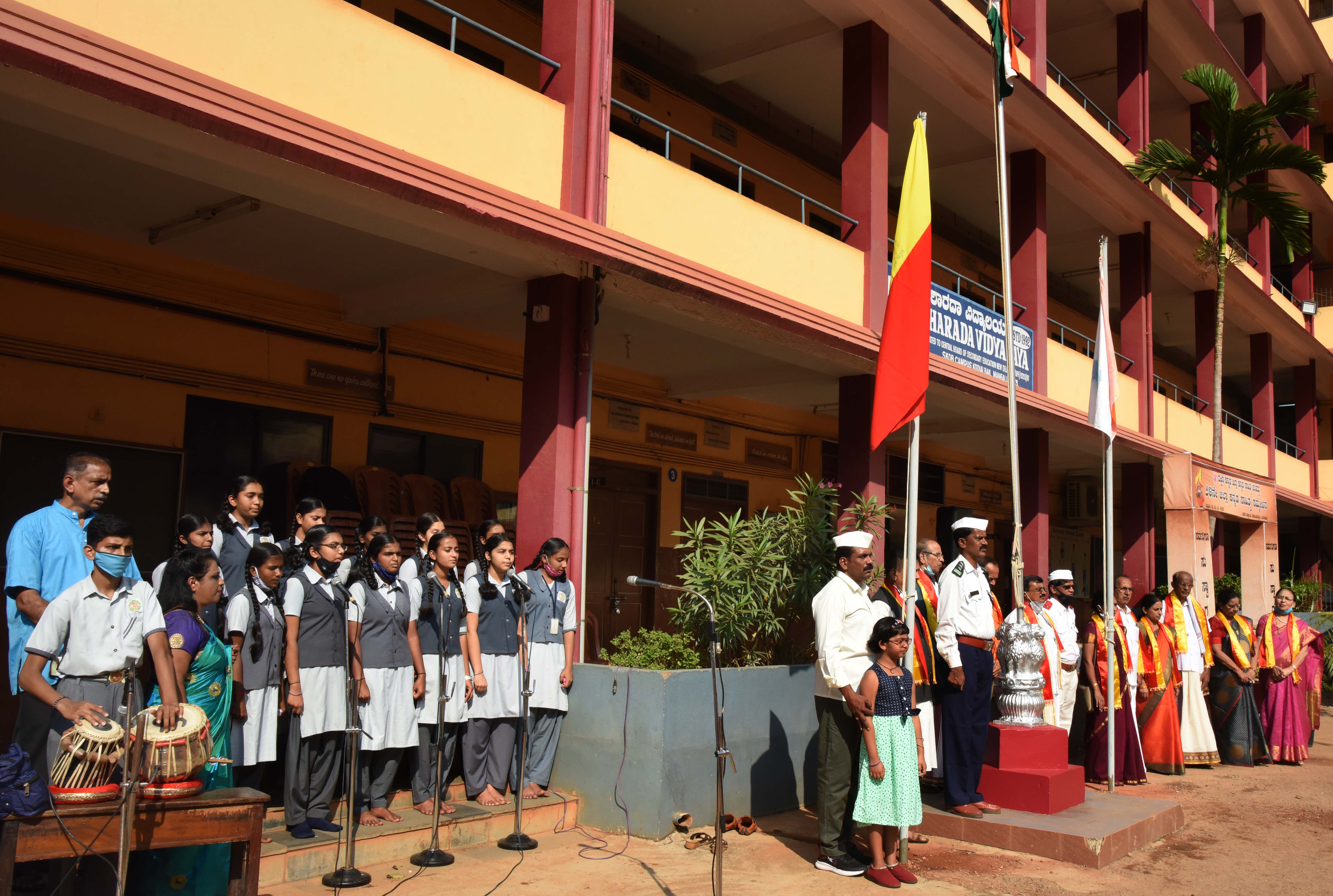 ಡೊಂಗರಕೇರಿ ಕೆನರಾ ಪ್ರೌಢಶಾಲೆಯ ವಿದ್ಯಾರ್ಥಿಗಳು ರಾಷ್ಟ್ರಗೀತೆ, ನಾಡಗೀತೆ ಮತ್ತು ರೈತ ಗೀತೆ ಹಾಡಿದರು.