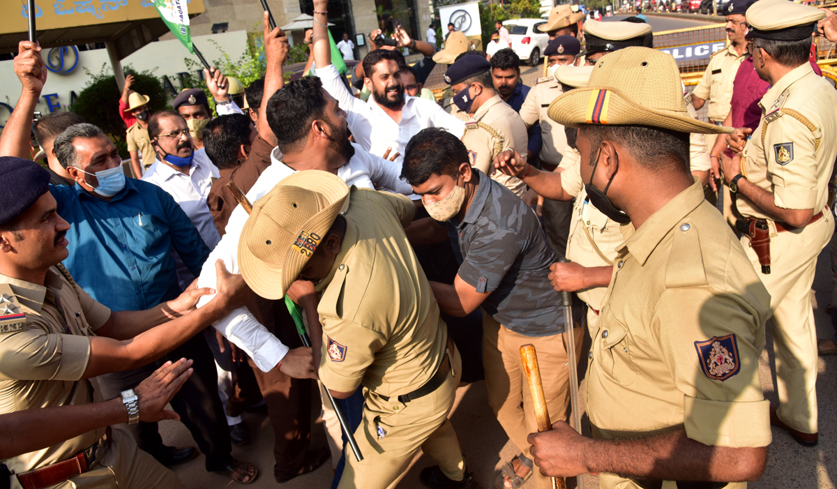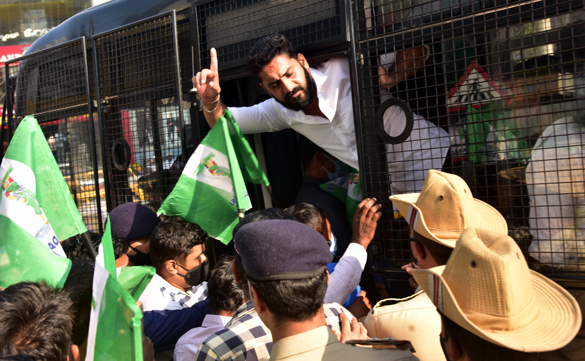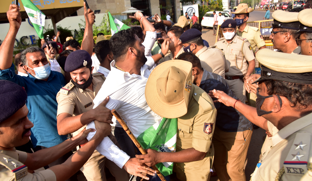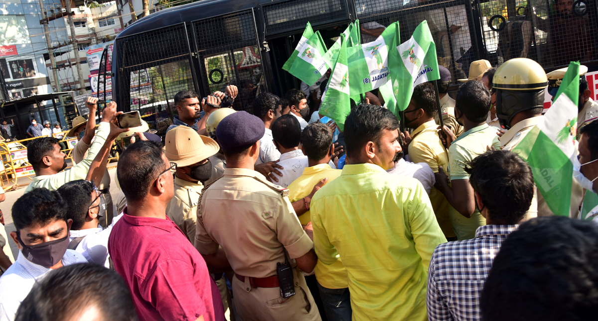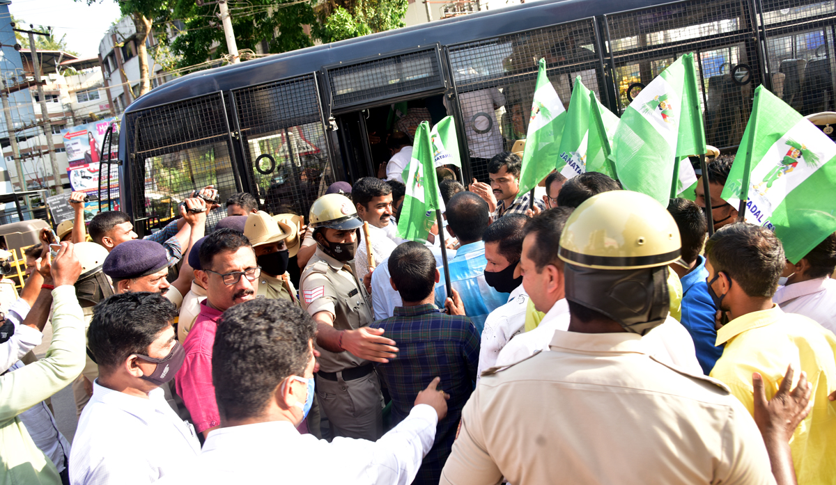 ಪ್ರತಿಭಟನಾಕಾರರು ಮುಂದೆ ಸಾಗದಂತೆ ಪೊಲೀಸರು ರಸ್ತೆಗೆ ಅಡ್ಡವಾಗಿ ನಿಂತಿದ್ದರು. ಆದಾಗ್ಯೂ, ಪೊಲೀಸರನ್ನು ದಾಟಿಕೊಂಡು ಹೋಗಲು ಮುಂದಾದರು. ಬಿಜೆಪಿ ಕಚೇರಿಯತ್ತ ಮುನ್ನುಗ್ಗಲು ಯತ್ನಿಸಿದ ಜೆಡಿಎಸ್ನ ಜಿಲ್ಲಾ ಮುಖಂಡರಾದ ಅಕ್ಷಿತ್ ಸುವರ್ಣ, ರತೀಶ್ ಕರ್ಕೆರ, ಹಿತೇಶ್ ರೈ, ಡಿ.ಬಿ. ಹಮ್ಮಬ್ಬ, ಪುಷ್ಪರಾಜ್, ಸತ್ತಾರ್ ಬಂದರ್, ಲಿಖಿತ್ ರಾಜ್ ಸಹಿತ ಸುಮಾರು 20ಕ್ಕೂ ಅಧಿಕ ಕಾರ್ಯಕರ್ತರನ್ನು ಕರ್ನಾಟಕ ಪೊಲೀಸ್ ಕಾಯ್ದೆ 71ರ ಪ್ರಕಾರ ಪೊಲೀಸರು ವಶಕ್ಕೆ ಪಡೆದು, ನಂತರ ಬಿಡುಗಡೆಗೊಳಿಸಿದರು.