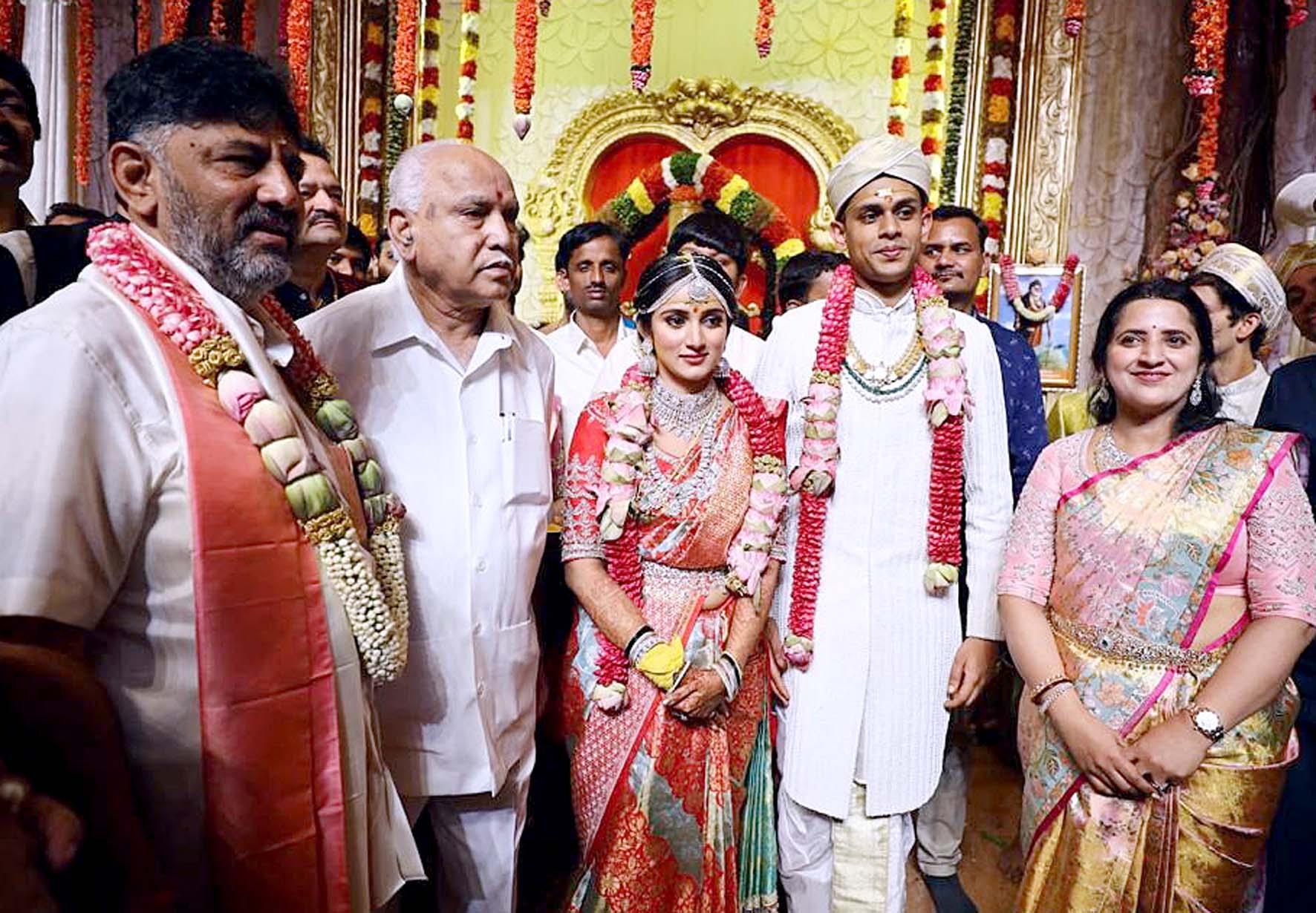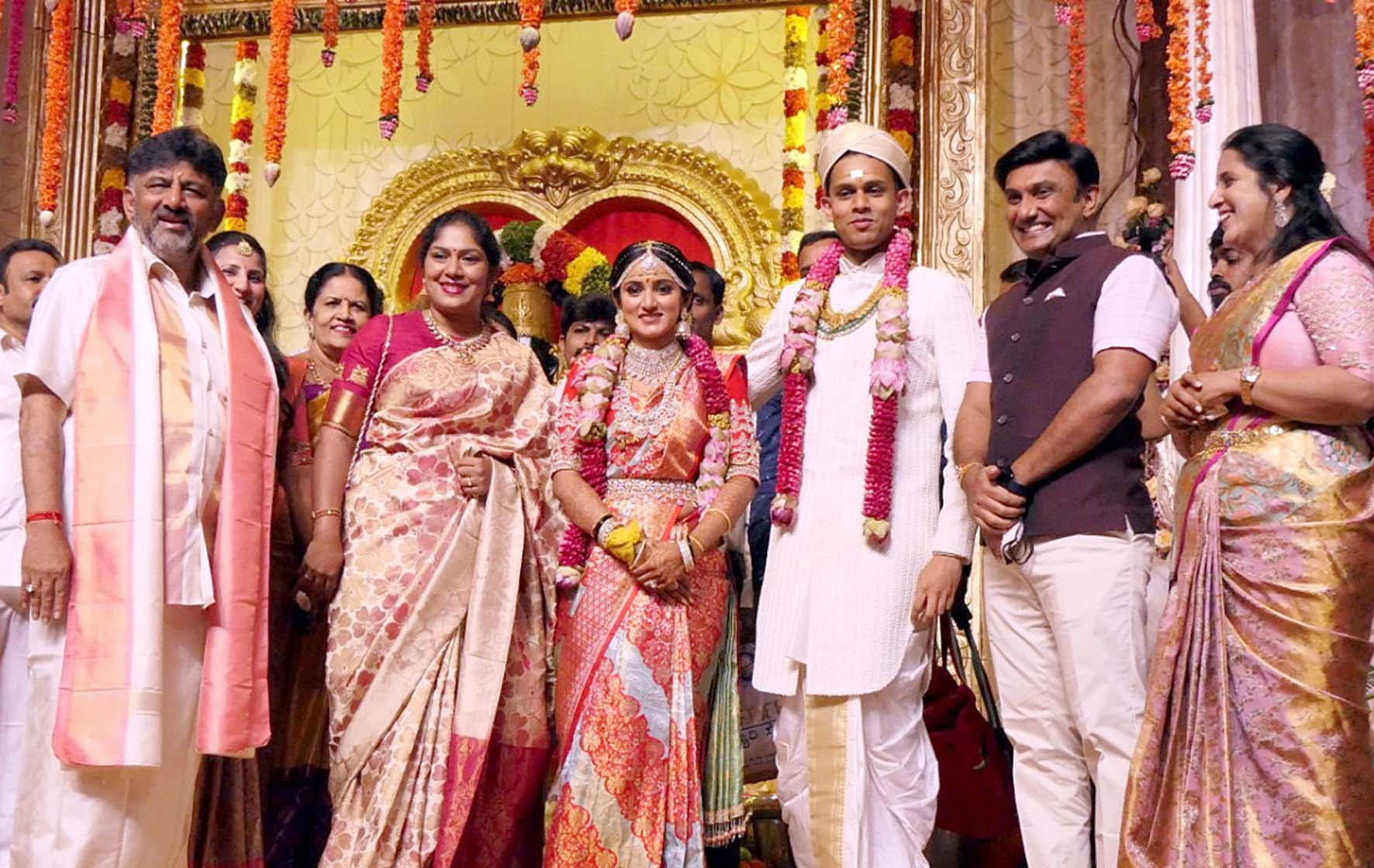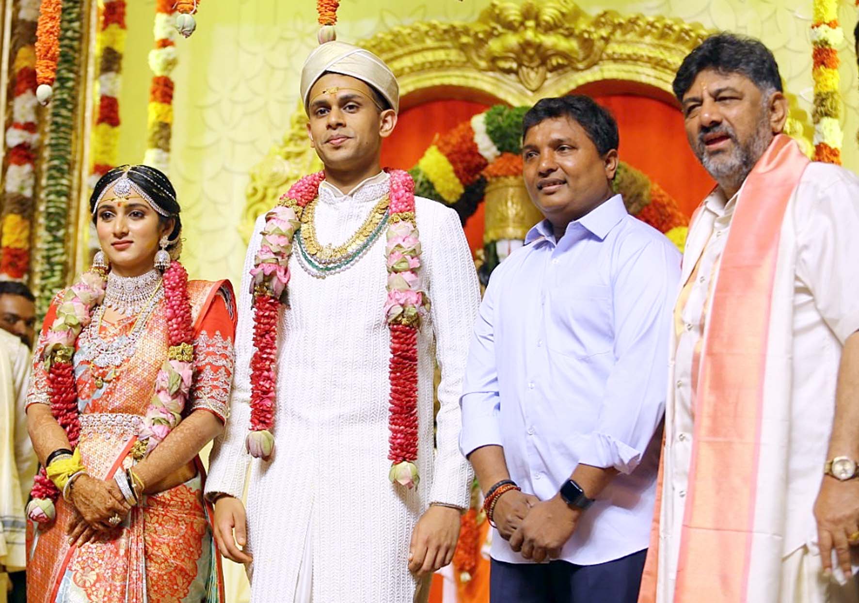 ನವ ಜೋಡಿಗೆ ವಿವಿಧ ಮಠಗಳ ಮಠಾಧೀಶರು, ಕೇಂದ್ರದ ಮಾಜಿ ಸಚಿವ ಎಸ್.ಎಂ.ಕೃಷ್ಣ, ಮುಖ್ಯಮಂತ್ರಿ ಬಿ.ಎಸ್.ಯಡಿಯೂರಪ್ಪ, ವಿರೋಧ ಪಕ್ಷದ ನಾಯಕ ಸಿದ್ದರಾಮಯ್ಯ, ಮಾಜಿ ಸಿಎಂ ಎಚ್.ಡಿ.ಕುಮಾರಸ್ವಾಮಿ ದಂಪತಿ, ರಾಜ್ಯಸಭೆಯ ವಿರೋಧ ಪಕ್ಷದ ನಾಯಕ ಮಲ್ಲಿಕಾರ್ಜುನ ಖರ್ಗೆ, ಮಧ್ಯಪ್ರದೇಶದ ಮಾಜಿ ಸಿಎಂ ದಿಗ್ವಿಜಯ್ ಸಿಂಗ್, ನಟರಾದ ಪುನೀತ್ ರಾಜ್ಕುಮಾರ್ ದಂಪತಿ, ರಿತೇಶ್ ದೇಶ್ಮುಖ್ ದಂಪತಿ, ಮಾಜಿ ಡಿಸಿಎಂ ಡಾ.ಜಿ.ಪರಮೇಶ್ವರ್ ದಂಪತಿ, ಮಾಜಿ ಸ್ಪೀಕರ್ ಕೆ.ಆರ್.ರಮೇಶ್ ಕುಮಾರ್, ಸಚಿವರು, ಮಾಜಿ ಸಚಿವರು, ಶಾಸಕರು ಶುಭ ಕೋರಿದರು.