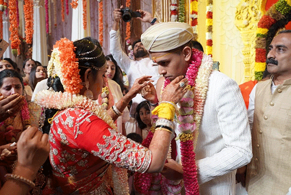 ಬೆಂಗಳೂರು, ಫೆ.14: ಕೆಪಿಸಿಸಿ ಅಧ್ಯಕ್ಷ ಡಿ.ಕೆ.ಶಿವಕುಮಾರ್ ಪುತ್ರಿ ಐಶ್ವರ್ಯಾ ಹಾಗೂ ಕೆಫೆ ಕಾಫಿ ಡೇ ಸಂಸ್ಥಾಪಕ ದಿವಂಗತ ಸಿದ್ಧಾರ್ಥ ಹೆಗ್ಡೆ ಅವರ ಪುತ್ರ ಅಮಥ್ರ್ಯ ಹೆಗ್ಡೆ ಅವರ ವಿವಾಹ ಸಮಾರಂಭವು ನಗರದ ವೈಟ್ಫೀಲ್ಡ್ನಲ್ಲಿರುವ ಐಷಾರಾಮಿ ಖಾಸಗಿ ಹೊಟೇಲ್ನಲ್ಲಿ ಶಾಸ್ತ್ರೋಕ್ತವಾಗಿ ರವಿವಾರ ನೆರವೇರಿತು.