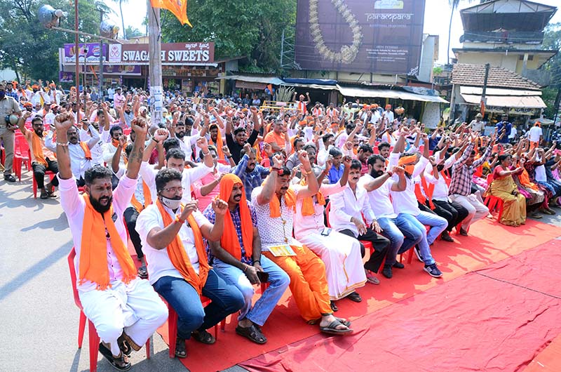 ಮಂಗಳೂರಿನಲ್ಲಿ ಉಗ್ರರ ಪರ ಗೋಡೆಬರಹ ಮೂಲಕ ಇಲ್ಲೂ ಭಯೋತ್ಪಾದಕರ ಬೆಂಬಲಿಗರಿದ್ದಾರೆ ಎಂಬ ಸಂದೇಶ ರವಾನಿಸಿದ್ದಾರೆ. ಧಾರ್ಮಿಕ ಕ್ಷೇತ್ರಗಳ ಕಾಣಿಕೆ ಹುಂಡಿ ಅಪವಿತ್ರಗೊಳಿಸುತ್ತಿದ್ದಾರೆ. ಹಿಂದೂ ಯುವಕರ ಮೇಲೆ ಪೆಟ್ರೋಲ್ ಸುರಿದು ಕೊಲೆ ಯತ್ನ, ಚೂರಿ ಇರಿತ, ಉಳ್ಳಾಲ ಪರಿಸರದಲ್ಲಿ ಶ್ರದ್ಧಾಕೇಂದ್ರ, ಭಗವಾಧ್ವಜದ ಮೇಲೆ ಮಲಮೂತ್ರ ವಿಸರ್ಜನೆ, ಲವ್ಜಿಹಾದ್, ಅತ್ಯಾಚಾರ, ನಿರಂತರ ಗೋಹತ್ಯೆ ಮೂಲಕ ಆಕ್ರಮಣ ಎಸಗುತ್ತಿದ್ದು, ಇದರ ವಿರುದ್ಧ ಸೂಕ್ತ ಪ್ರತಿಕ್ರಿಯೆ ನೀಡಲು ಸನ್ನದ್ಧರಾಗಿದ್ದೇವೆ ಎಂದರು.