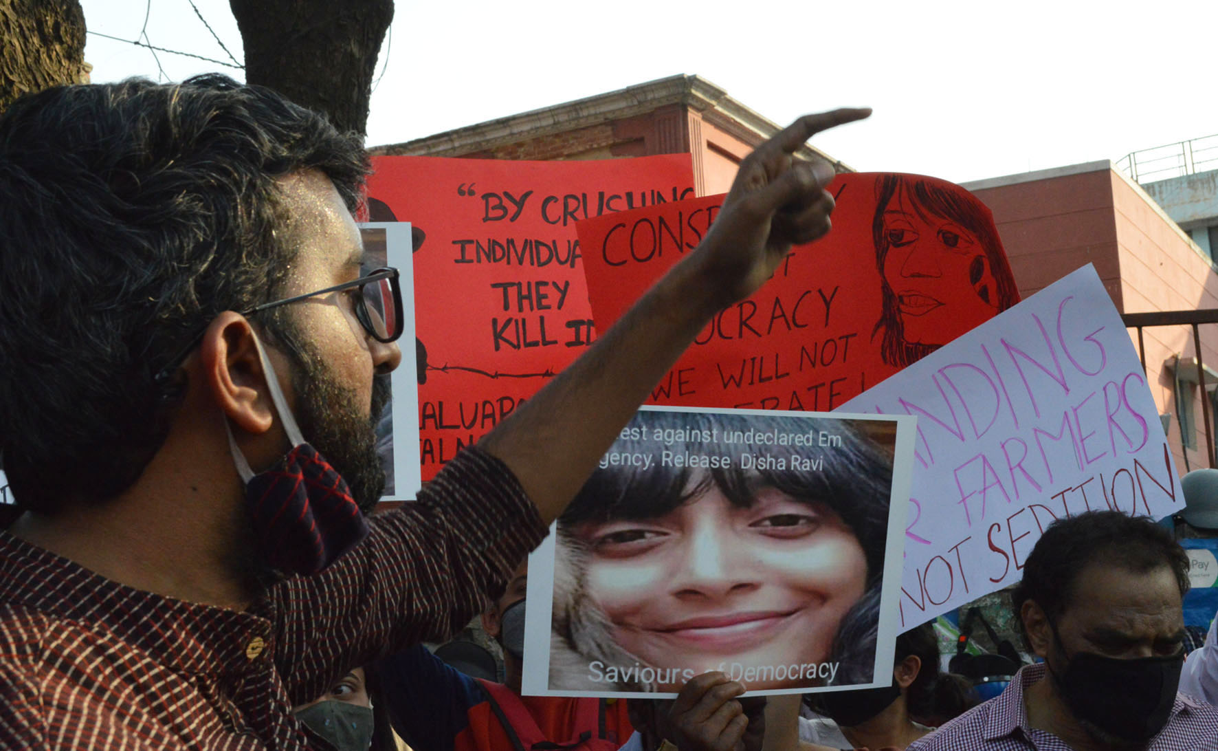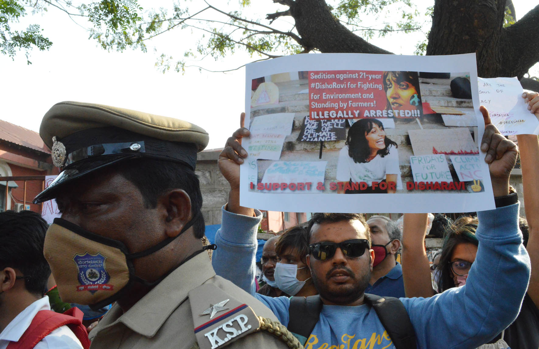 ಸೋಮವಾರ ಇಲ್ಲಿನ ಮೈಸೂರು ಬ್ಯಾಂಕ್ ವೃತ್ತದಲ್ಲಿ ಜಮಾಯಿಸಿದ ಹೋರಾಟಗಾರರು, ಚಿಂತಕರು, ರೈತ ಮುಖಂಡರು, ಸಮಾನ ಮಾನಸ್ಕರು, ದಿಶಾ ರವಿಯಂತಹ ಯುವತಿಯರು ದೇಶದ ಭವಿಷ್ಯದ ಪೀಳಿಗೆಗಳ ಬಗ್ಗೆಯೂ ಕಾಳಜಿ ಹೊಂದಿದ್ದಾರೆ. ಅವರನ್ನು ಗುರಿಯಾಗಿಸಿಕೊಂಡು ಬಂಧಿಸಿರುವುದು ಸರಿಯಲ್ಲ ಎಂದು ಆಕ್ರೋಶ ಹೊರಹಾಕಿದರು.