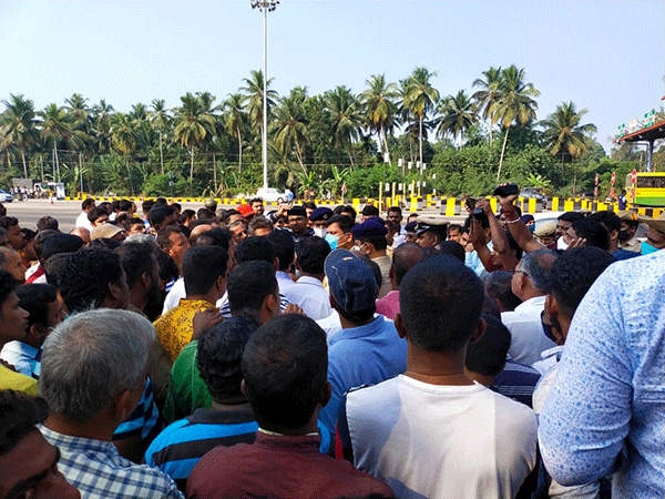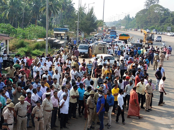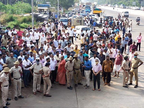 ಸ್ಥಳೀಯರು ಟೋಲ್ ಗೇಟಿನ ಮುಂಭಾಗದಲ್ಲಿ ತಮ್ಮ ವಾಹನಗಳನ್ನು ರಸ್ತೆಗೆ ಅಡ್ಡವಿಟ್ಟು ಧರಣಿ ಕುಳಿತು ನವಯುಗ್ ಕಂಪನಿ ವಿರುದ್ಧ ಘೋಷಣೆಗಳನ್ನು ಕೂಗಿದರು.