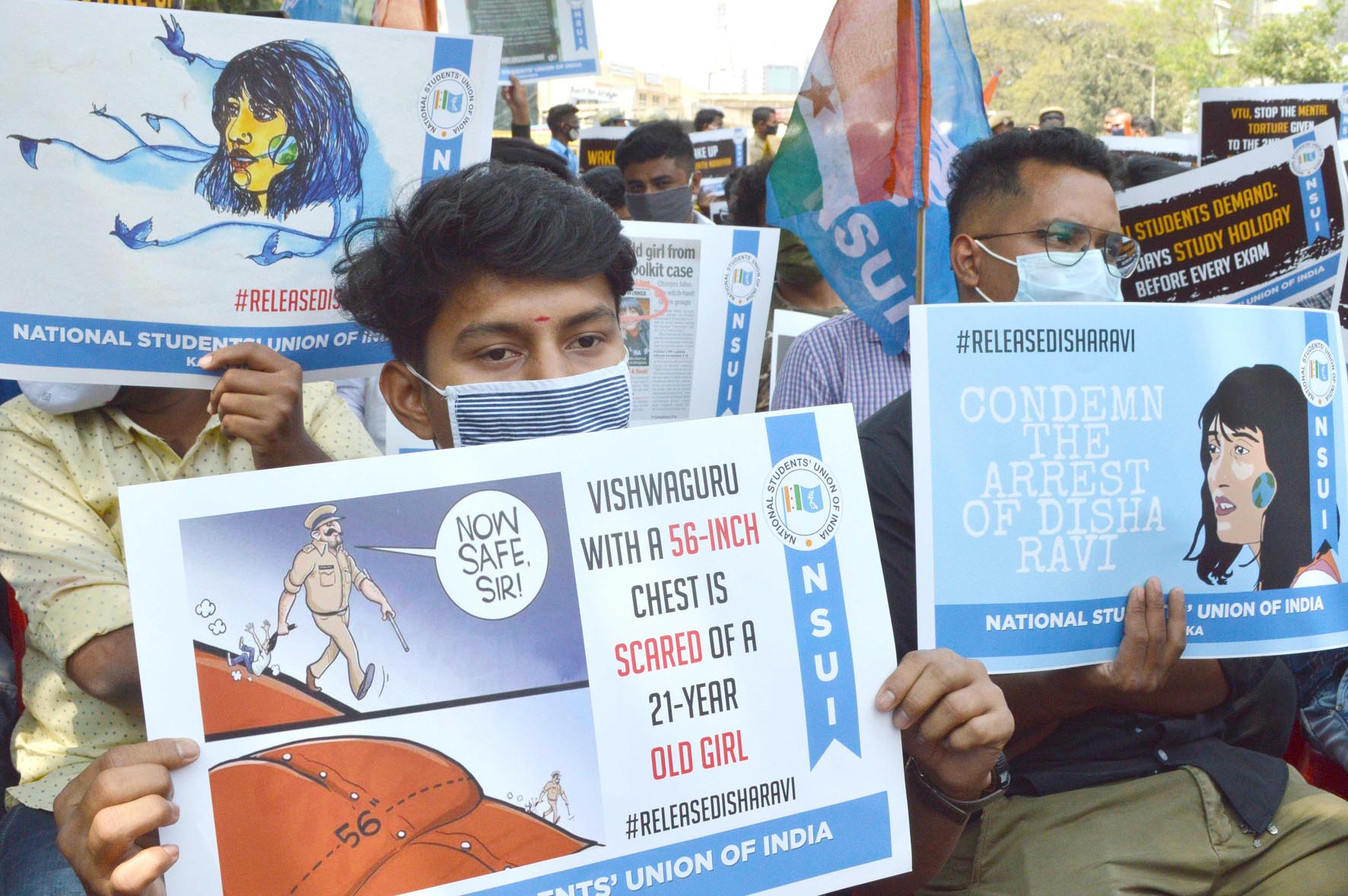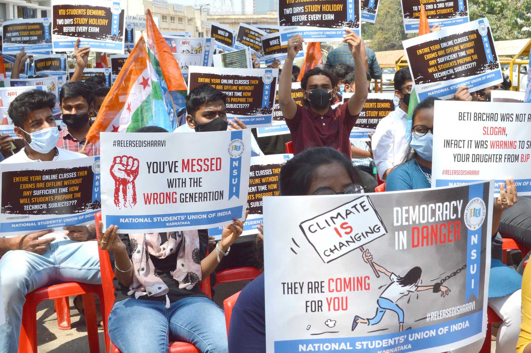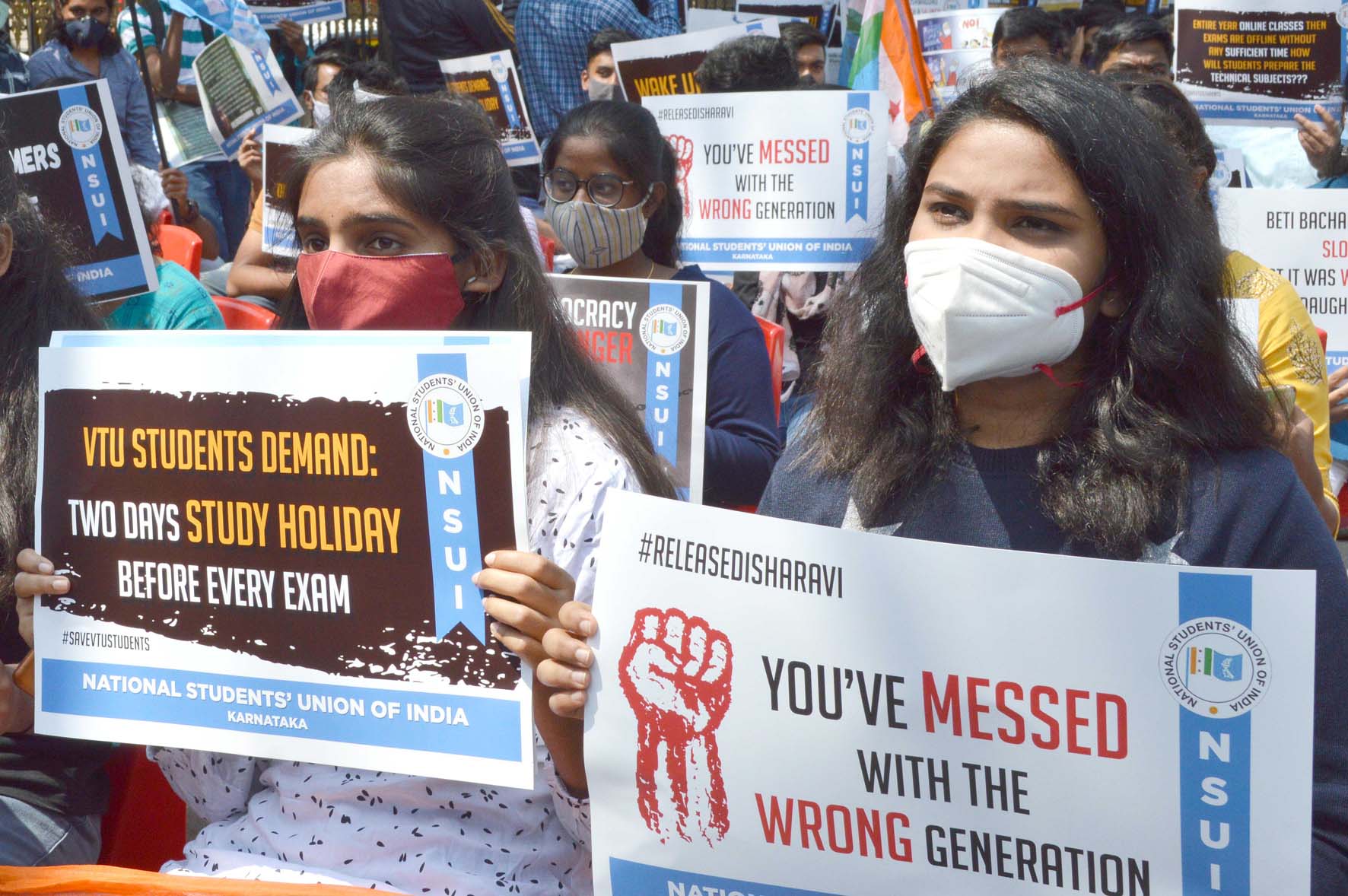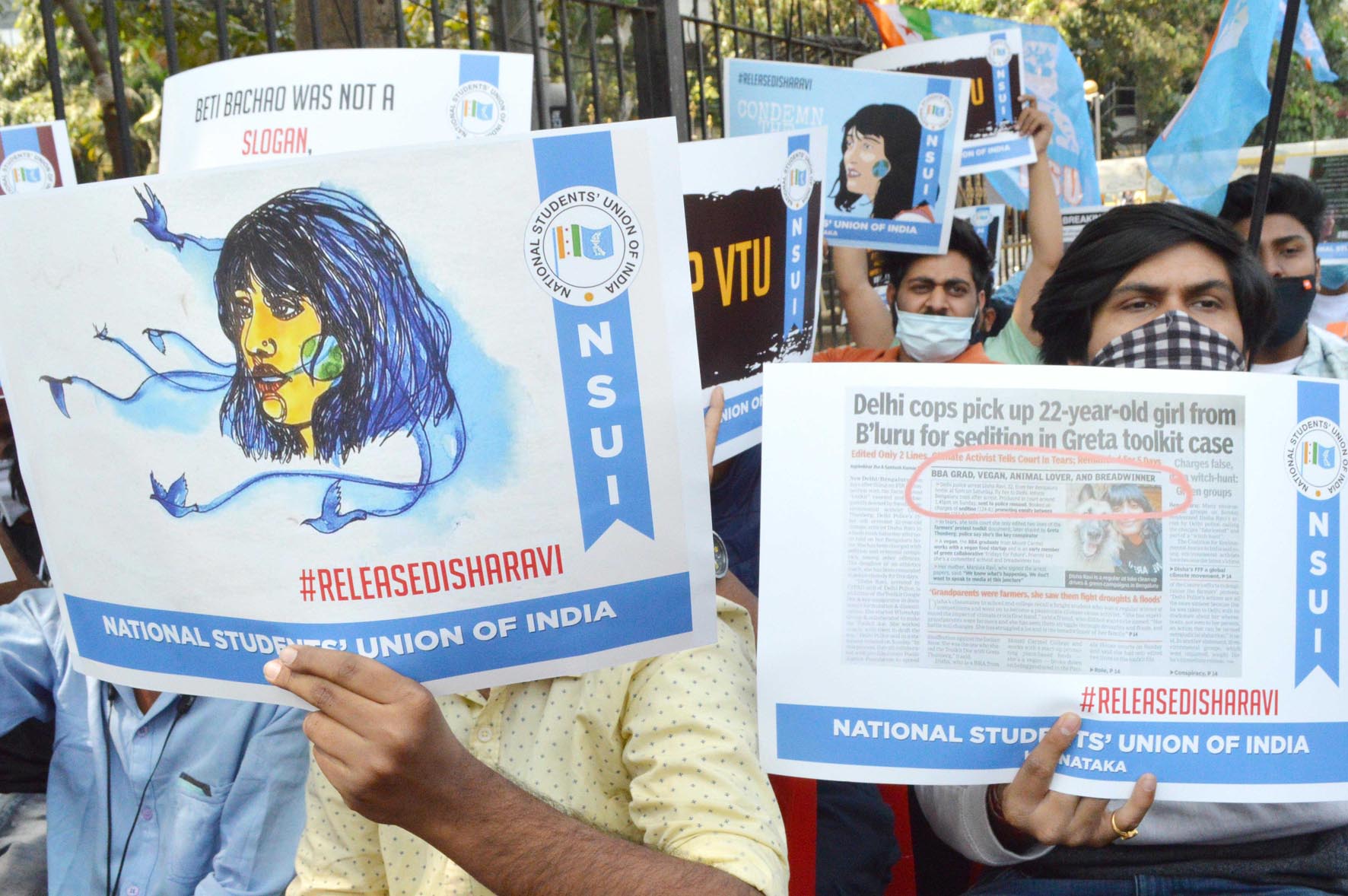 ಟೂಲ್ ಕಿಟ್ ಪ್ರಕರಣ: ದಿಶಾ ರವಿ ಬಿಡುಗಡೆಗೆ ಆಗ್ರಹಿಸಿ ವಿದ್ಯಾರ್ಥಿಗಳ ಧರಣಿ
