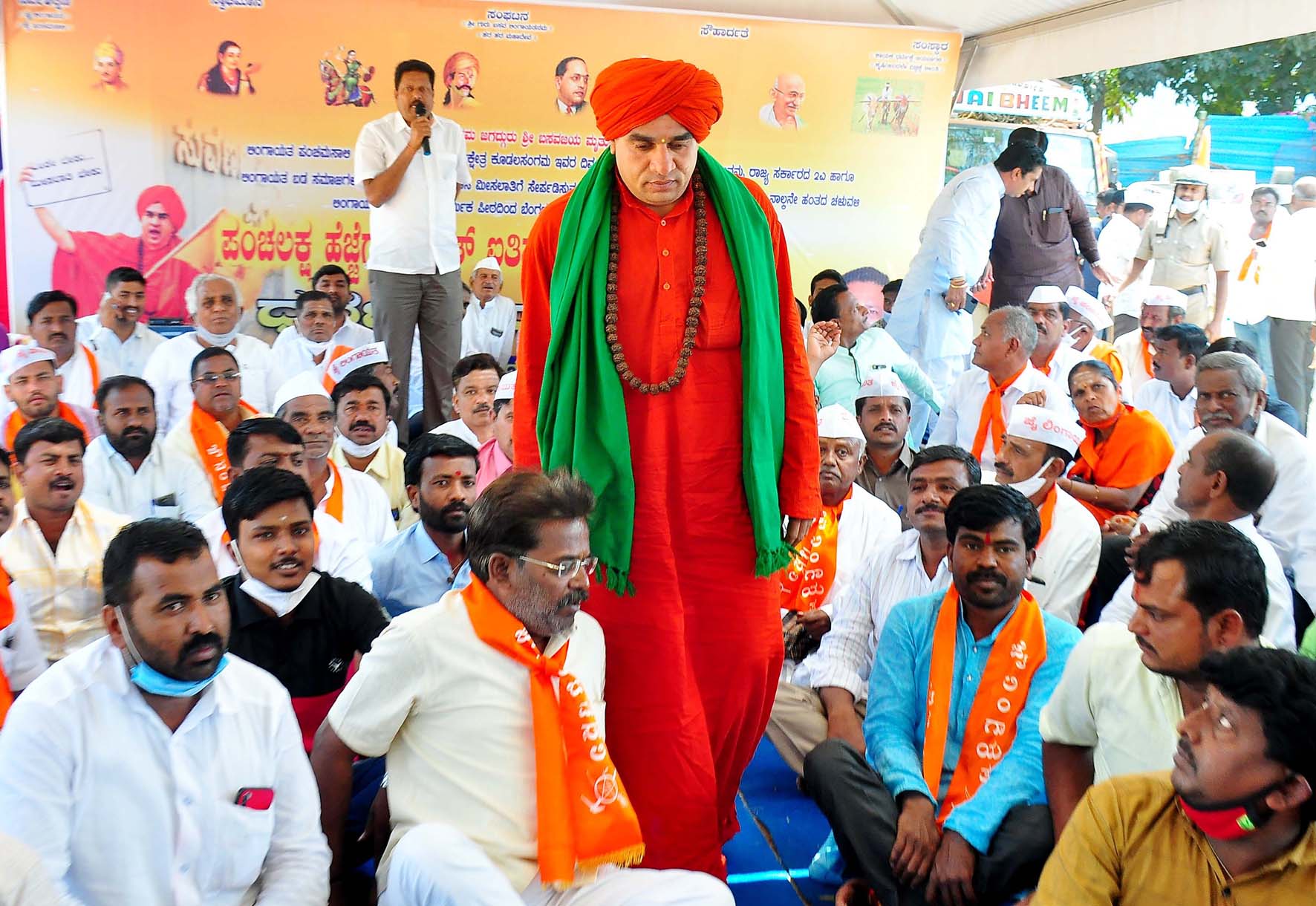 ಬೆಂಗಳೂರು, ಫೆ.23: ಲಿಂಗಾಯತ ಪಂಚಮಸಾಲಿ ಸಮುದಾಯಕ್ಕೆ ಹಿಂದುಳಿದ ವರ್ಗಗಳ ಪ್ರವರ್ಗ `2ಎ' ಅಡಿಯಲ್ಲಿ ಮೀಸಲಾತಿ ಕಲ್ಪಿಸಬೇಕೆಂದು ಆಗ್ರಹಿಸಿ ಕೂಡಲಸಂಗಮ ಪಂಚಮಸಾಲಿ ಪೀಠದ ಜಯಮೃತ್ಯುಂಜಯ ಶ್ರೀಗಳ ನೇತೃತ್ವದಲ್ಲಿ ಫ್ರೀಡಂ ಪಾರ್ಕ್ ನಲ್ಲಿ ನಡೆಯುತ್ತಿರುವ ಧರಣಿ 2ನೆ ದಿನವಾದ ಮಂಗಳವಾರ ಕೂಡ ಮುಂದುವರಿದಿದೆ.