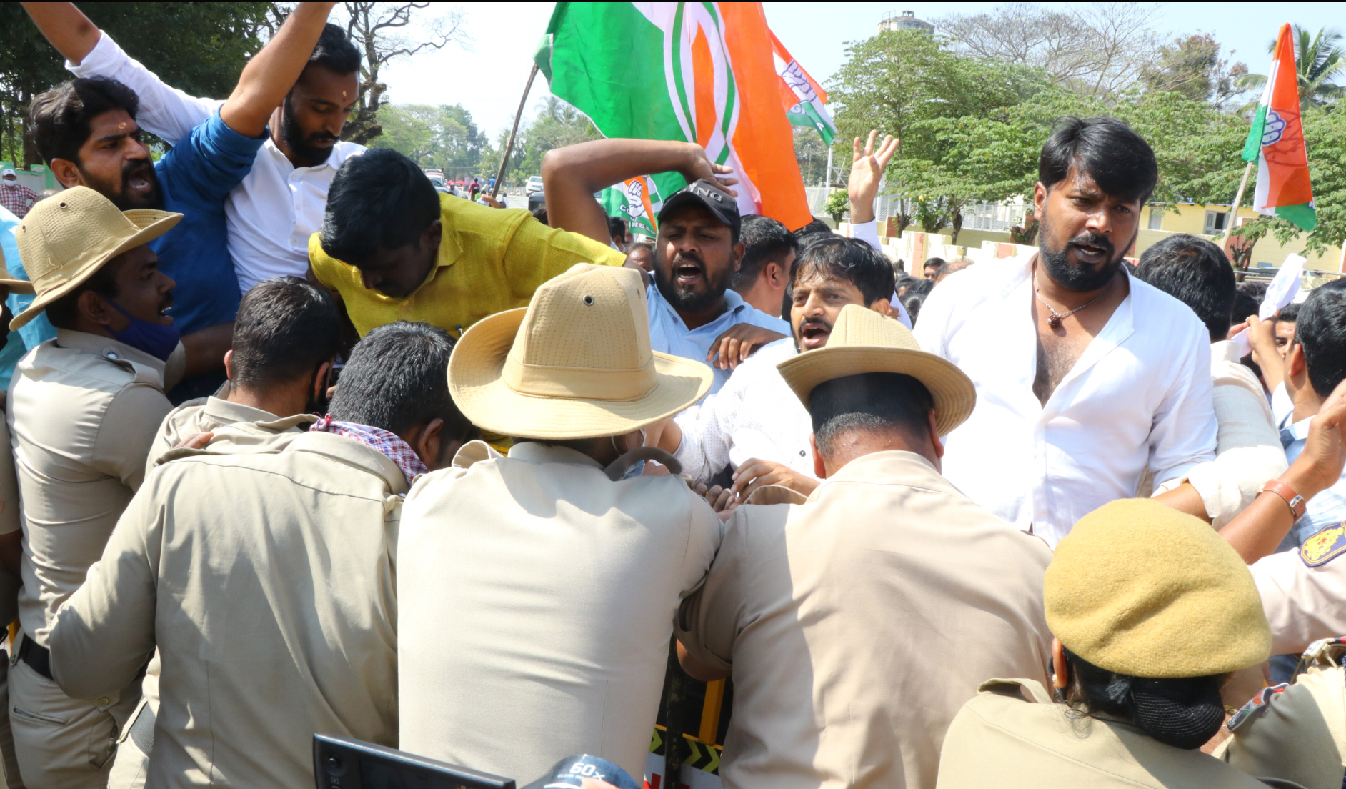 ಪ್ರತಿಭಟನೆಯಲ್ಲಿ ಕೇಂದ್ರ ಸರ್ಕಾರದ ವಿರುದ್ಧ ತೀವ್ರ ಆಕ್ರೋಶ ವ್ಯಕ್ತಪಡಿಸಿದ ಪ್ರತಿಭಟನಾಕಾರರು ರೈಲ್ವೆ ನಿಲ್ದಾಣದ ಮುಂಭಾಗದಲ್ಲಿದ್ದ ಬ್ಯಾರಿಕೇಡ್ಗಳನ್ನು ಮುರಿದು ಒಳಹೋಗಲು ಯತ್ನಿಸಿದಾಗ ಪೊಲೀಸರು ಅವರನ್ನು ತಡೆದರು.