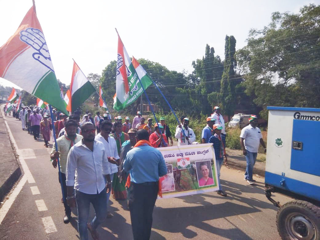 ಮೂರನೇ ದಿನದ ಪಾದಯಾತ್ರೆ ಬ್ರಹ್ಮಾವರದಲ್ಲಿ ಕೊನೆಗೊಂಡಿದ್ದು, ಇಂದು ಬೆಳಗ್ಗೆ ಬ್ರಹ್ಮಾವರದಿಂದ ಕೋಟದವರೆಗೆ ಯಾತ್ರೆ ಸಾಗಿತು. ನಾಲ್ಕನೇ ದಿನದ ಪಾದಯಾತ್ರೆಯನ್ನು ಉದ್ದೇಶಿಸಿ ಮಾತನಾಡಿದ ಮಾಜಿ ಸಚಿವ ವಿನಯ ಕುಮಾರ್ ಸೊರಕೆ, ರಾಜ್ಯ ಹಾಗೂ ಕೇಂದ್ರ ಸರಕಾರದ ಜನವಿರೋಧಿ ನೀತಿಯನ್ನು ಖಂಡಿಸಿ ರಾಜ್ಯಾಧ್ಯಕ್ಷ ಡಿ.ಕೆ ಶಿವಕುಮಾರ್ ಹಾಗೂ ಮಾಜಿಮುಖ್ಯ ಮಂತ್ರಿ ಸಿದ್ಧರಾಮಯ್ಯ ನೇತೃತ್ವದಲ್ಲಿ ದೊಡ್ಡ ಮಟ್ಟದ ಪ್ರತಿಭಟನೆ ಈಗಾಗಲೇ ನಡೆದಿದೆ ಎಂದರು.