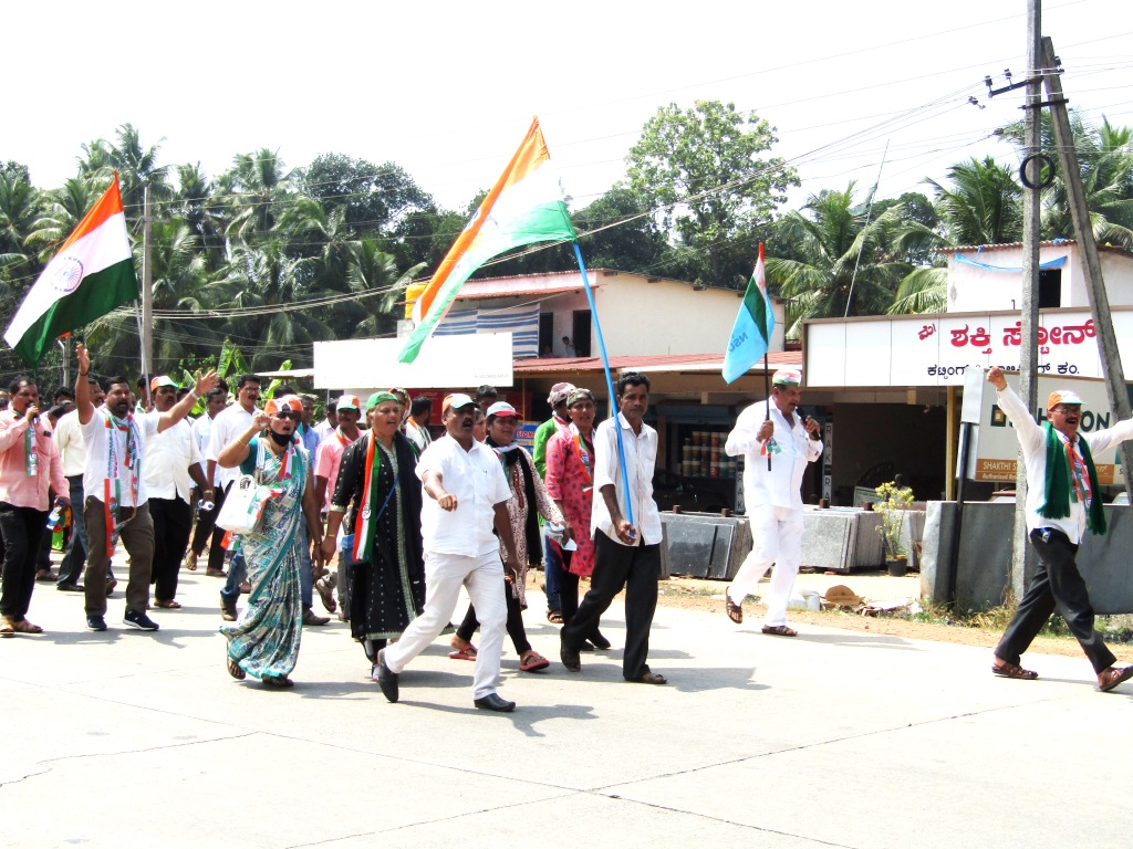 ಪಾದಯಾತ್ರೆ ಸಾಲಿಗ್ರಾಮ ಸಮೀಪಿಸುತ್ತಿದ್ದಂತೆ ಬ್ಲಾಕ್ ಕಾಂಗ್ರೆಸ್ ಅಧ್ಯಕ್ಷ ಎ.ಶಂಕರ್ ಕುಂದರ್ ಹಾರ ಹಾಕಿ ಸ್ವಾಗತಿಸಿದರು. ನಂತರ ಬ್ಲಾಕ್ ಕಛೇರಿ ಇಂದಿರಾದಲ್ಲಿ ಇಂದಿರಾಗಾಂಧಿ ಭಾವ ಚಿತ್ರಕ್ಕೆ ಪುಷ್ಭಾರ್ಚನೆಯನ್ನು ನಡೆಸಲಾಯಿತು.