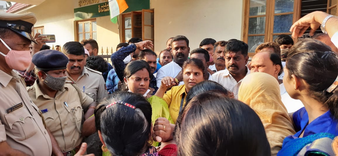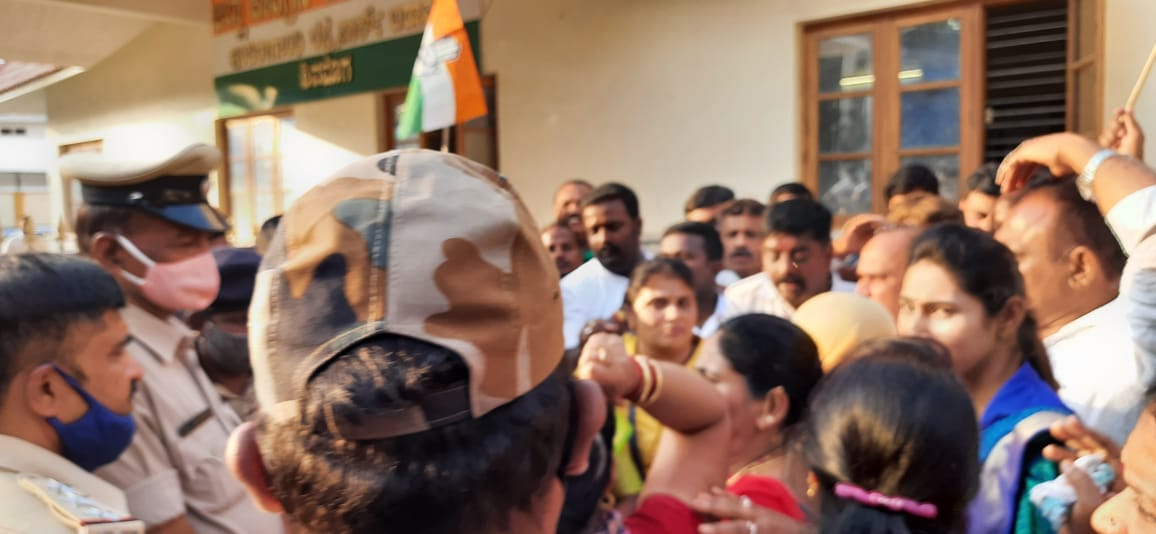 ಇದನ್ನರಿತ ಪೊಲೀಸರು ಕಾಂಗ್ರೆಸ್ ಕಚೇರಿ ಸುತ್ತುವರಿದು ಜಿಲ್ಲಾ ಕಾಂಗ್ರೆಸ್ ಅಧ್ಯಕ್ಷ ಹೆಚ್.ಎಸ್ ಸುಂದರೇಶ್ ಸೇರಿದಂತೆ ಕಾಂಗ್ರೆಸ್ ಕಾರ್ಯಕರ್ತರನ್ನು ಬಂಧಿಸಿ ಕರೆದೊಯ್ದರು.
