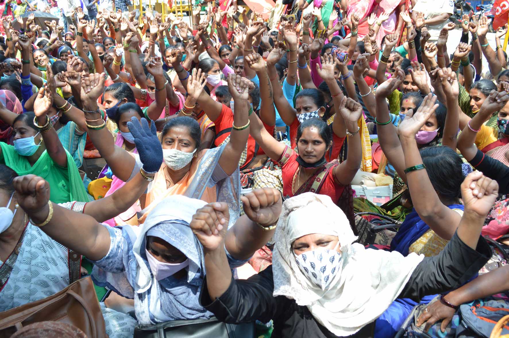 ಬೆಂಗಳೂರು: ವೇತನ ಹೆಚ್ಚಳಕ್ಕೆ ಆಗ್ರಹಿಸಿ ಅಂಗನವಾಡಿ ಕಾರ್ಯಕರ್ತೆಯರ ಧರಣಿ