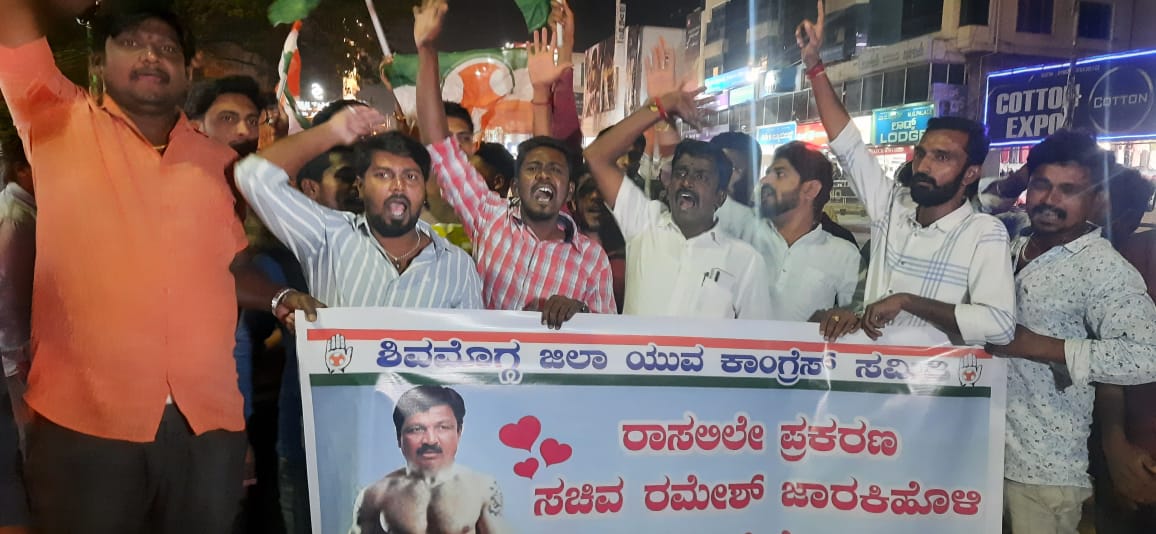ನಗರದ ಗೋಪಿ ವೃತ್ತದಲ್ಲಿ ಪ್ರತಿಭಟನೆ ನಡೆಸಿದ ಯುವ ಕಾಂಗ್ರೆಸ್ ಕಾರ್ಯಕರ್ತರು, ಮುಖ್ಯಮಂತ್ರಿಗಳು ರಮೇಶ್ ಜಾರಕಿಹೊಳಿ ರಾಜೀನಾಮೆ ಪಡೆಯಬೇಕು ಹಾಗೂ ಜಾರಕಿಹೊಳಿಯನ್ನು ರಾಜ್ಯದಿಂದ ಗಡಿಪಾರು ಮಾಡಬೇಕು ಎಂದು ಆಗ್ರಹಿಸಿದರು.