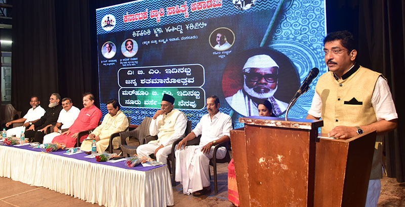 ಕರ್ನಾಟಕ ಬ್ಯಾರಿ ಸಾಹಿತ್ಯ ಅಕಾಡಮಿಯ ವತಿಯಿಂದ ನಗರದ ಪುರಭವನದ ಬಿಎಂ ಇದಿನಬ್ಬ ವೇದಿಕೆಯಲ್ಲಿ ಶುಕ್ರವಾರ ನಡೆದ ಮಾಜಿ ಶಾಸಕ, ಹಿರಿಯ ಕವಿ, ಸಾಹಿತಿ, ಸ್ವಾತಂತ್ರ್ಯ ಹೋರಾಟಗಾರ ದಿ. ಬಿ.ಎಂ. ಇದಿನಬ್ಬ ಜನ್ಮ ಶತಮಾನೋತ್ಸವ (ಮರ್ಹೂಂ ಬಿ.ಎಂ. ಇದಿನಬ್ಬ ನೂರು ವರ್ಸ ಒರು ನೆನಪು) ಕಾರ್ಯಕ್ರಮದಲ್ಲಿ ಬಿ.ಎಂ. ಇದಿನಬ್ಬ ಸ್ಮರಣಾರ್ಥ ಕಲೆ, ಸಂಸ್ಕೃತಿ, ನಾಡು, ನುಡಿಗಾಗಿ ಸೇವೆ ಸಲ್ಲಿಸುತ್ತಿರುವ ಆಳ್ವಾಸ್ ಸಮೂಹ ಶಿಕ್ಷಣ ಸಂಸ್ಥೆಯ ಅಧ್ಯಕ್ಷ ಡಾ. ಮೋಹನ್ ಆಳ್ವಾ ಅವರಿಗೆ ಗೌರವ ಪ್ರಶಸ್ತಿ ಪ್ರದಾನಗೈದು ಅವರು ಮಾತನಾಡಿದರು.
