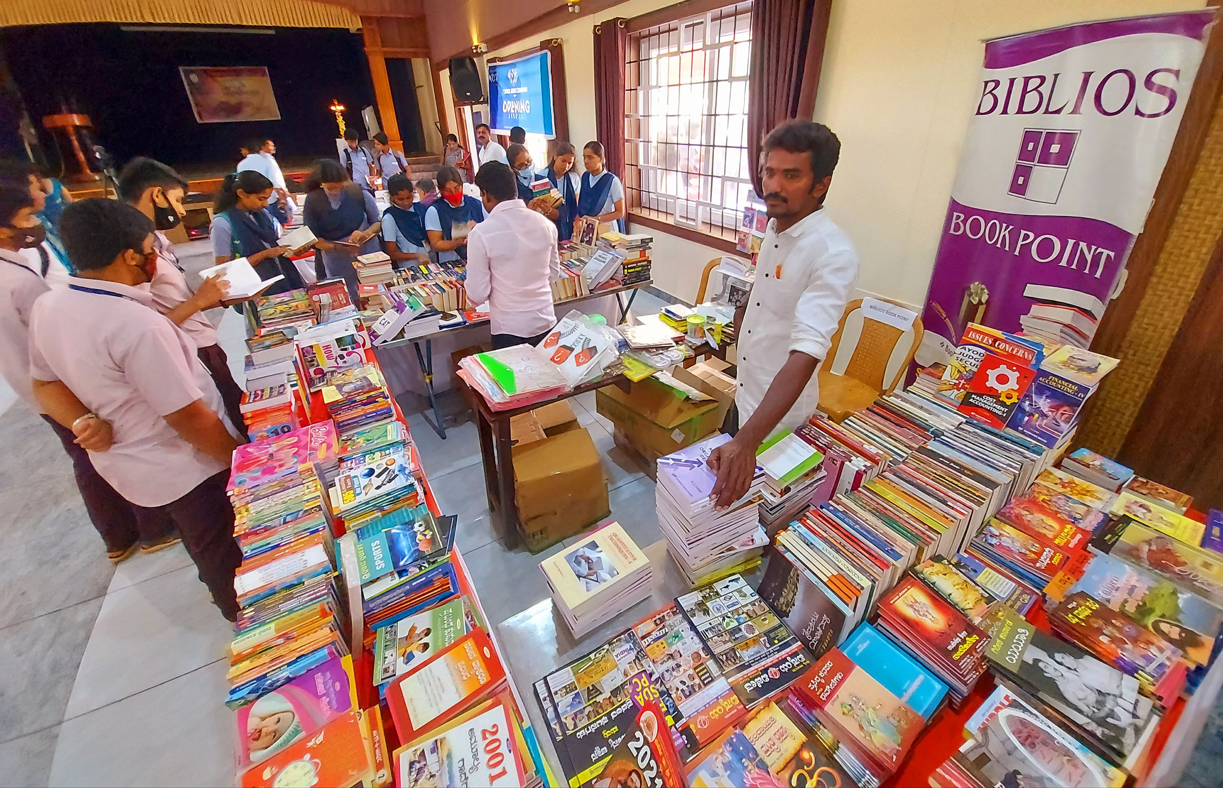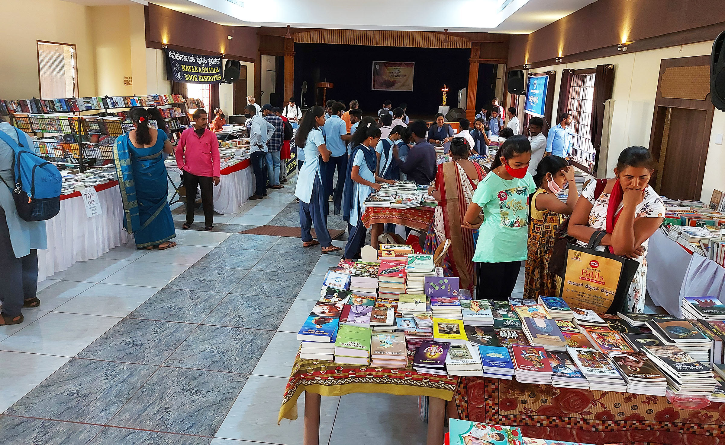 ನವಕರ್ನಾಟಕ, ಮಣಿಪಾಲ್ ಯೂನಿವರ್ಸಲ್ ಪ್ರೆಸ್, ಭಾರತ್ ಬುಕ್ ಮಾರ್ಕ್, ಬಿಬ್ಲಿಯೋಸ್, ಸ್ಕೂಲ್ ಬುಕ್ ಕಂಪೆನಿ ಸೇರಿದಂತೆ ಒಟ್ಟು 15 ಪುಸ್ತಕ ಮಳಿಗೆಗಳು ಪುಸ್ತಕೋತ್ಸವದಲ್ಲಿ ಇದ್ದವು. ಇದರೊಂದಿಗೆ ಕಾಲೇಜಿನ ಪ್ರಾಂಶು ಪಾಲರು, ಉಪನ್ಯಾಸಕರು ಬರೆದ ಪುಸ್ತಕಗಳ ಮಳಿಗೆ ಹಾಗೂ ಸ್ಥಳೀಯ ಲೇಖಕರ ಪುಸ್ತಕಗಳ ಮಳಿಗೆಯೂ ಇಲ್ಲಿ ಕಂಡುಬಂದವು. ಇಲ್ಲಿ ಶೇ.10ರಿಂದ 70ರವರೆಗೂ ರಿಯಾಯಿತಿ ದರದಲ್ಲಿ ಪುಸ್ತಕ ಮಾರಾಟ ಮಾಡಲಾಗುತ್ತಿದೆ.