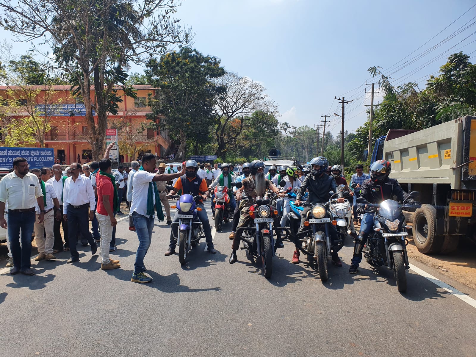 ಕೊಡಗು ಜಿಲ್ಲಾ ರೈತ ಸಂಘದ ಅಧ್ಯಕ್ಷ ಕಾಡ್ಯಮಾಡ ಮನು ಸೋಮಯ್ಯ ಅವರ ನೇತೃತ್ವದಲ್ಲಿ ಪೊನ್ನಂಪೇಟೆಯ ಸೈಂಟ್ ಆಂಟೋನಿ ಶಾಲೆಯ ಮುಂಭಾಗದಿಂದ ರೈತರ ವಾಹನ ಜಾಥಾ ಸಾಗಿತು. ಬೆಳೆಗಾರರ ಒಕ್ಕೂಟ, ಕೊಡಗು ಹಿತರಕ್ಷಣಾ ವೇದಿಕೆ, ಕೊಡವ ಮಕ್ಕಳ ಕೂಟ, ಕಾಂಗ್ರೆಸ್ ಪಕ್ಷ, ಯುಕೋ ಸೇರಿದಂತೆ ವಿವಿಧ ಸಂಘ, ಸಂಸ್ಥೆಗಳು ಪ್ರತಿಭಟನೆಗೆ ಬೆಂಬಲ ಸೂಚಿಸಿ ಜಾಥಾದಲ್ಲಿ ಪಾಲ್ಗೊಂಡವು.