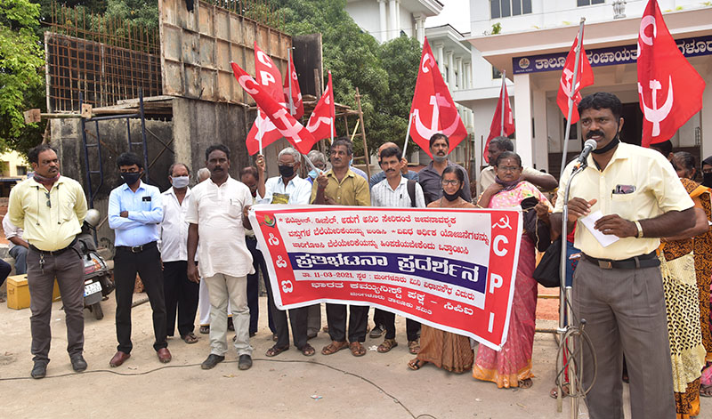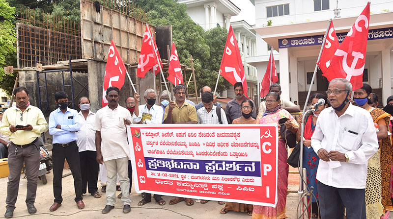 ಪ್ರತಿಭಟನೆಯಲ್ಲಿ ಮುಖಂಡರಾದ ಕರುಣಾಕರ್, ಸುರೇಶ್ ಕುಮಾರ್, ಪುಷ್ಪರಾಜ್, ಜಗತ್ಪಾಲ್, ಸುಲೋಚನ, ಮೀನಾಕ್ಷಿ, ಶ್ರೀನಿವಾಸ್, ಎಚ್.ವಿ. ರಾವ್ ಮೊದಲಾವದರು ಭಾಗವಹಿಸಿದ್ದರು.