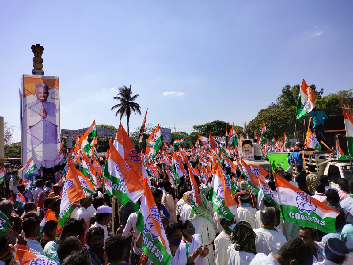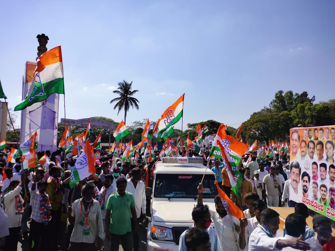 ನಗರದ ಖಾಸಗಿ ಬಸ್ ನಿಲ್ದಾಣದಲ್ಲಿ ಬೃಹತ್ ಪ್ರತಿಭಟನಾ ಮೆರವಣಿಗೆಗೆ ಮಾಜಿ ಮುಖ್ಯಮಂತ್ರಿ ಸಿದ್ದರಾಮಯ್ಯ ಚಾಲನೆ ನೀಡಿದರು. ಖಾಸಗಿ ಬಸ್ ನಿಲ್ದಾಣದಿಂದ ಹೊರಟ ಮೆರವಣಿಗೆ ಬಿ.ಹೆಚ್ ರಸ್ತೆ ಮುಖಾಂತರ ಅಮಿರ್ ಅಹಮ್ಮದ್ ವೃತ್ತ, ಶಿವಪ್ಪ ನಾಯಕ ಪ್ರತಿಮೆ ಮಾರ್ಗವಾಗಿ ಬಿ.ಹೆಚ್ ರಸ್ತೆಯಲ್ಲಿ ಸಾಗಿ ಮಿನಾಕ್ಷಿ ಭವನದ ಸೈನ್ಸ್ ಮೈದಾನದವರೆಗೆ ನಡೆಯಿತು.
