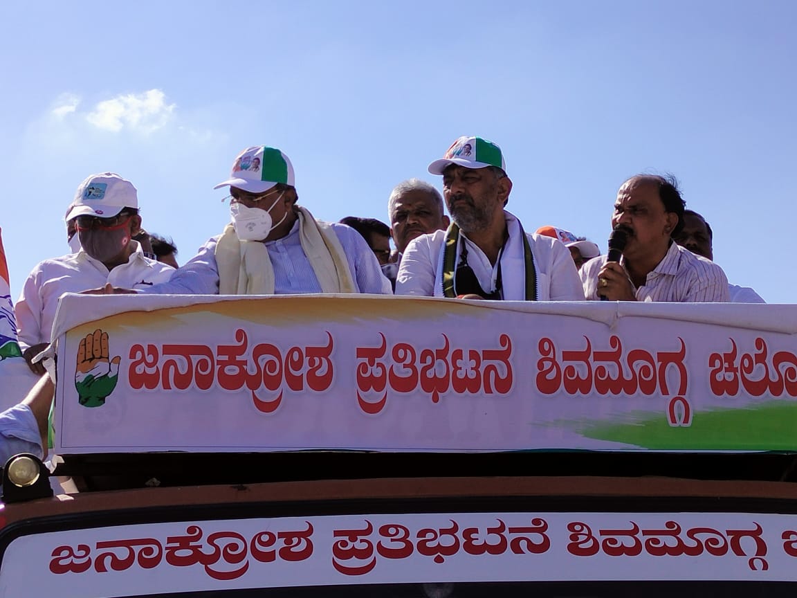 ನಂತರ ಸೈನ್ಸ್ ಮೈದಾನದಲ್ಲಿ ನಡೆದ ಜನದ್ವನಿ ಸಮಾವೇಶವನ್ನು ಕೆಪಿಸಿಸಿ ಅಧ್ಯಕ್ಷ ಡಿ.ಕೆ ಶಿವಕುಮಾರ್ ಡೊಳ್ಳು ಬಾರಿಸುವುದರ ಮೂಲಕ ಉದ್ಘಾಟಿಸಿದರು. ನಂತರ ಮಾತನಾಡಿದ ಅವರು, ಶಿವಮೊಗ್ಗದಲ್ಲಿ ನಡೆಯುತ್ತಿರುವ ಸಭೆ ರಾಜ್ಯ ರಾಜಕಾರಣದ ಬದಲಾವಣೆಯ ಸಭೆ. ರಾಜ್ಯದ ಕಾಂಗ್ರೆಸ್ ಕಾರ್ಯಕರ್ತರ ರಕ್ಷಣೆಗಾಗಿ ಈ ಸಭೆ ನಡೆಯುತ್ತಿದೆ ಎಂದರು.