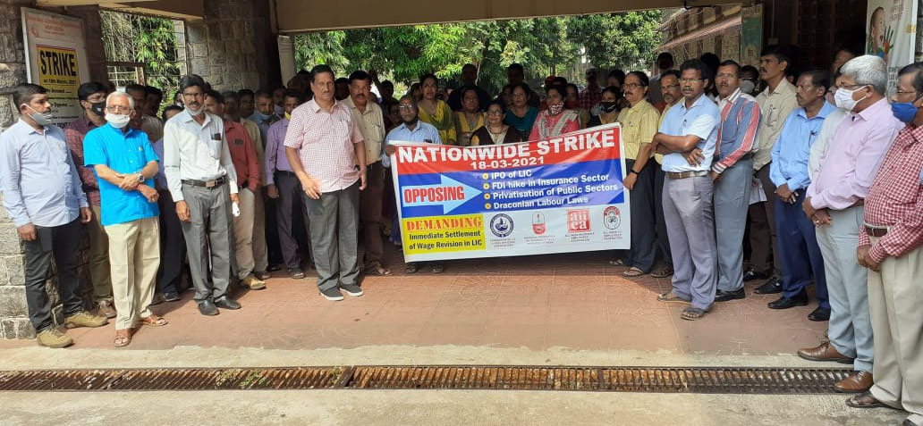 ಉಡುಪಿ: ಎಲ್ಲೈಸಿ ಖಾಸಗೀಕರಣ ಪ್ರಯತ್ನದ ವಿರುದ್ಧ ವಿಮಾ ನೌಕರರ ಮುಷ್ಕರ