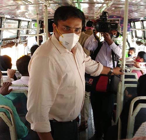 ಬಸ್ ಪ್ರಯಾಣಿಕರು ಮಾಸ್ಕ್ ಧರಿಸದೇ ಇರುವುದು ಕಂಡು ಬಂದ ಹಿನ್ನೆಲೆಯಲ್ಲಿ ಜಿಲ್ಲಾಧಿಕಾರಿ ಬಸ್ನೊಳಗೆ ಪ್ರವೇಶಿಸಿ ಮಾಸ್ಕ್ ಧರಿಸುವಂತೆ ಸೂಚಿಸಿದರು. ಈ ವೇಳೆ ಮಾಸ್ಕ್ ಧರಿಸದ ಪ್ರಯಾಣಿಕರು ಗಲಿಬಿಲಿಗೊಂಡರು. ಈ ವೇಳೆ ಜಿಲ್ಲಾಧಿಕಾರಿಯು ಮಾಸ್ಕ್ ಧರಿಸುವ ಬಗ್ಗೆ ಜನಜಾಗೃತಿ ಮೂಡಿಸಿದರು. ಮಾಸ್ಕ್ ಧರಿಸದ ಪ್ರಮಾಣಿಕರು, ಸಾರ್ವಜನಿಕರಿಂದ ಸ್ಥಳದಲ್ಲೇ ದಂಡ ವಸೂಲಿ ಮಾಡಲಾಯಿತು ಎಂದು ತಿಳಿದುಬಂದಿದೆ.